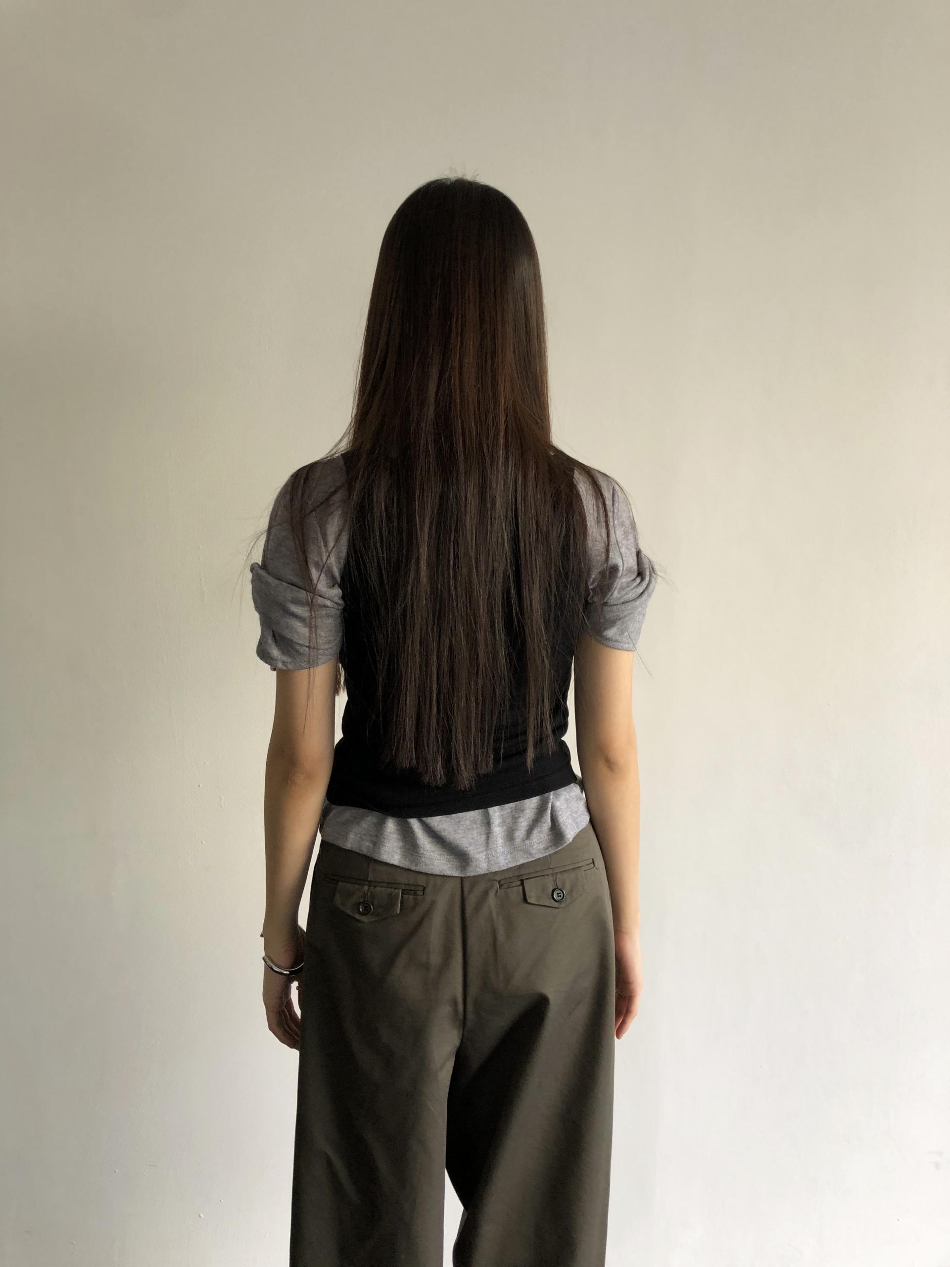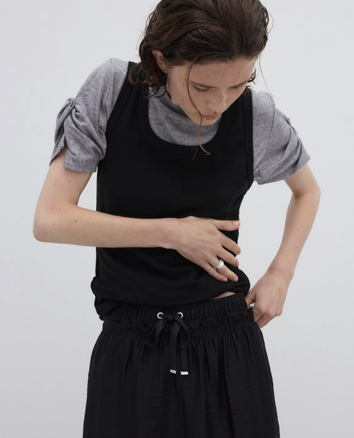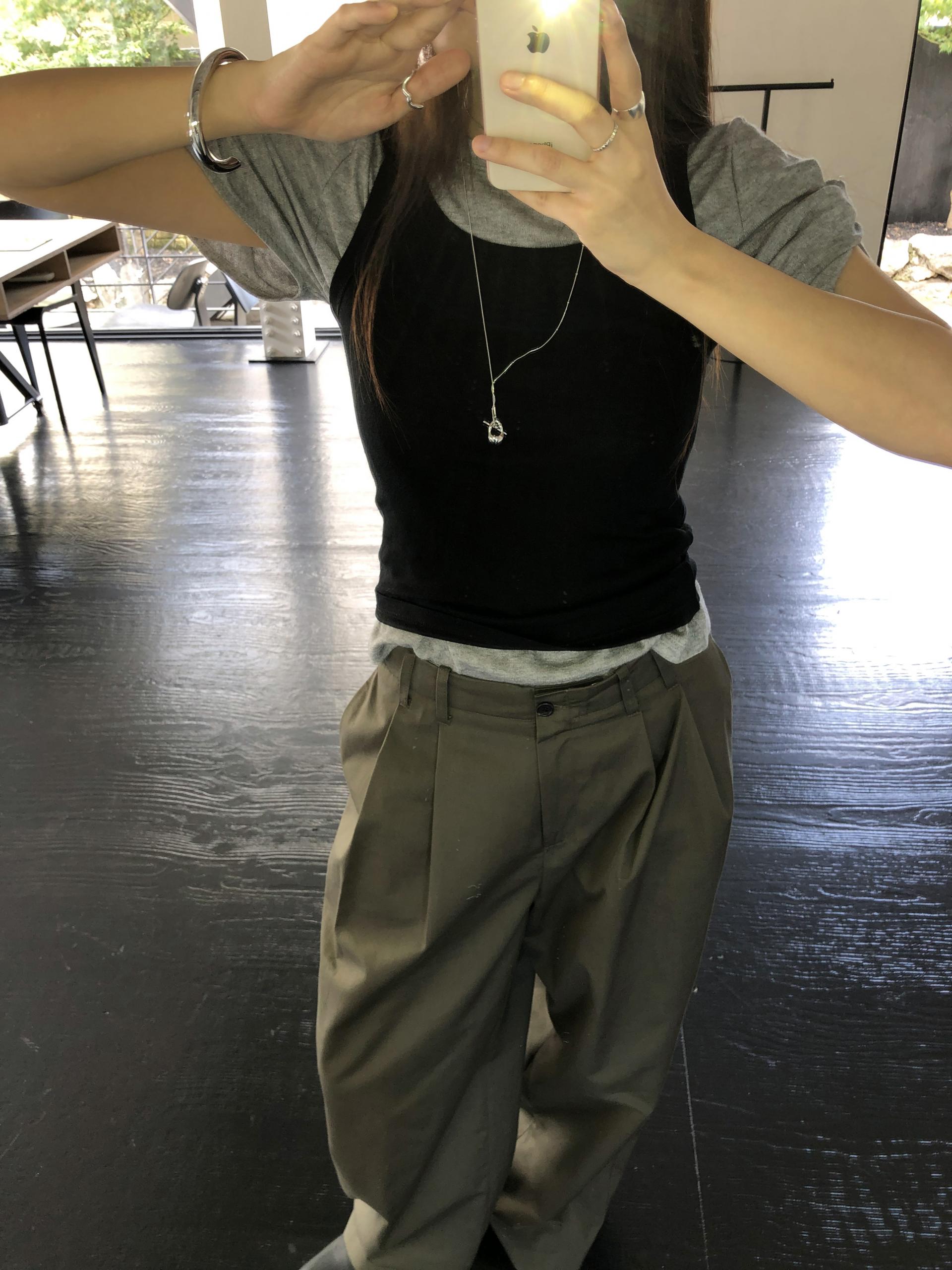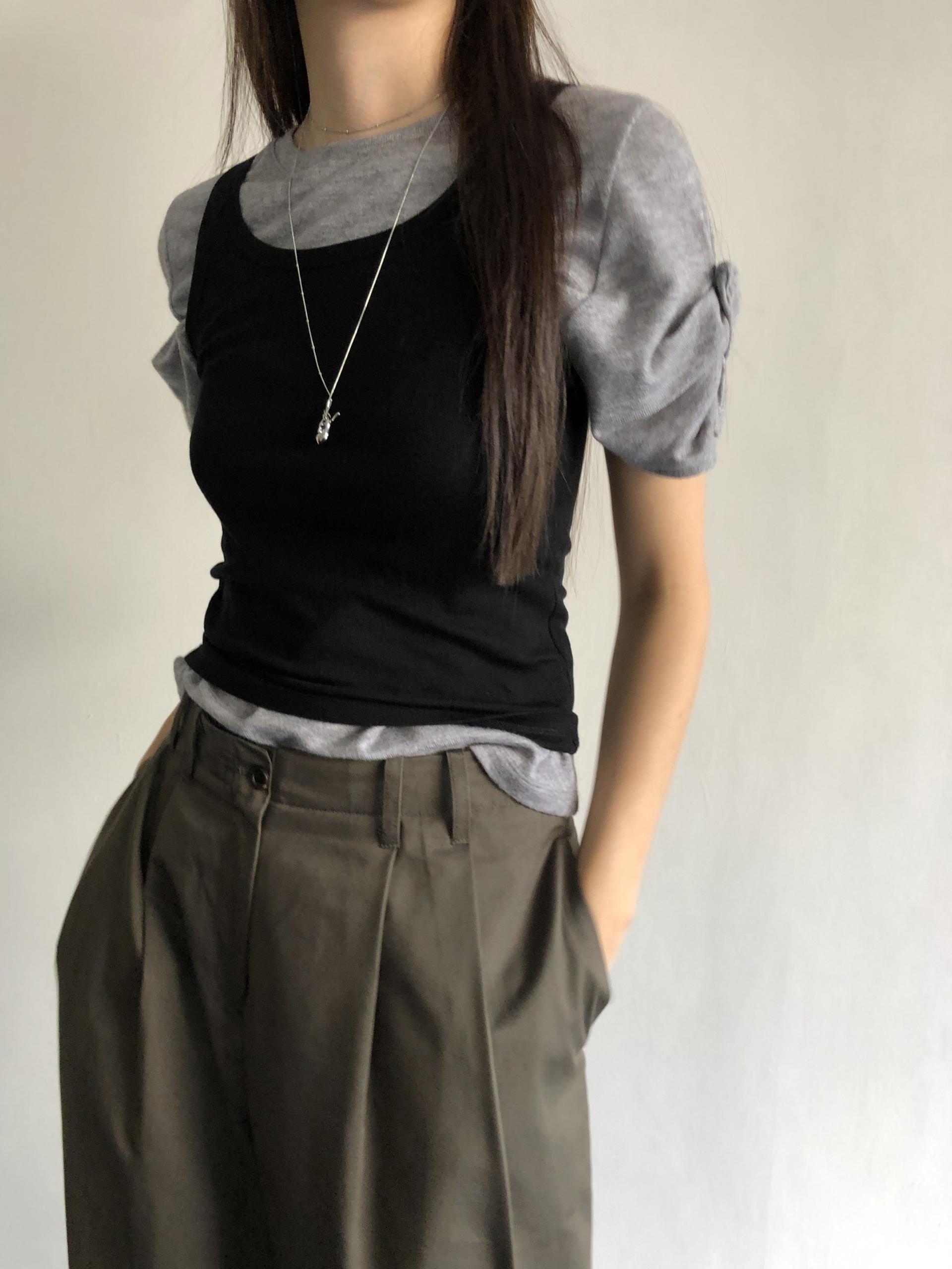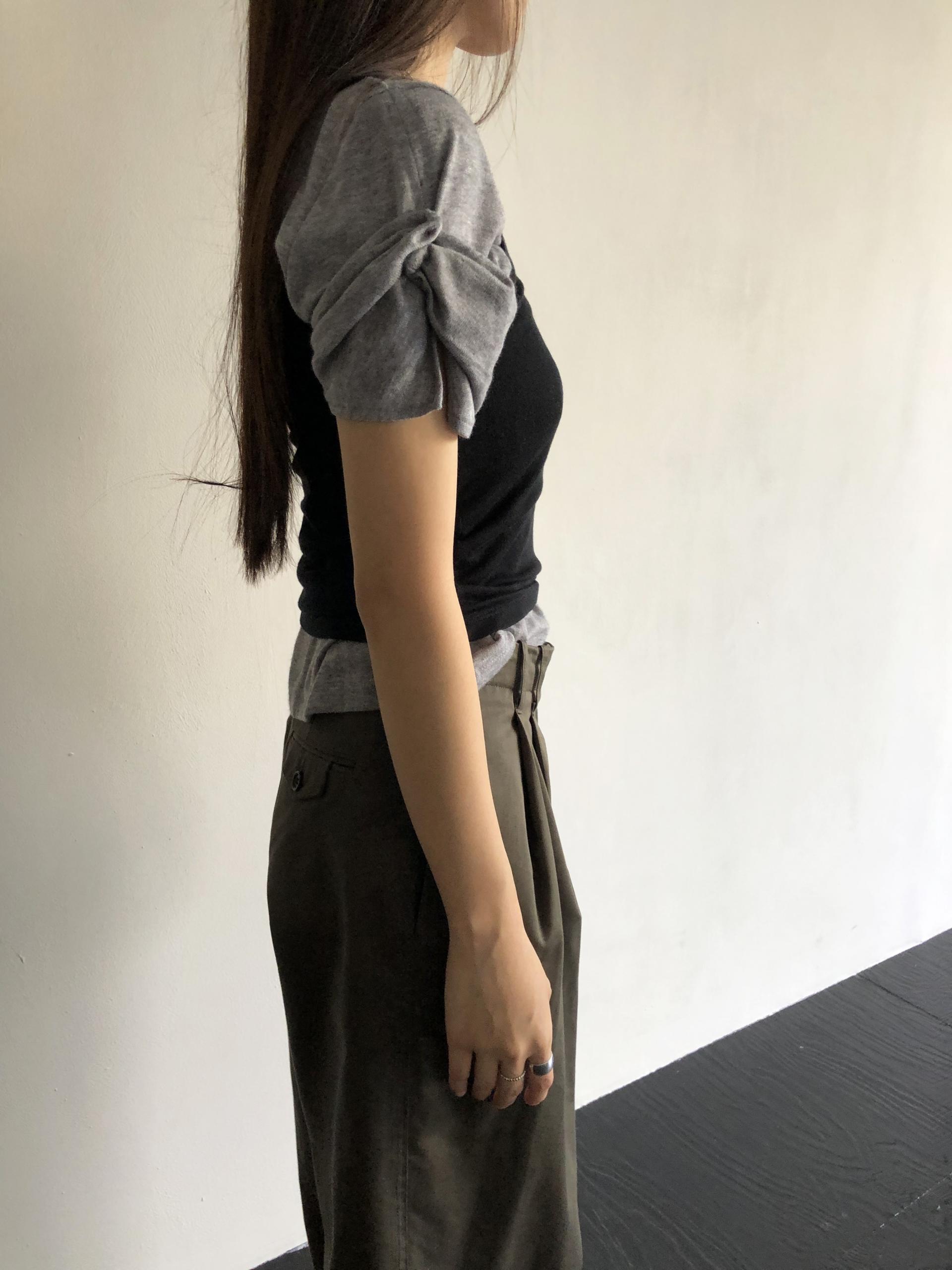 심플하지만 단조롭지 않아 단독으로도 레이어드로도 유용한 아이템이에요.