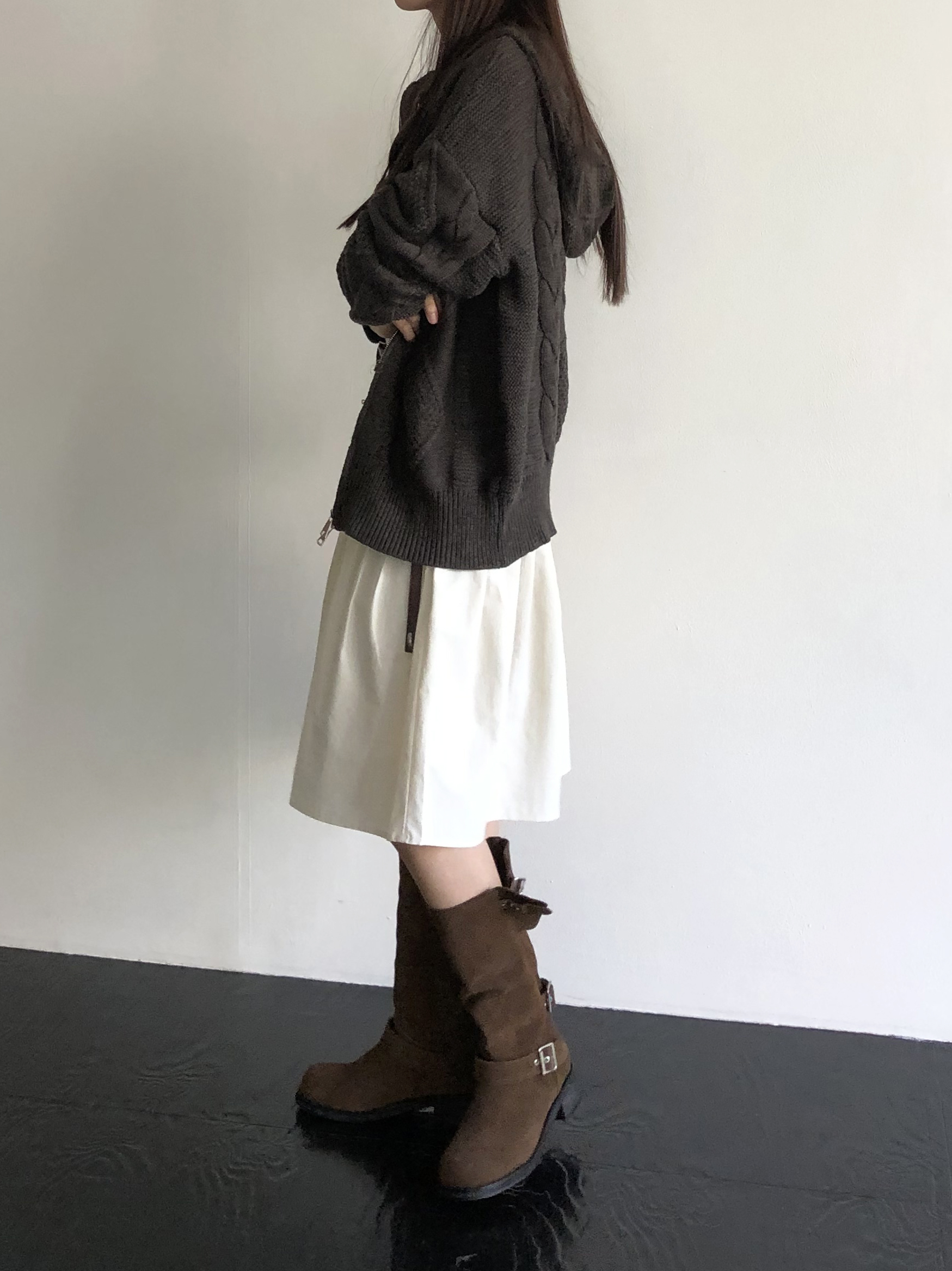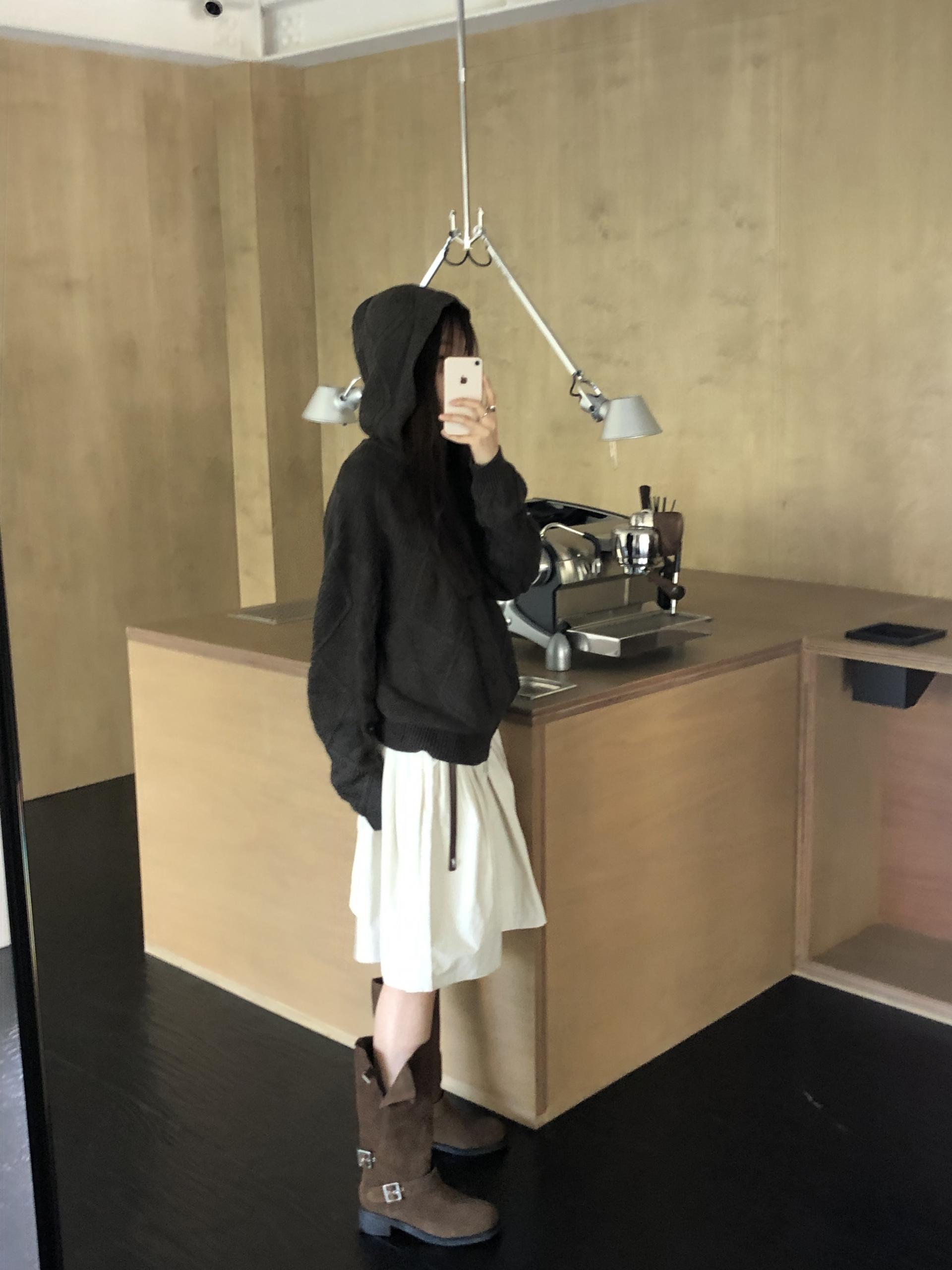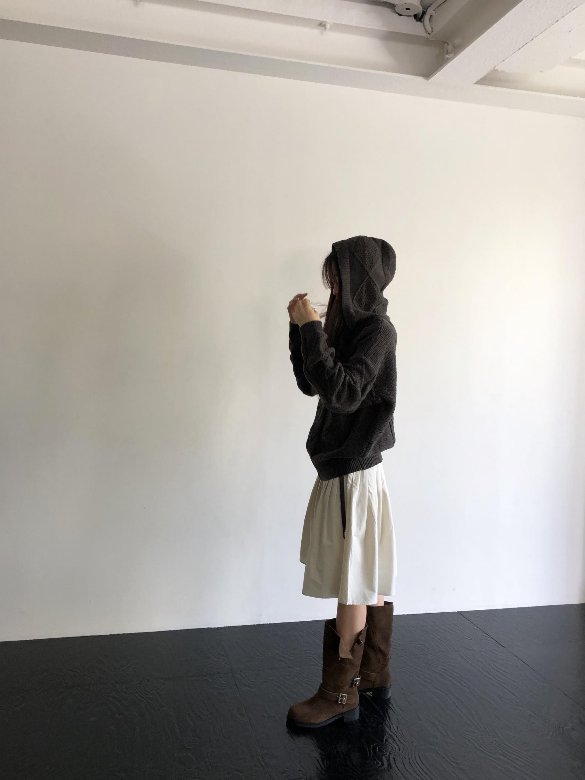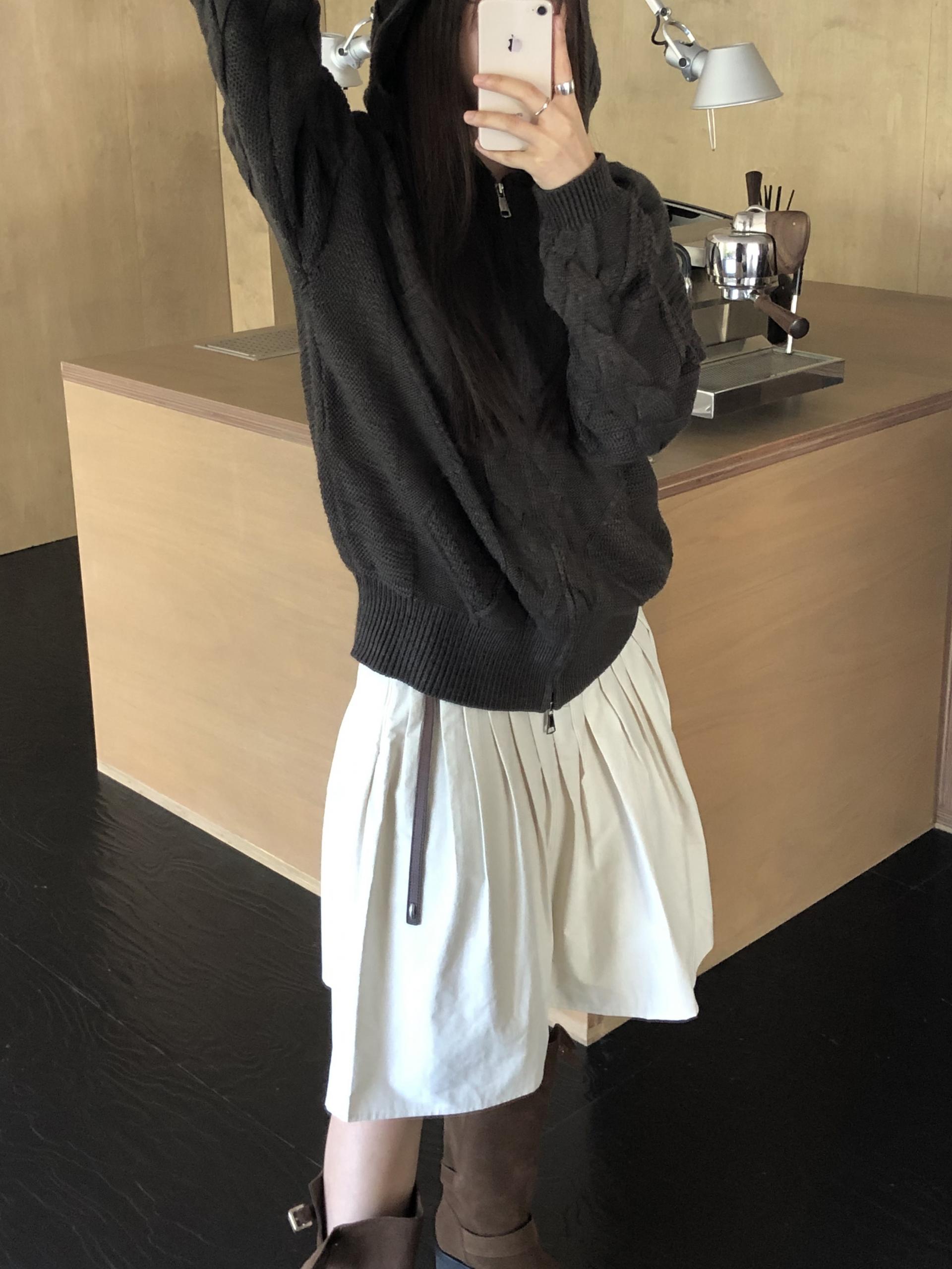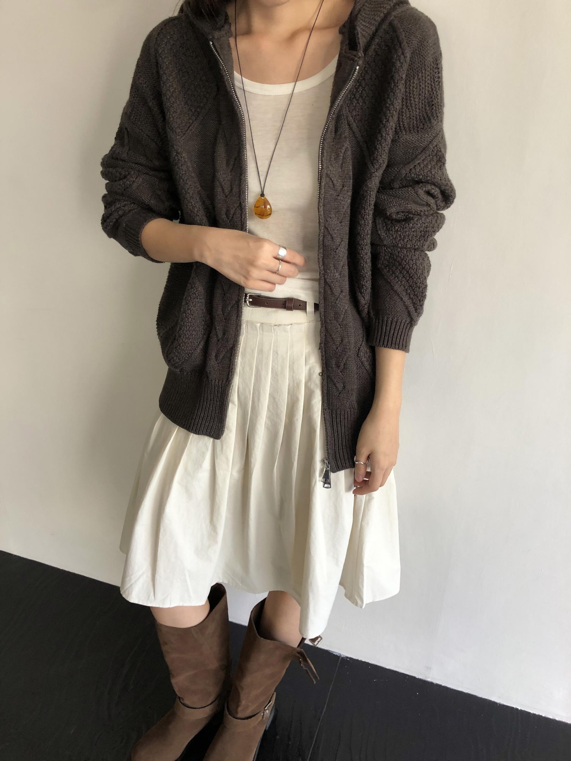 와이드한 카고 팬츠에 비니나 볼캡 눌러쓰고 편하고 웨어러블하게 툭 걸쳐주기에도 좋아요. 간단한 만남에서 코튼 후드 집업을 입기보다 이 니트 후디 선택해주면 좀 더 신경쓴 느낌 내기 좋답니다 ..**ㅎㅎ