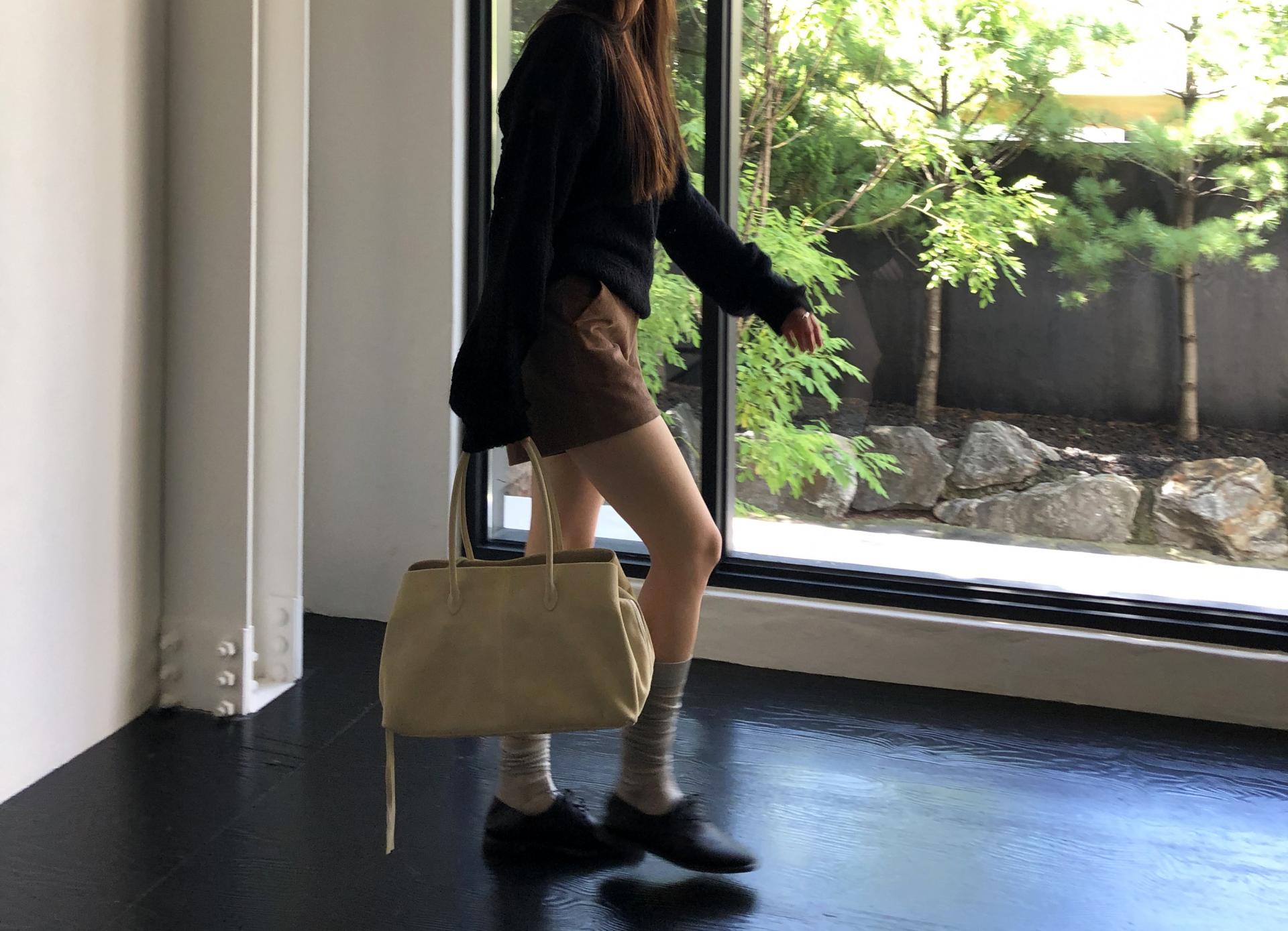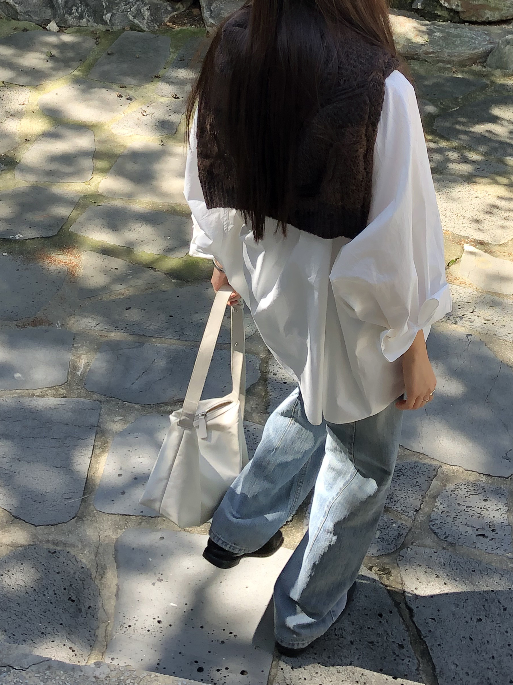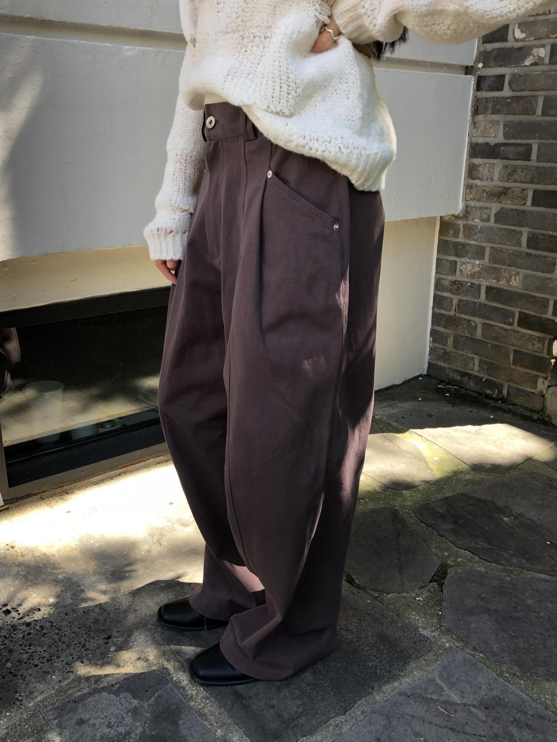 데미지의 매력이 잘 드러나는 아이보리 컬러와 루즈한 실루엣이 돋보이는 블랙, 그리고 초코쿠키마냥 귀여운 컬러 블록의 브라운입니다. 세 컬러 모두 매력있어요.