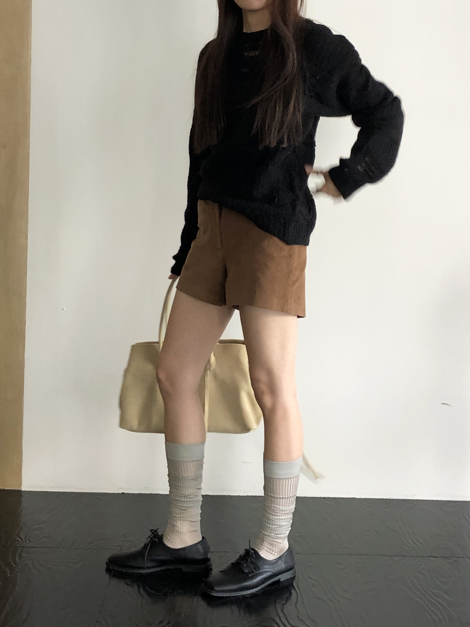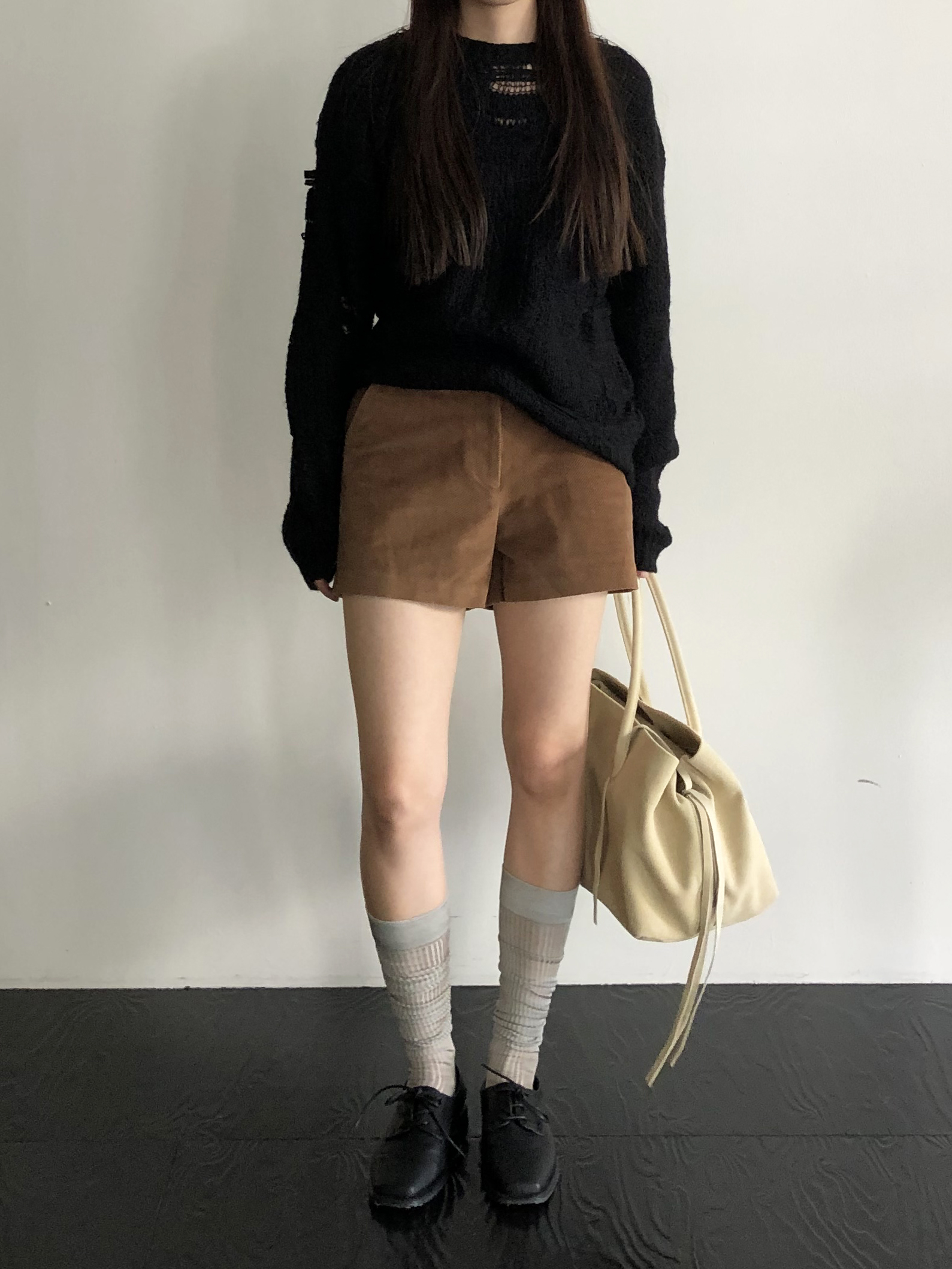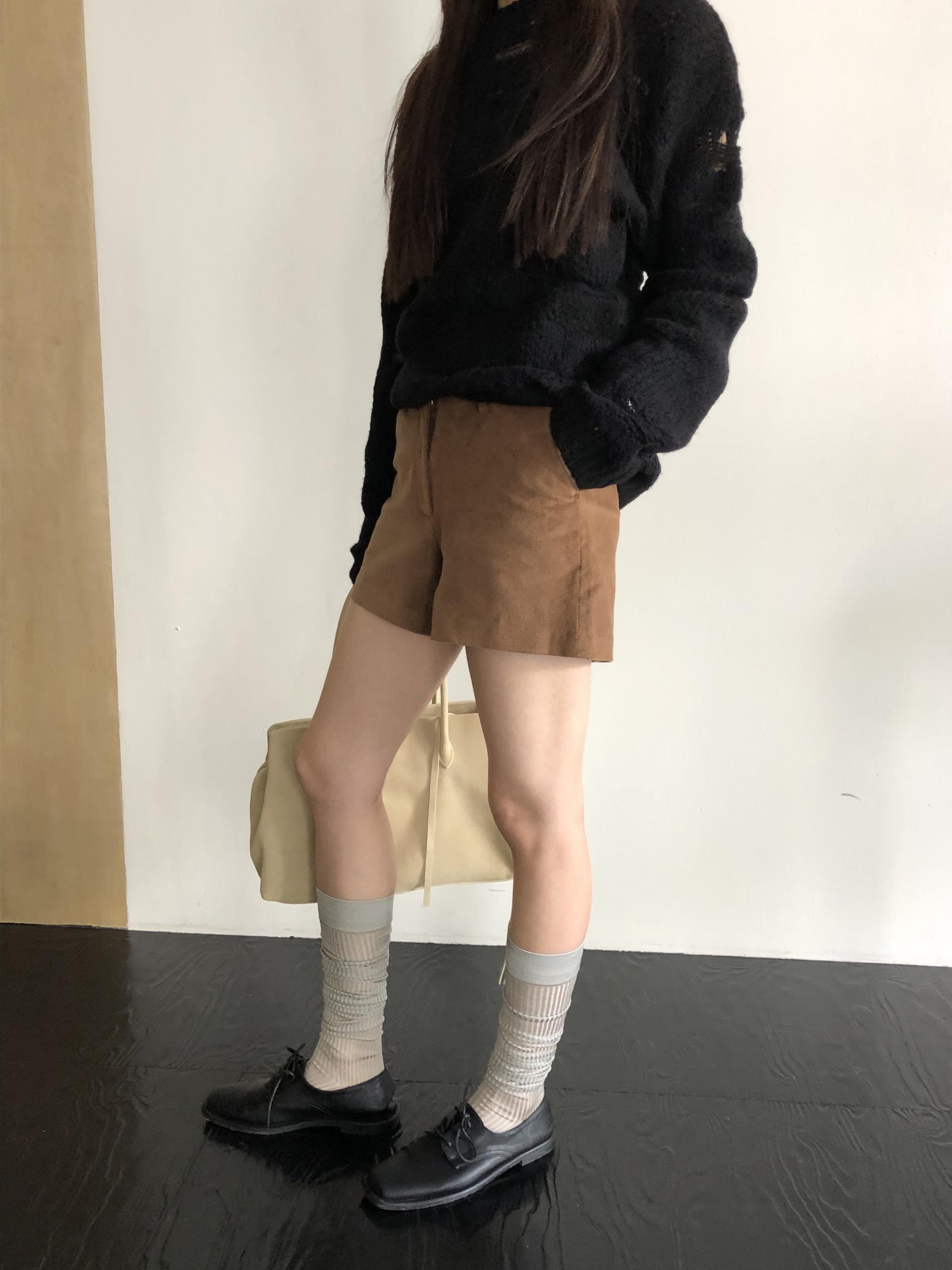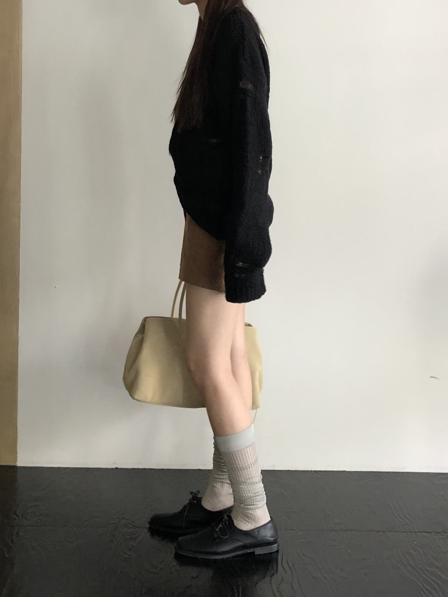데미지 사이로 노출이 걱정 되신다면 컬러 맞춰 이너 착용해주시면 되어요. 아이보리 컬러는 그냥 살짝 밝은 톤의 스킨 컬러 이너 착용했고, 블랙과 브라운은 블랙 컬러 추천드립니다.