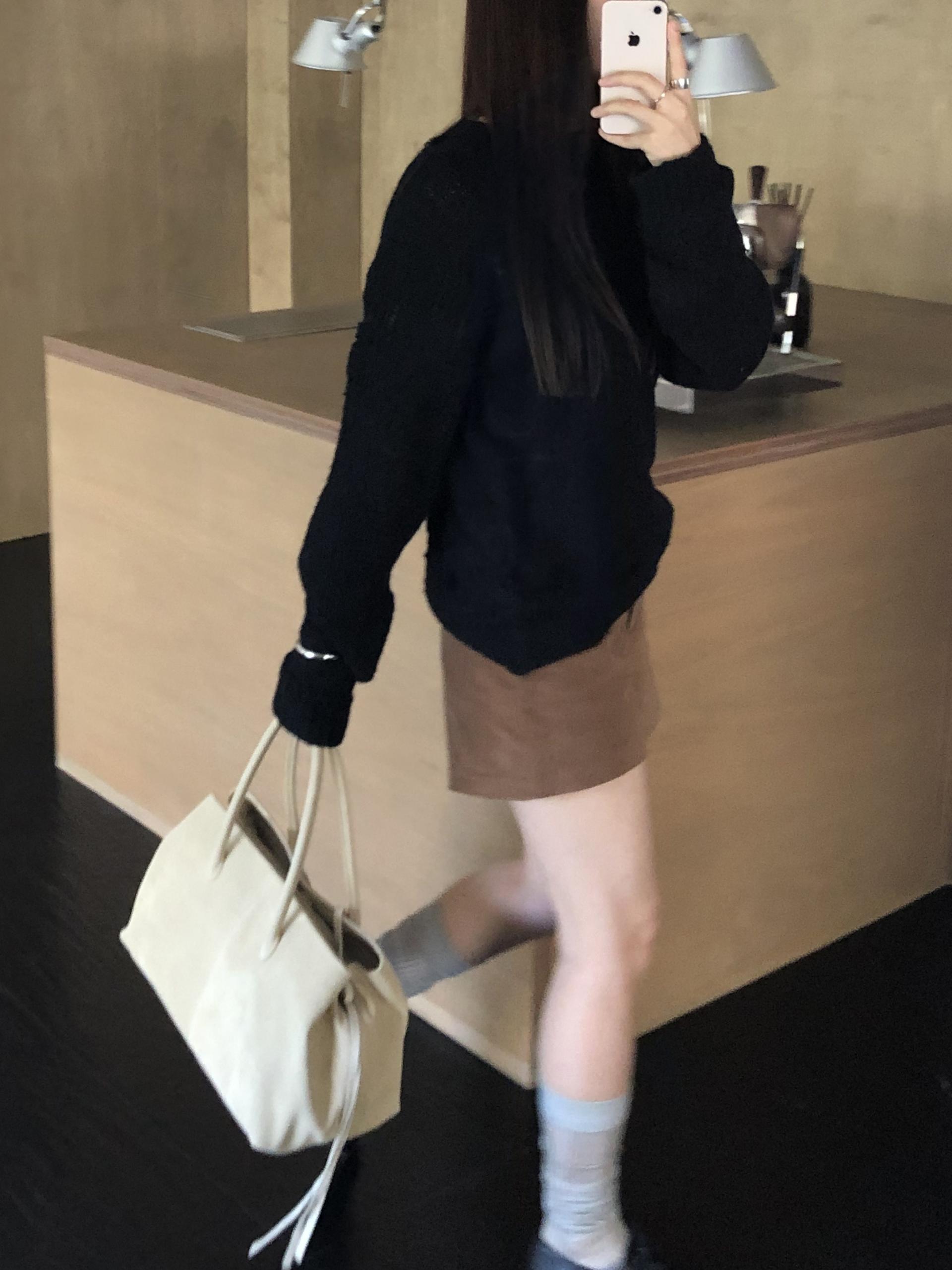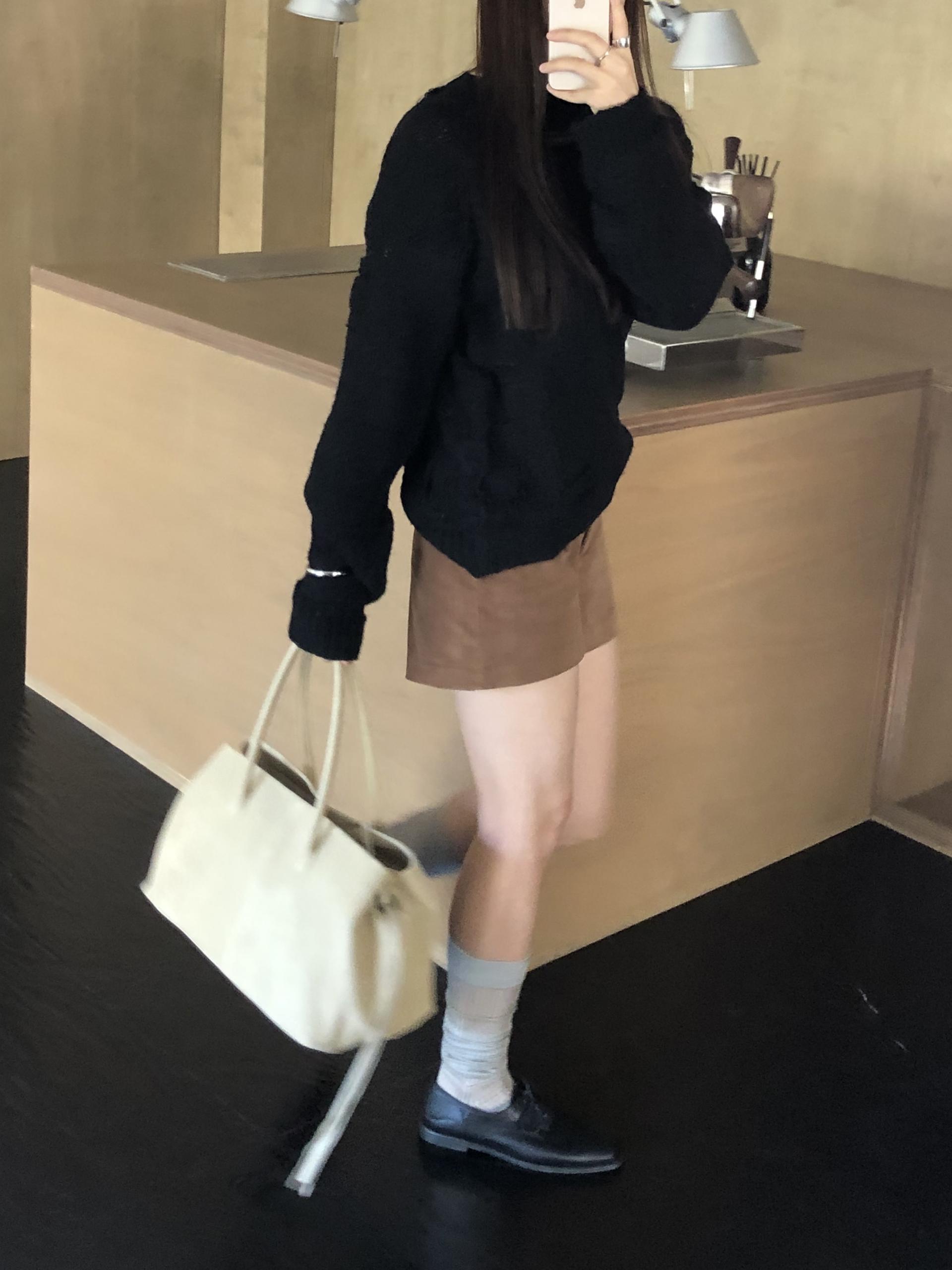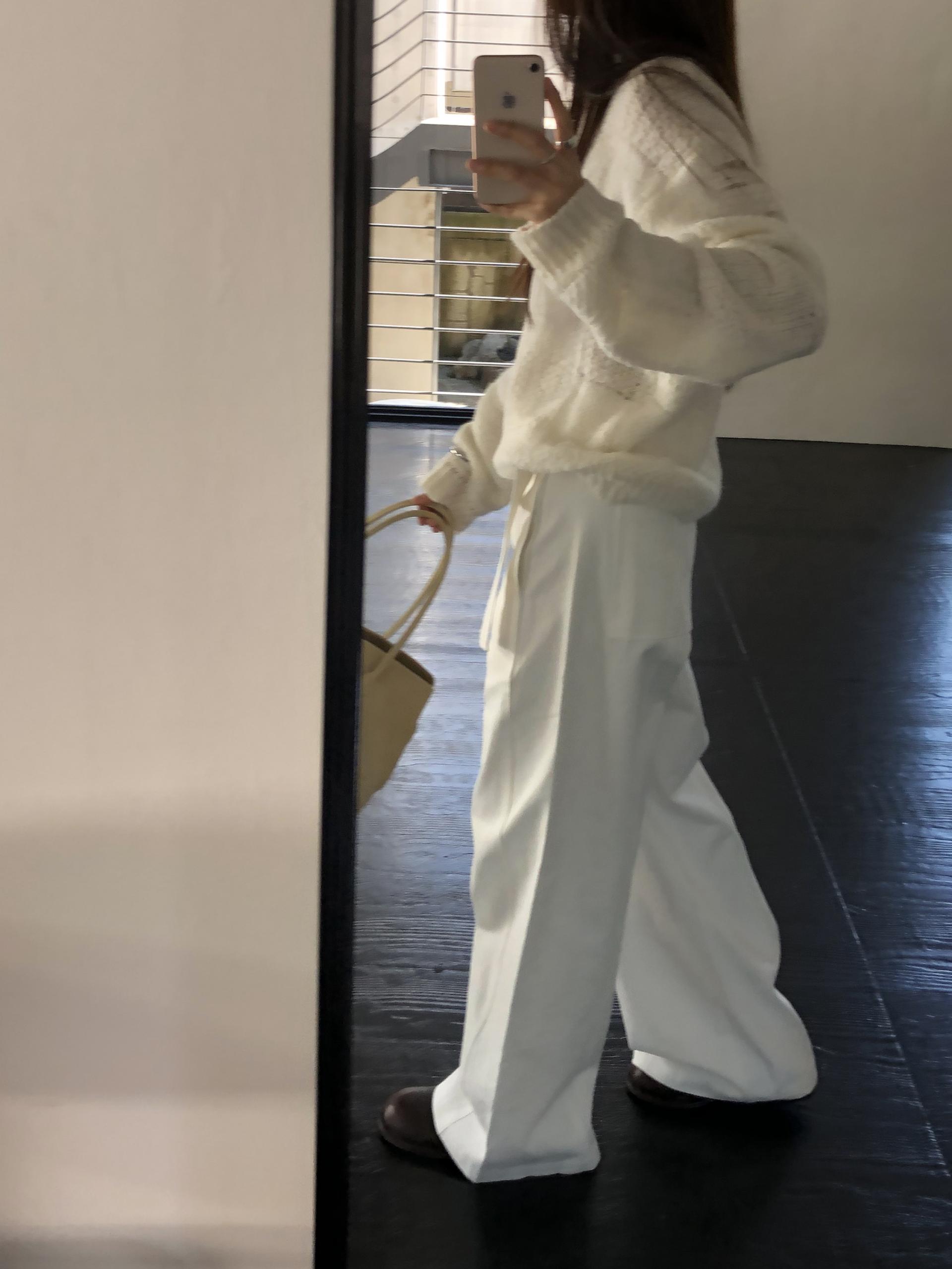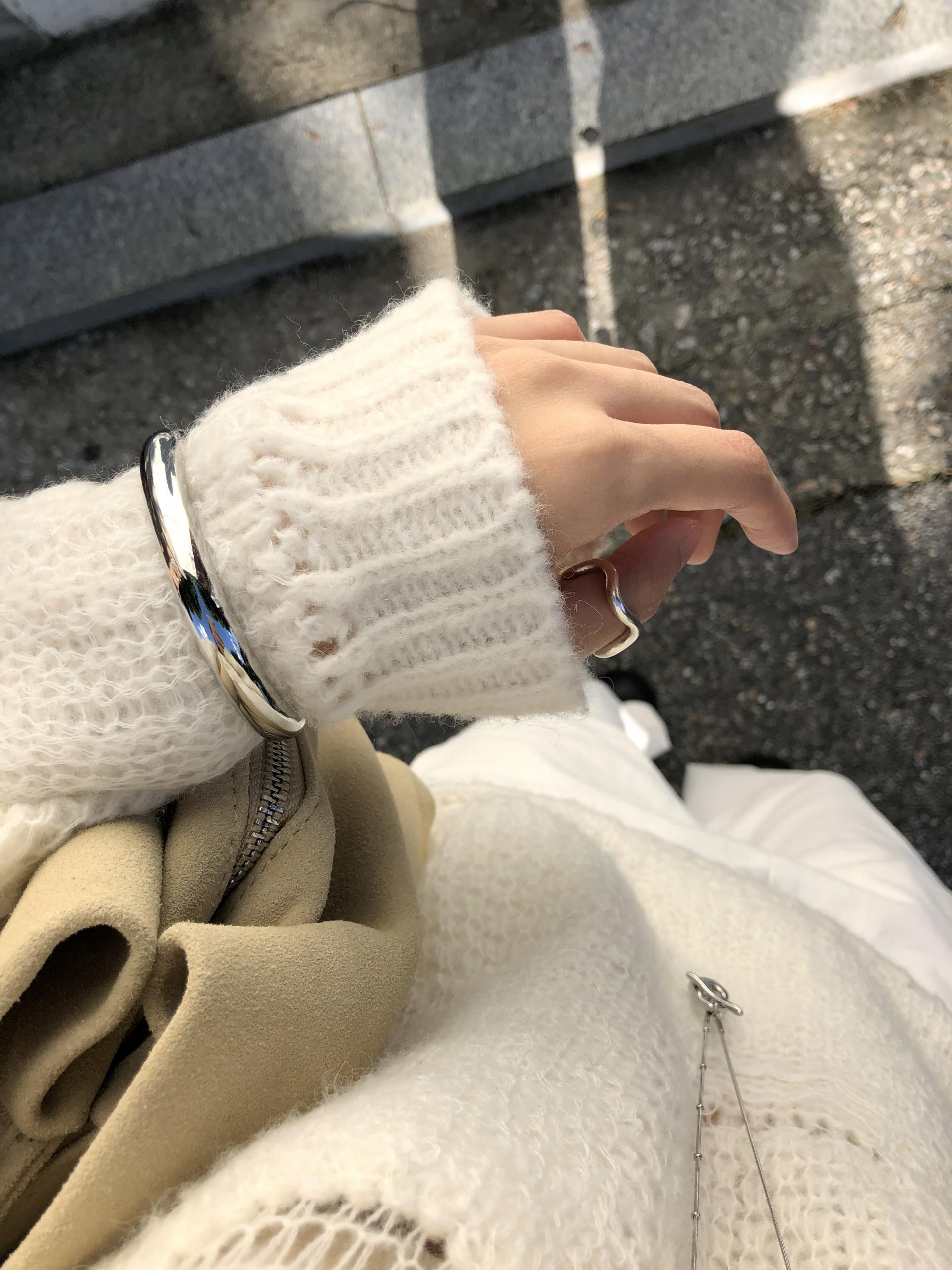 울과 알파카가 함유된 가볍고 따뜻한 니트웨어입니다. 까슬함없이 편하게 착용되며 실제로 보면 더 포실포실한 니트의 포근한 질감이 잘 느껴져요.