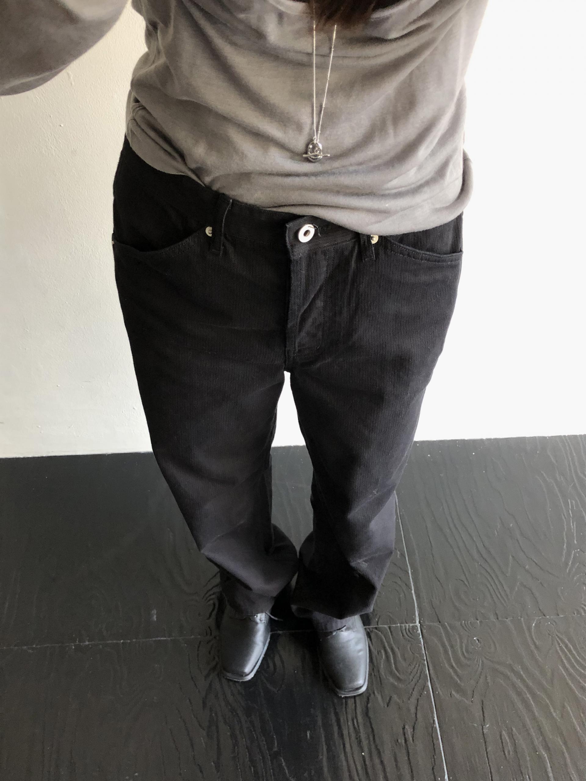 전체적인 기장도 긴편이라 그냥 어디에 입어도 룩이 멋있어요. 다양한 타입의 슈즈와도 매치가 좋습니다. 지퍼가 아닌 버튼 플라이 타입입니다. 클래식하고 빈티지한 멋도 더해졌지요..
