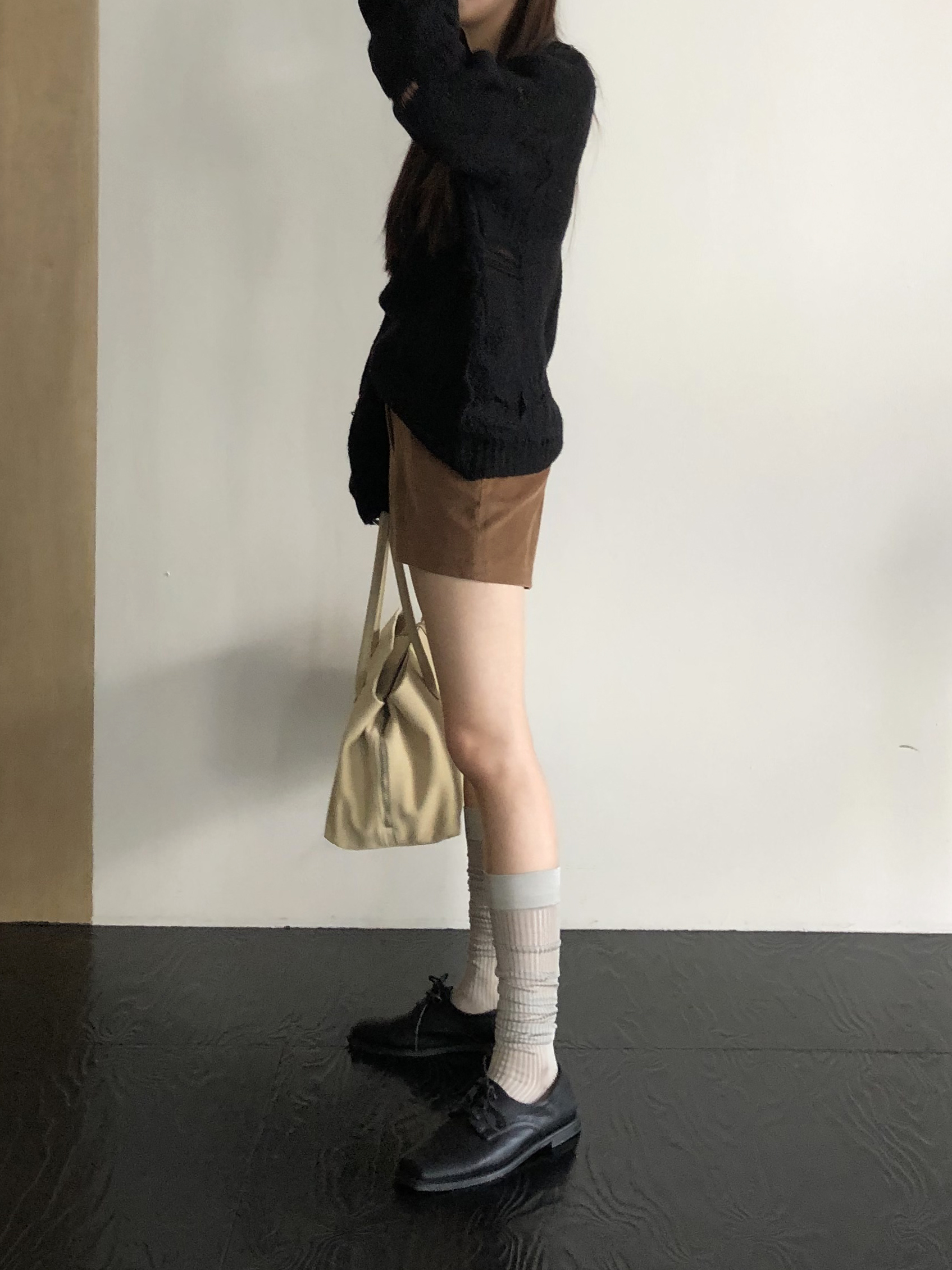 매끈하고 텐션감이 있는 짱짱한 비스코스 소재에 은은한 광택이 느껴집니다. 무릎까지 올라오는 롱한 니삭스의 길이감을 가졌으며 함께 매치하는 하의나 슈즈에 맞춰 길이감을 연출해주세요.