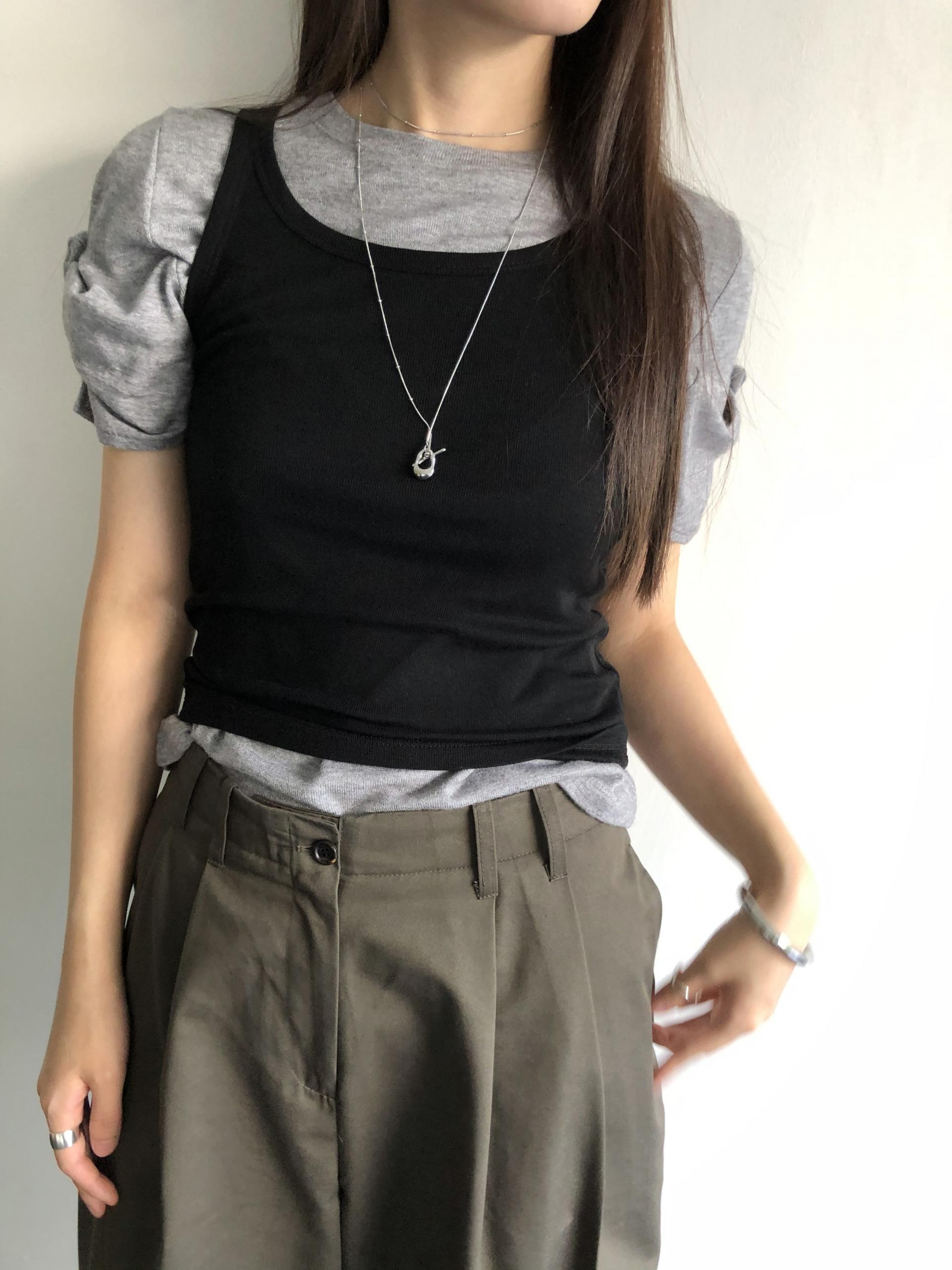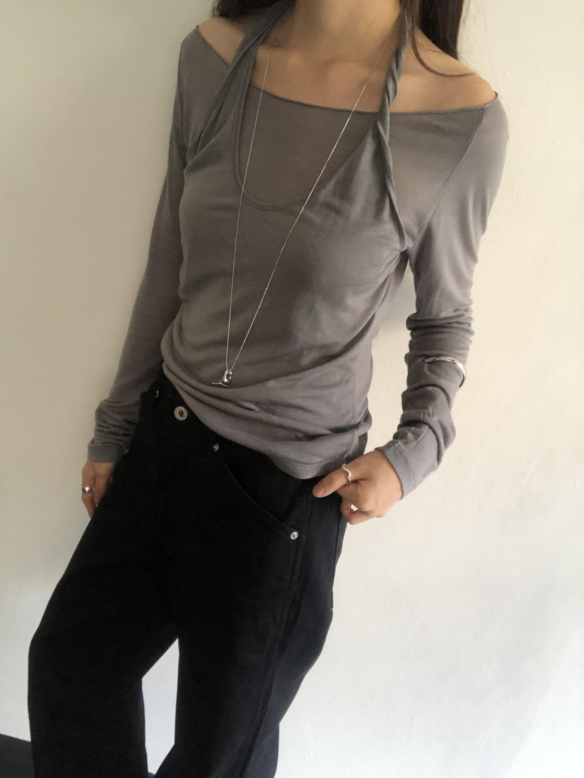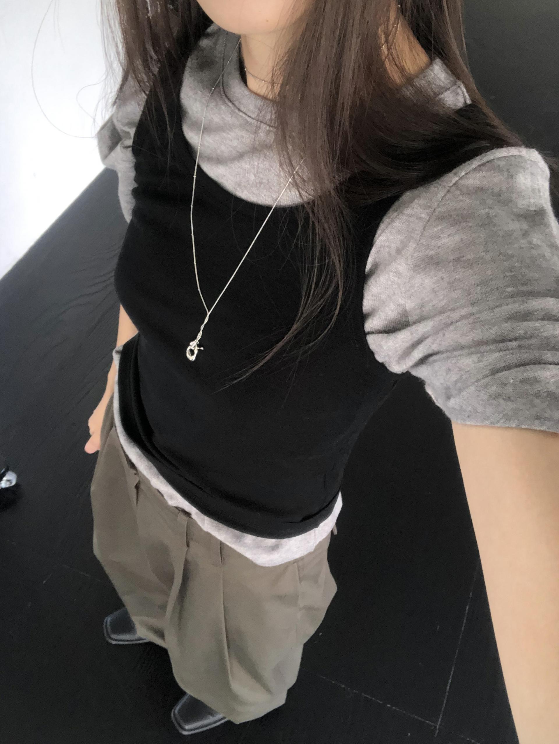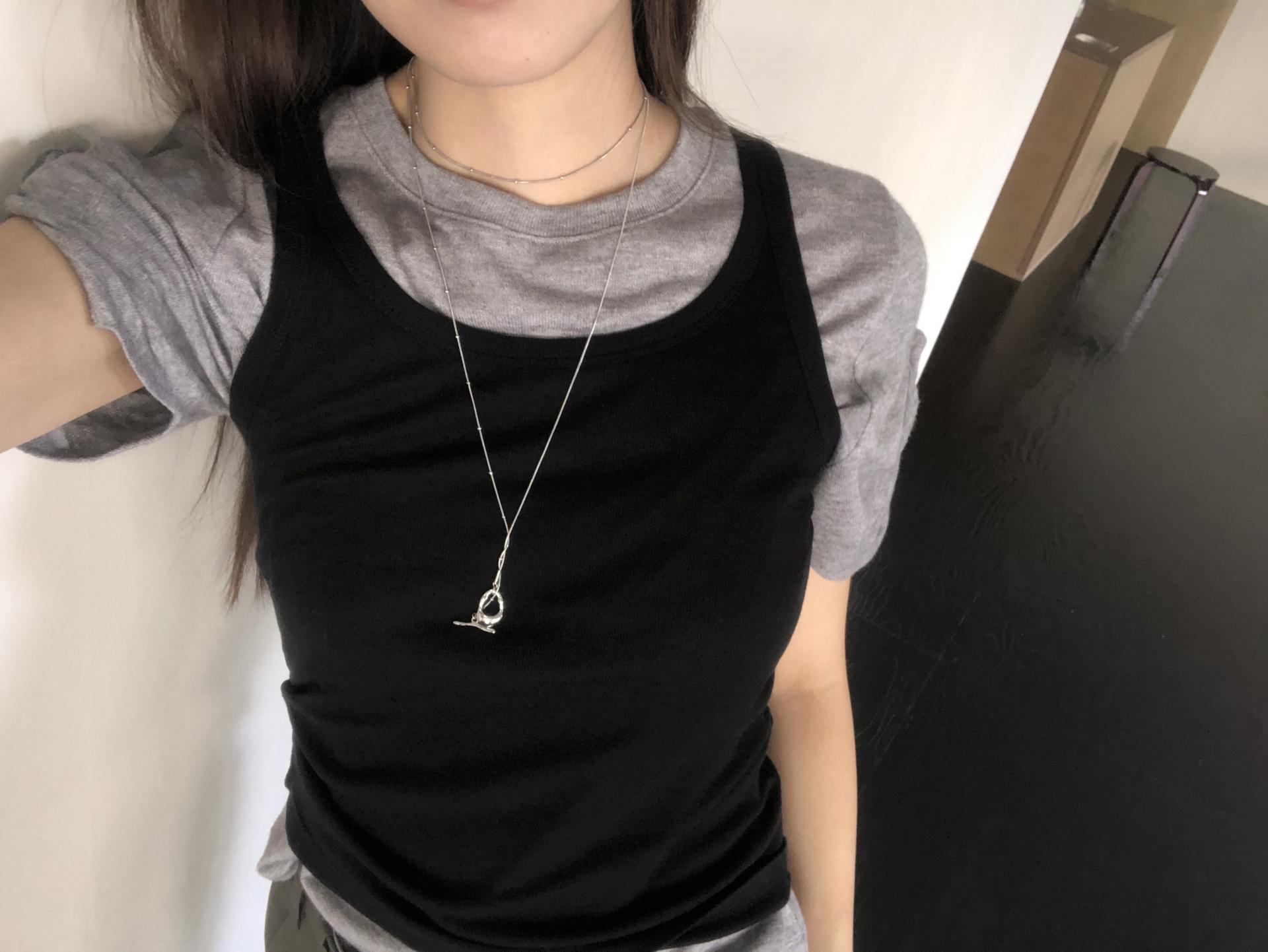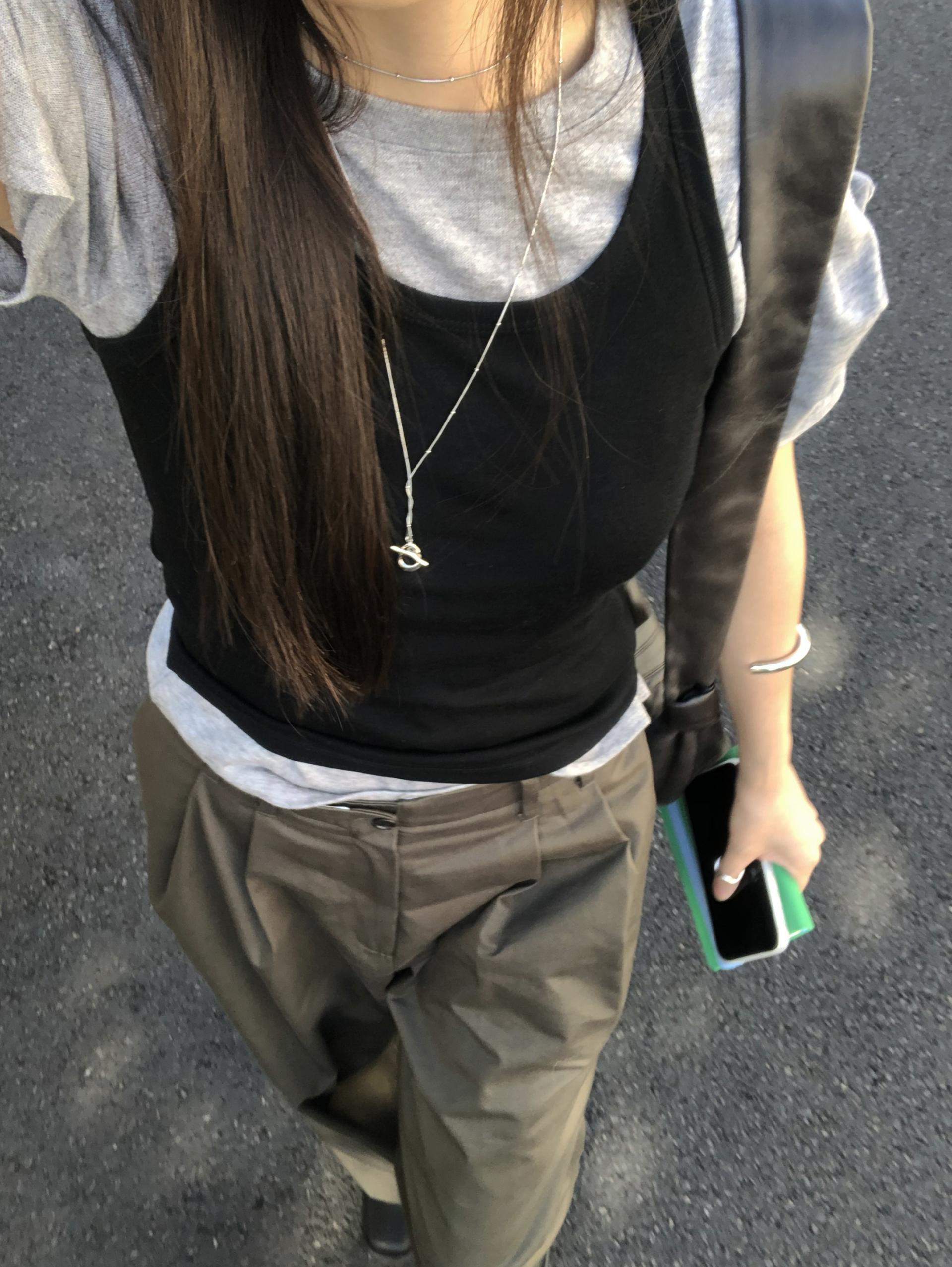 펜던트 속 t바를 빼 체인을 한번 목에 감아 두개의 네크리스를 레이어드한 느낌을 주는 방법. 이렇게 두가지 방식으로 연출할 수가 있어요.