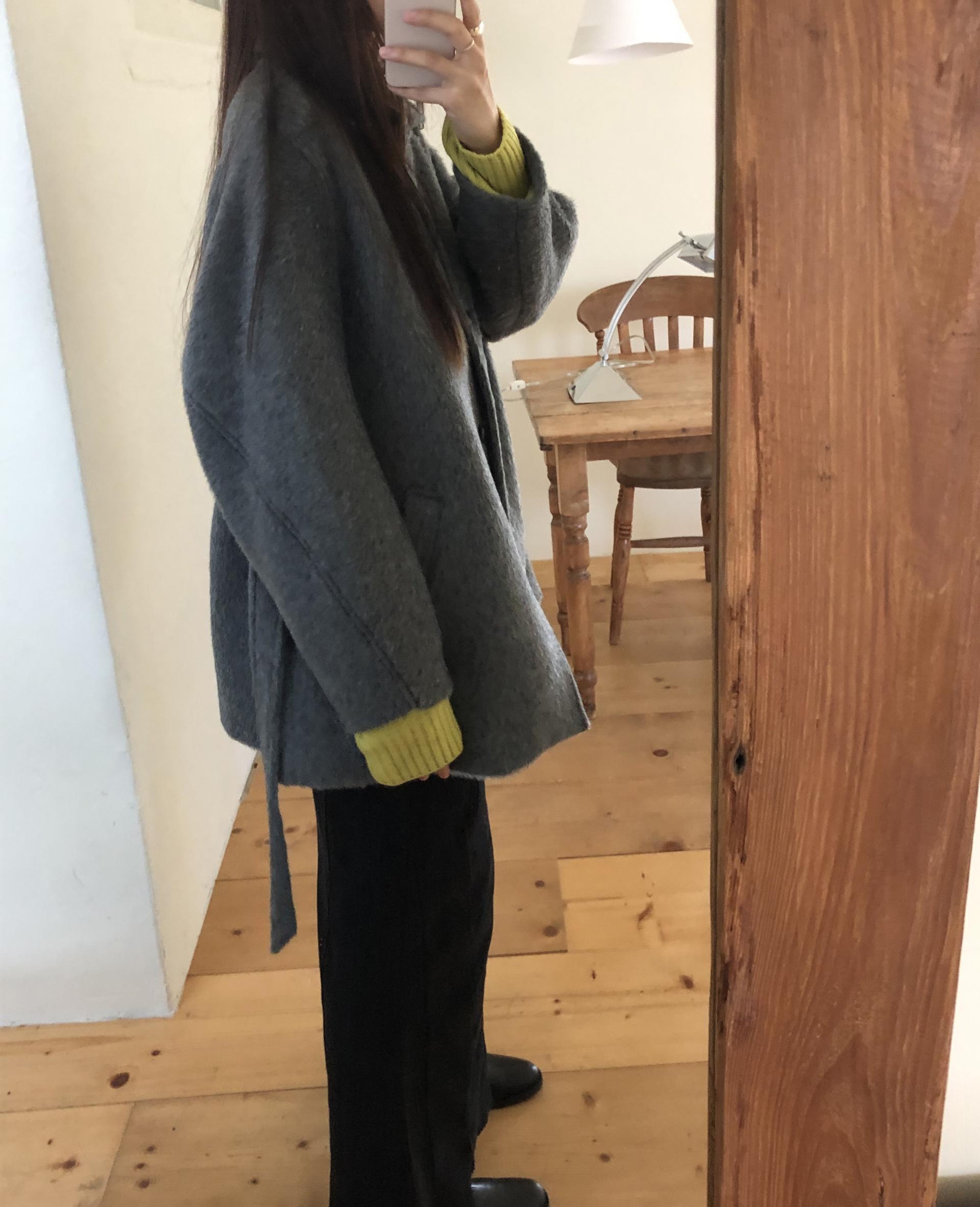 전체적으로 하프 기장과 여유로운 핏으로 착용되며, 이너로 두꺼운 니트도 문제 없어요. 단추를 모두 여미고 넥라인을 올려 하이넥으로 연출해주세요. 멋스러움이 배가 됩니다. 뒷판에서 소매까지 이어지는 절개선과 벨트 디테일. 분위기를 깨지 않는 어두운 톤의 단추까지 - !