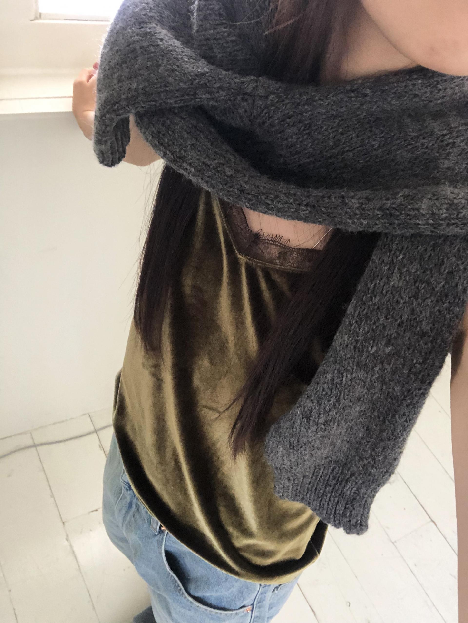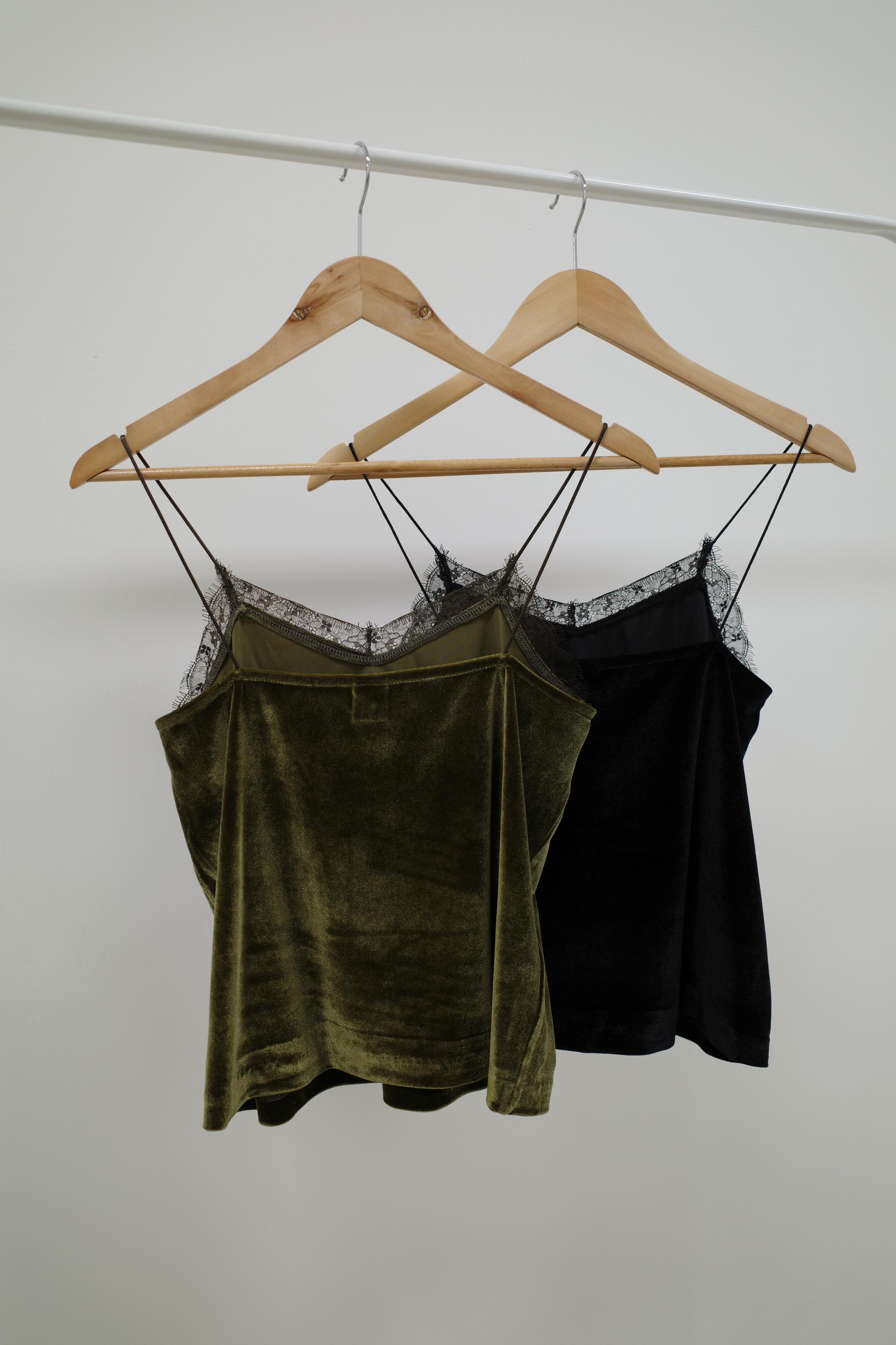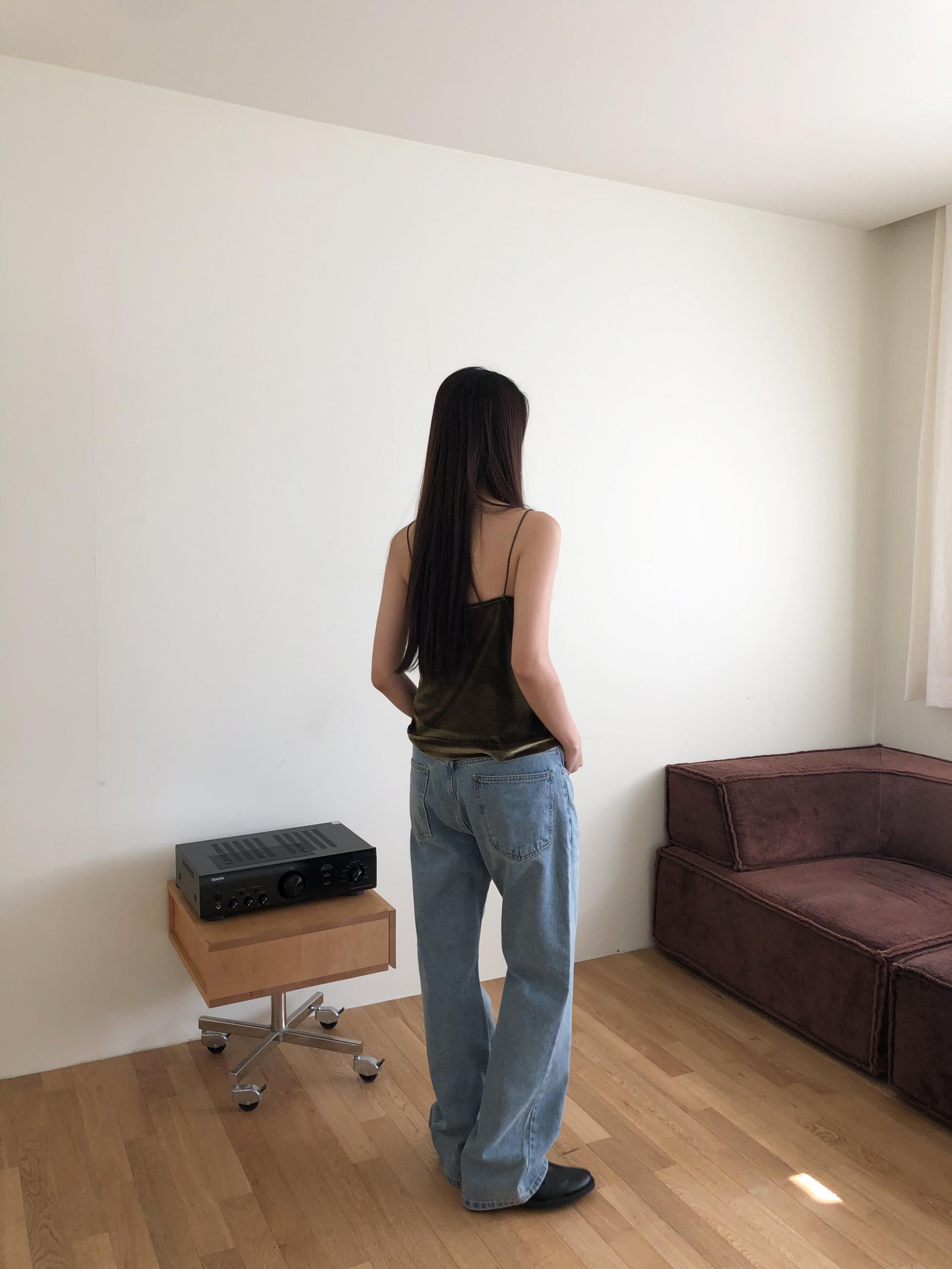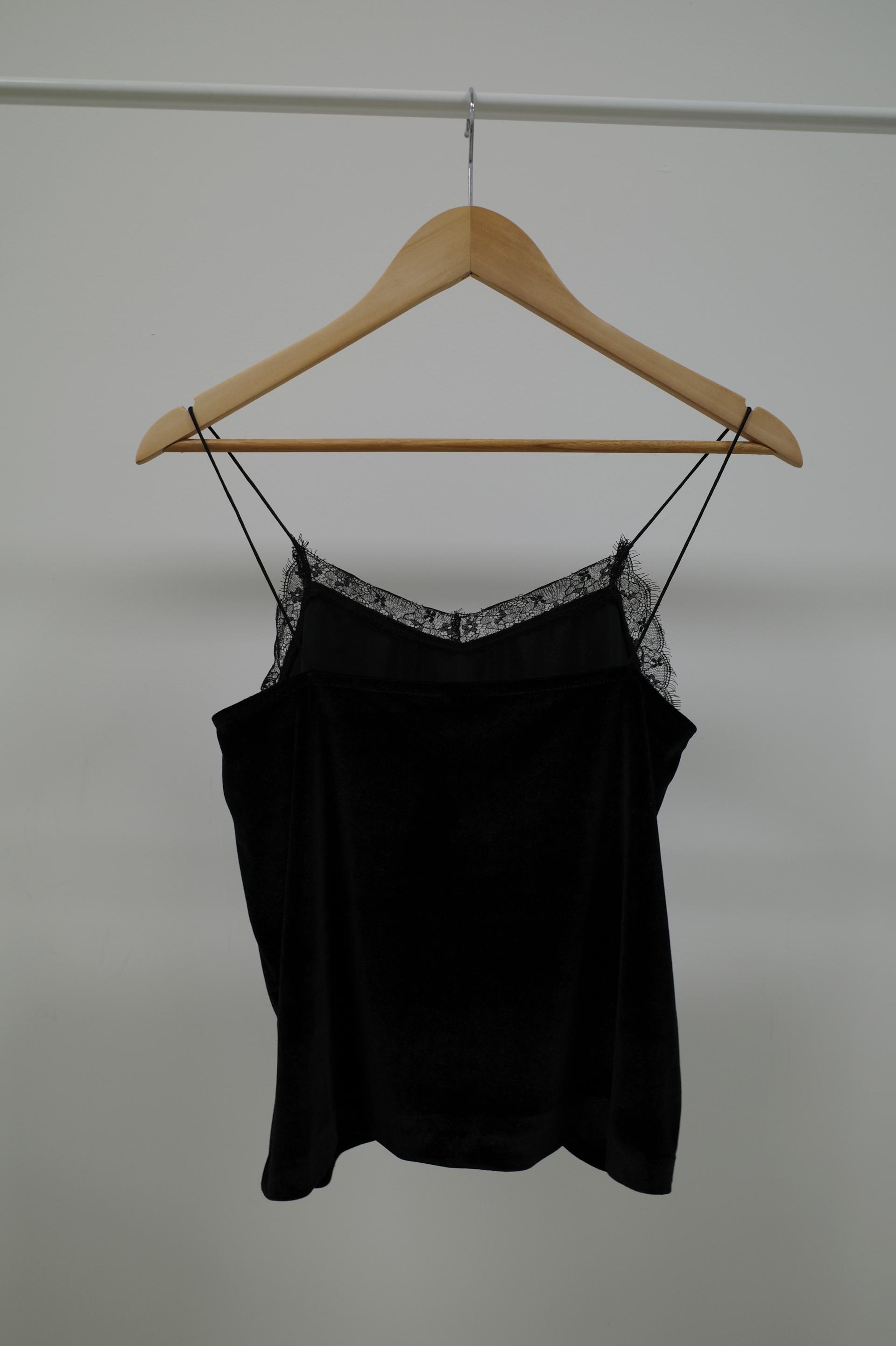 은은한 광택감이 느껴지는 벨벳 소재의 슬리브리스 탑입니다.