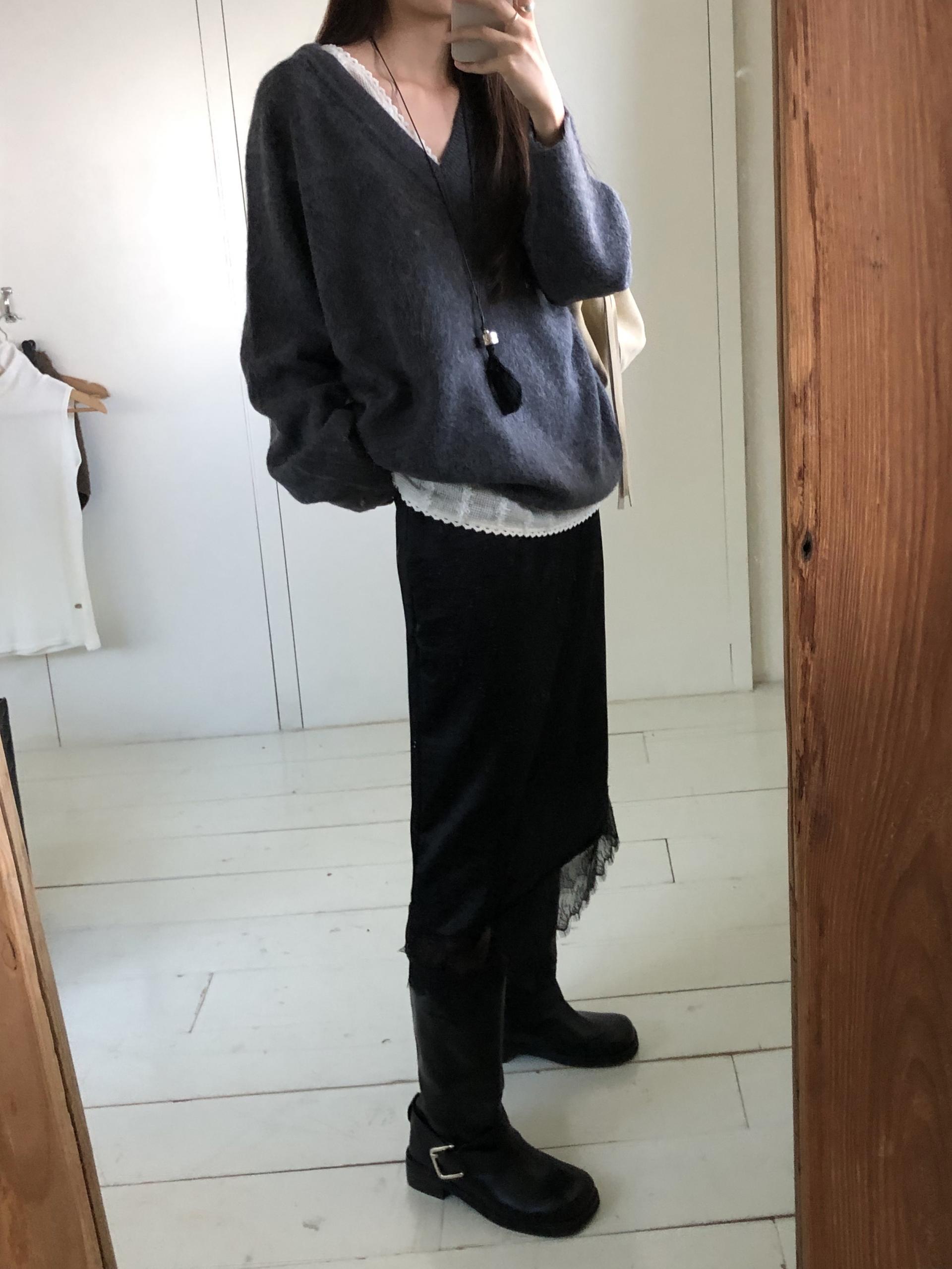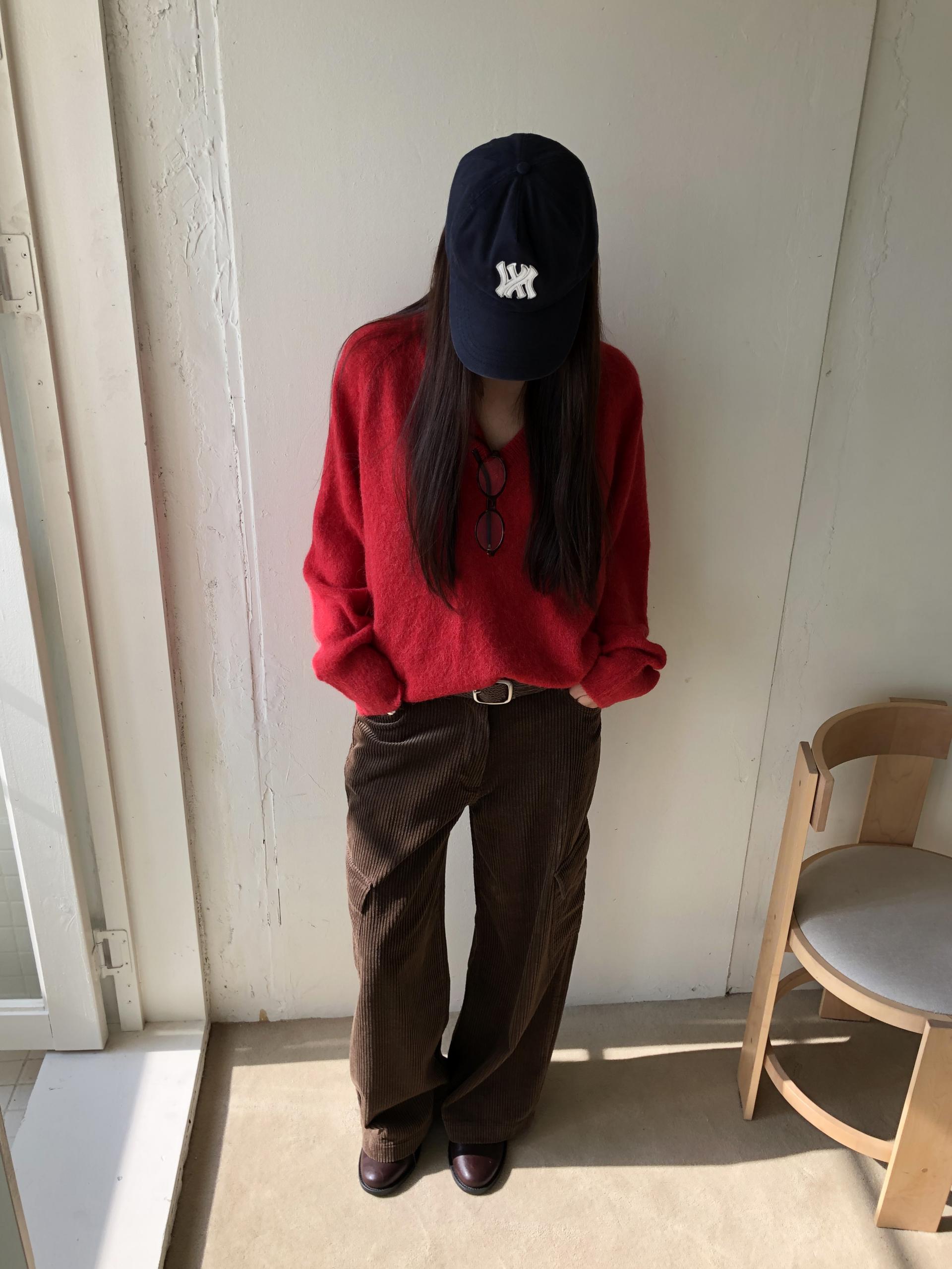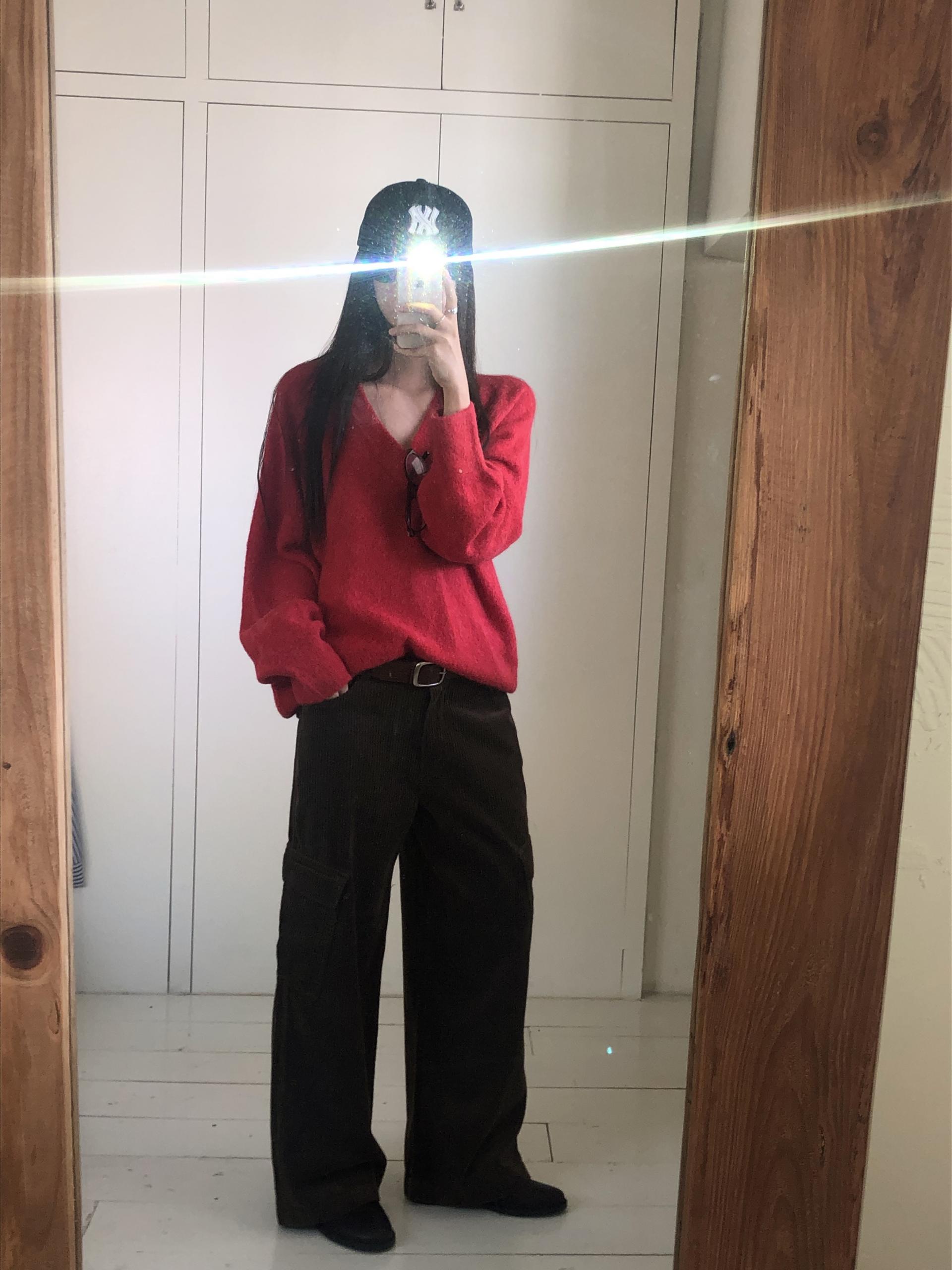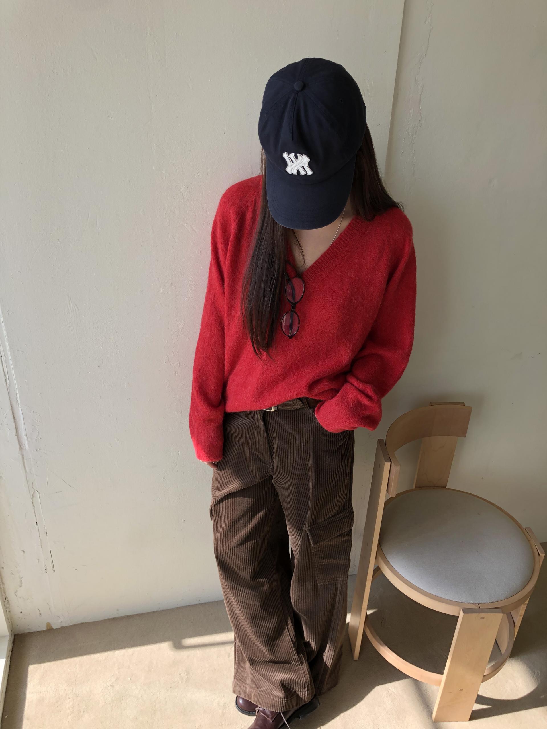 가볍지만 따뜻해요. 브이넥 니트는 특히 셔츠나 티셔츠 등을 레이어링 하는 경우가 많은데, 적당히 도톰한 편이라 레이어드했을 때 거대해지는,, 불상사가 없습니다.