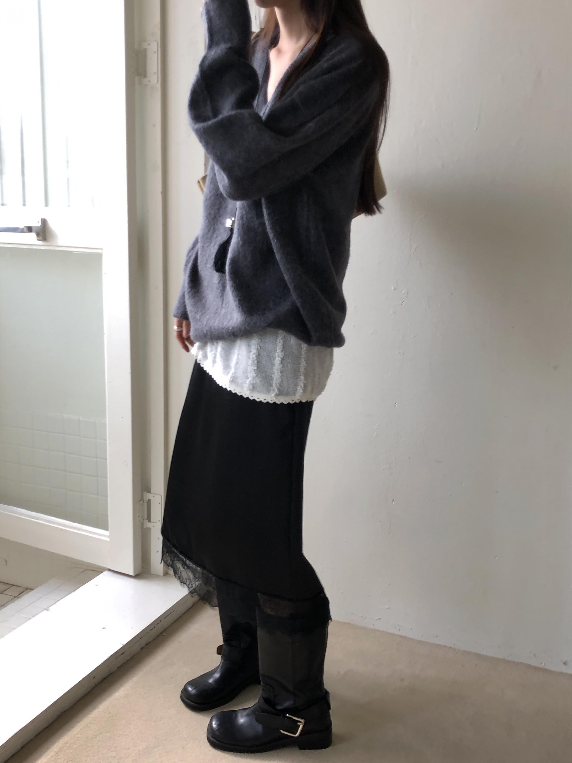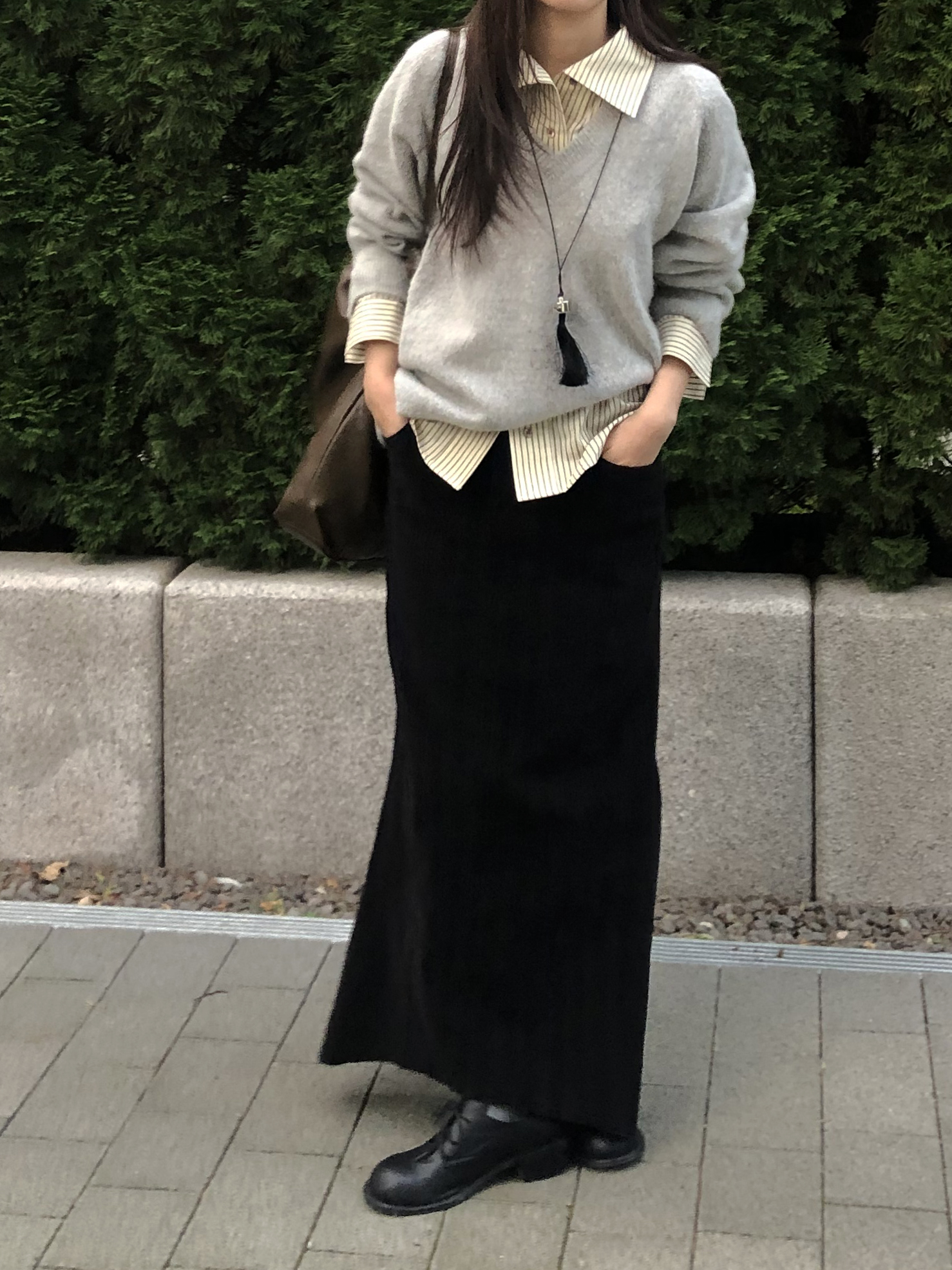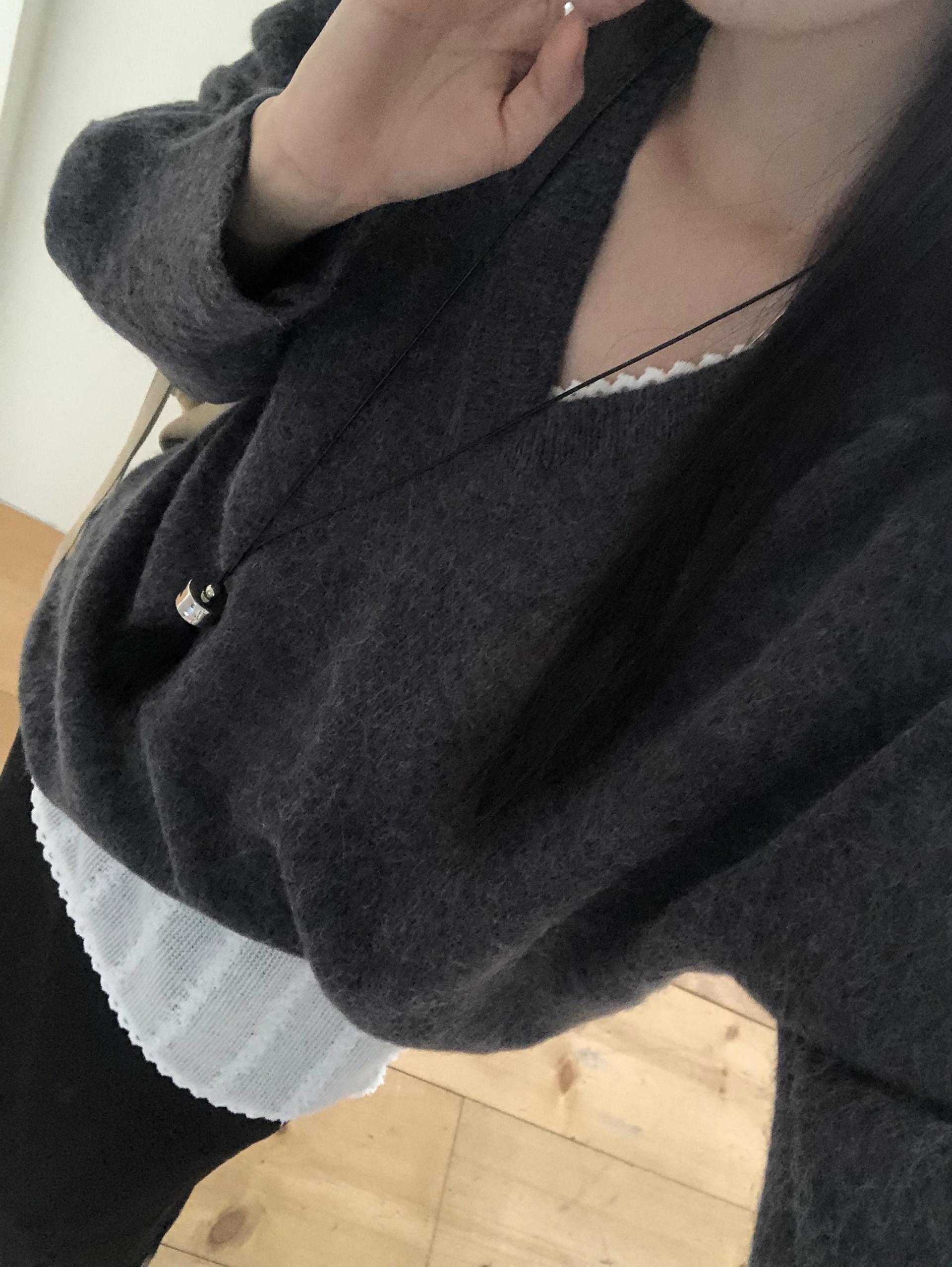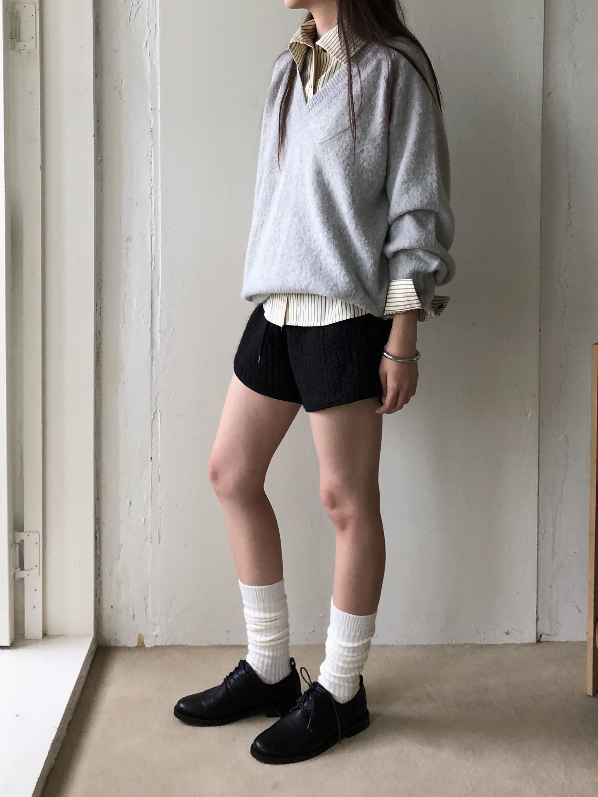 가볍지만 따뜻해요. 브이넥 니트는 특히 셔츠나 티셔츠 등을 레이어링 하는 경우가 많은데, 적당히 도톰한 편이라 레이어드했을 때 거대해지는,, 불상사가 없습니다.