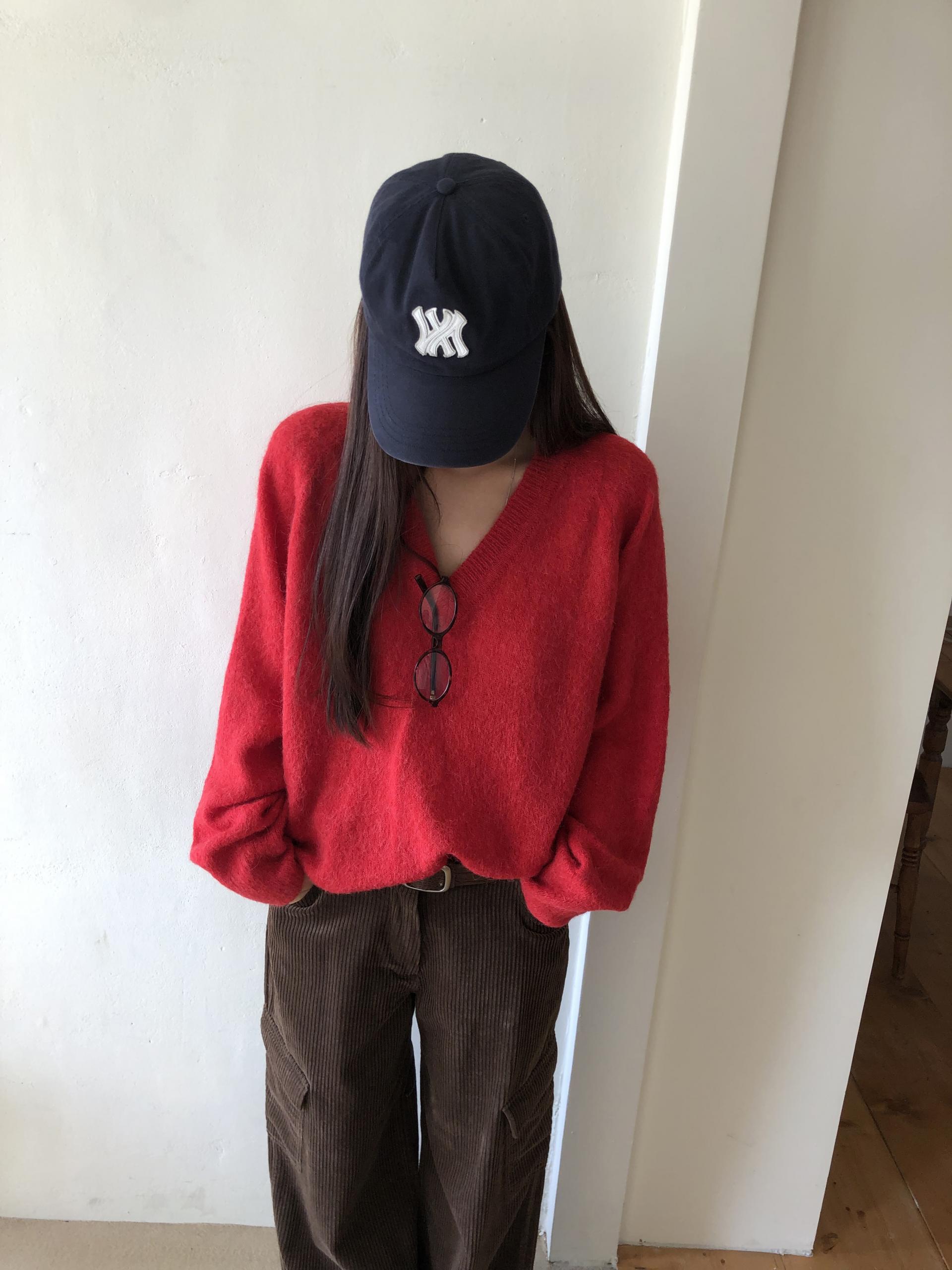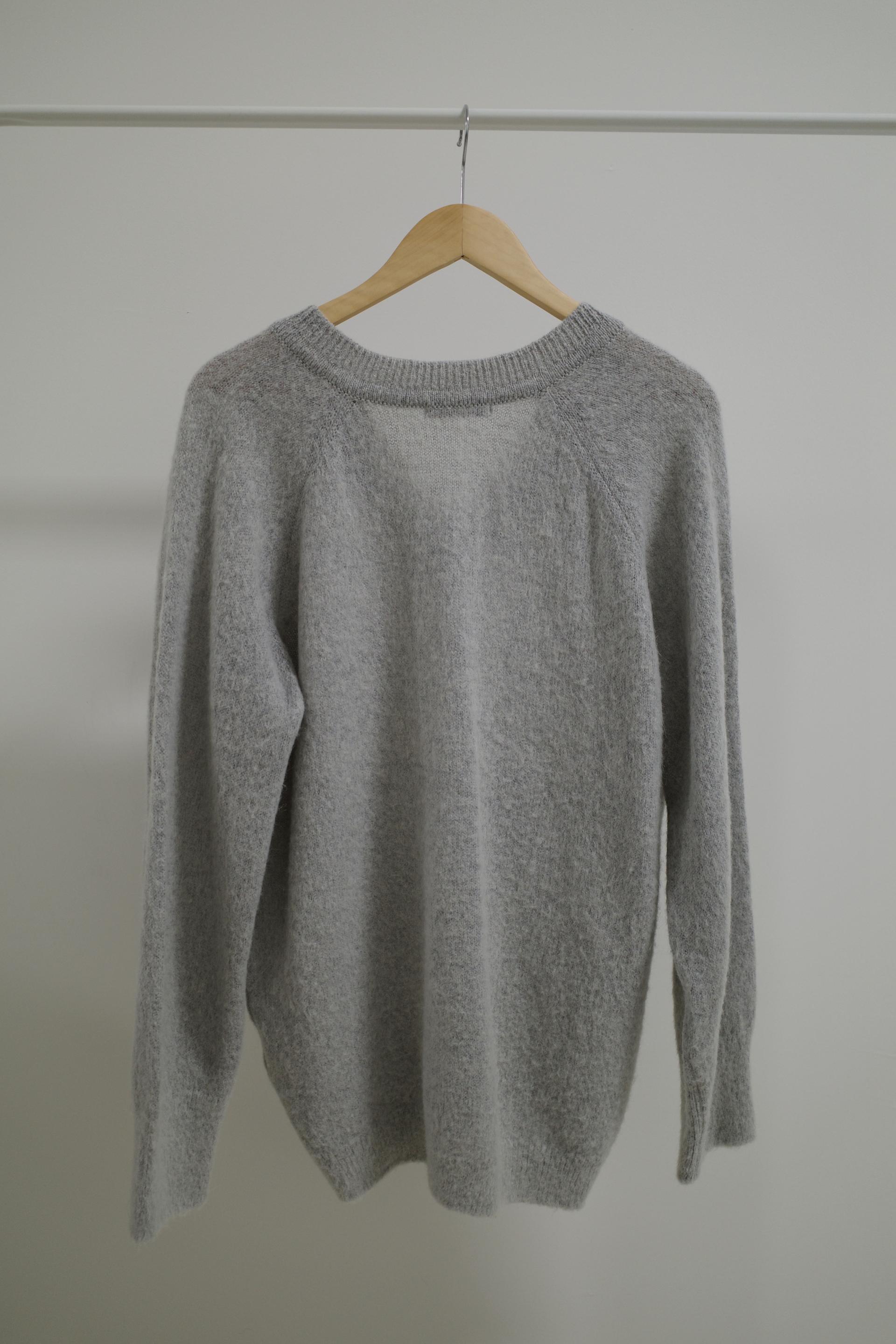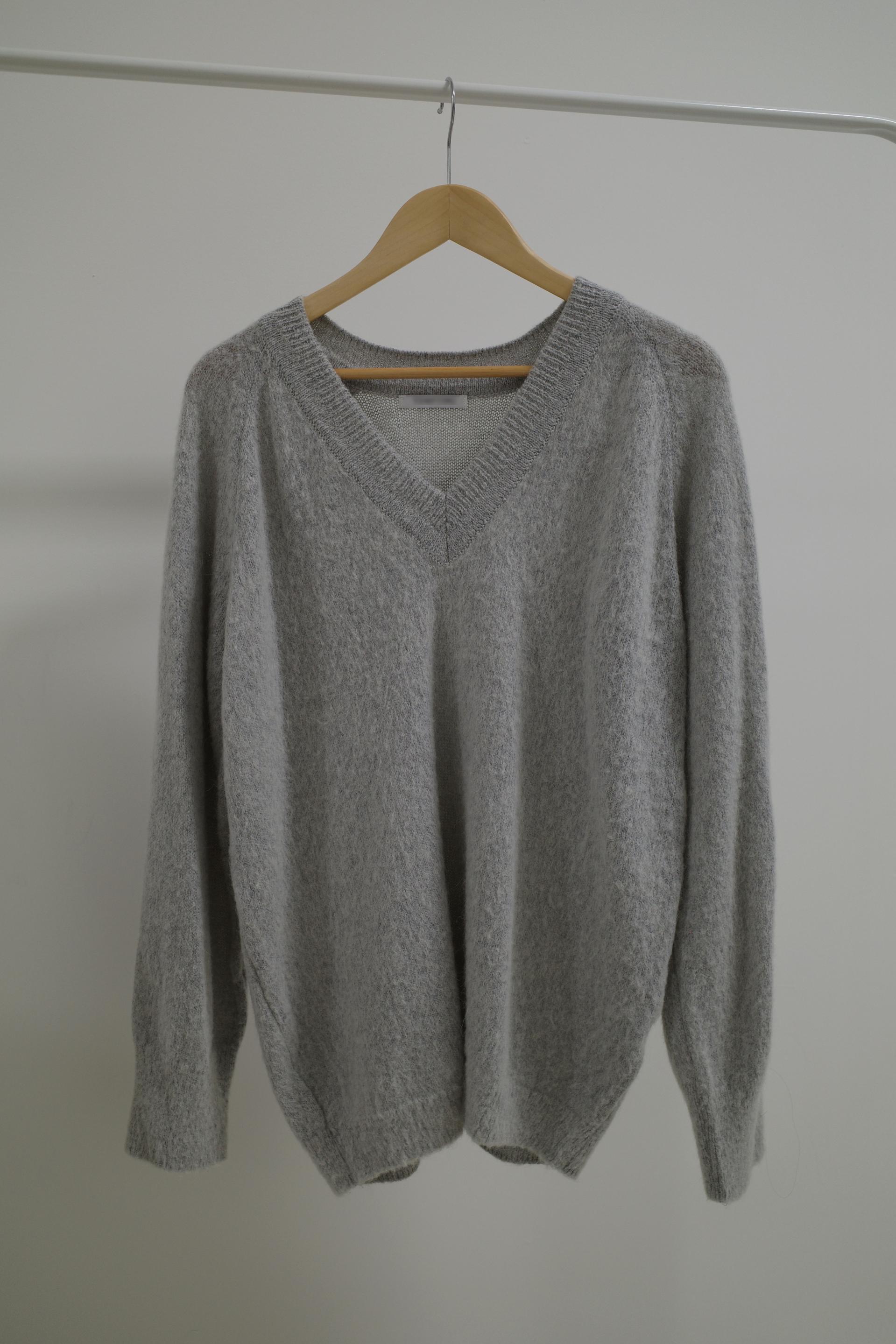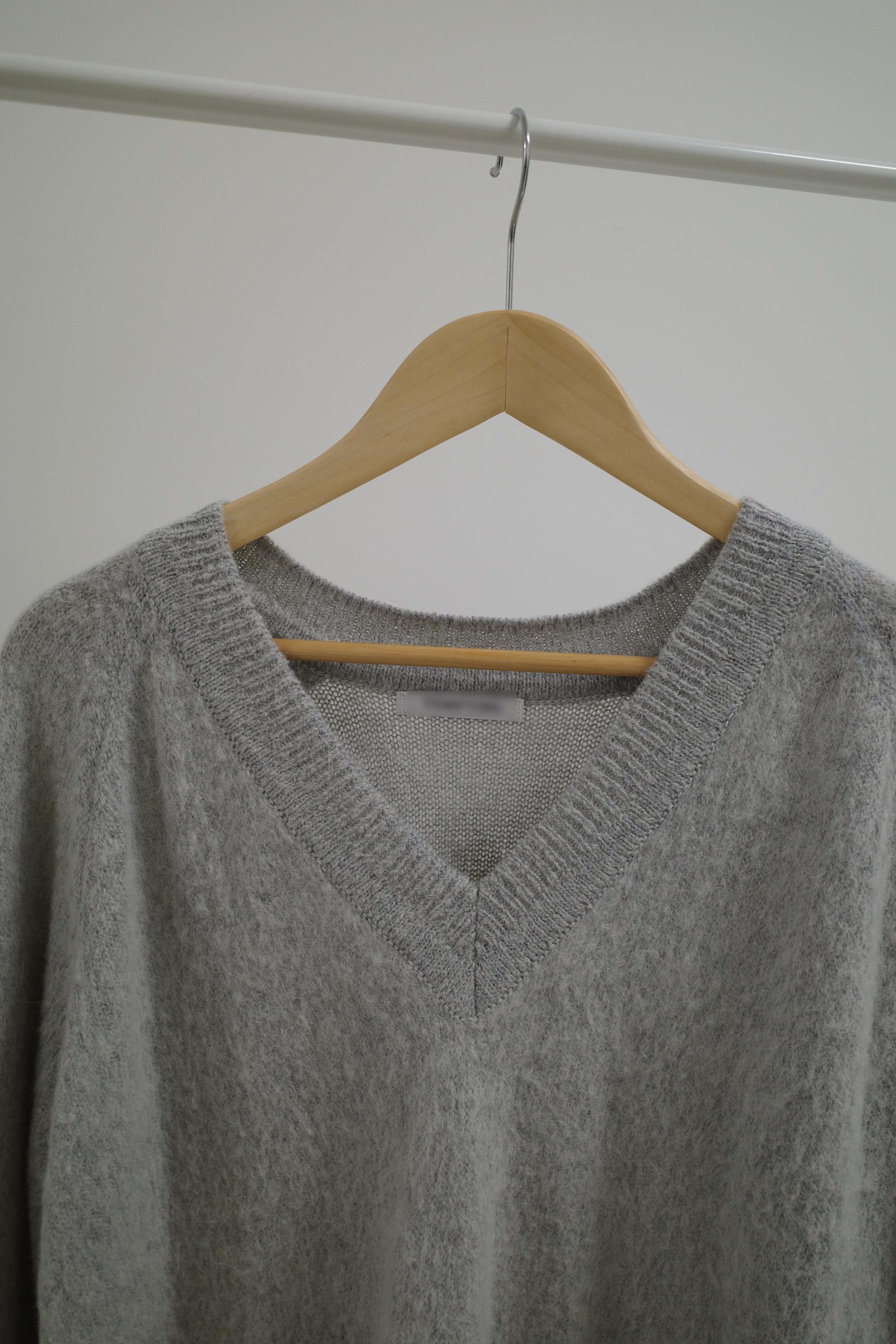 섬세한 헤어감이 살아있는 알파카 혼방의 브이넥 니트입니다. 자연스러운 결의 흐름이 고급스러운 질감을 연출합니다.