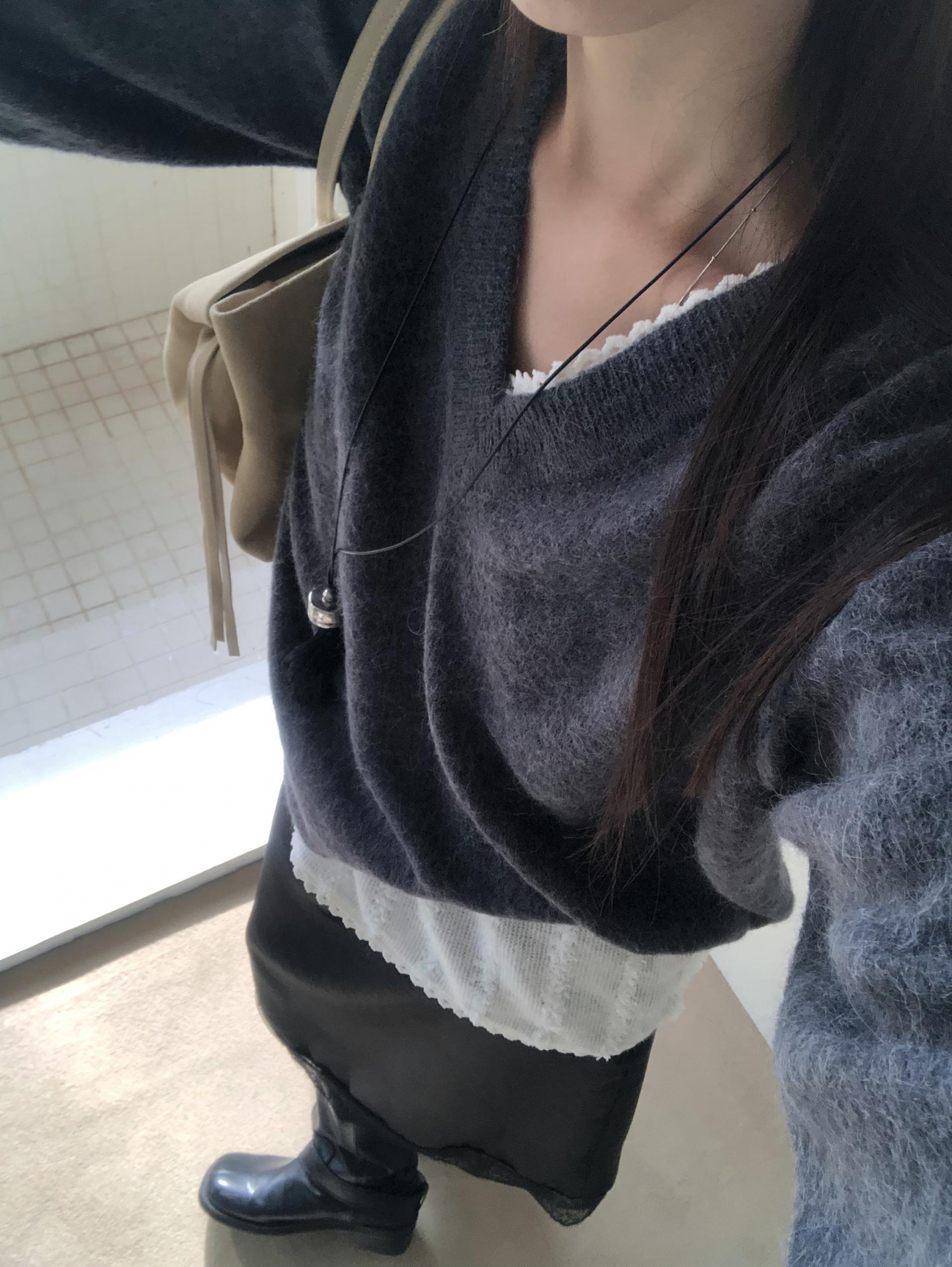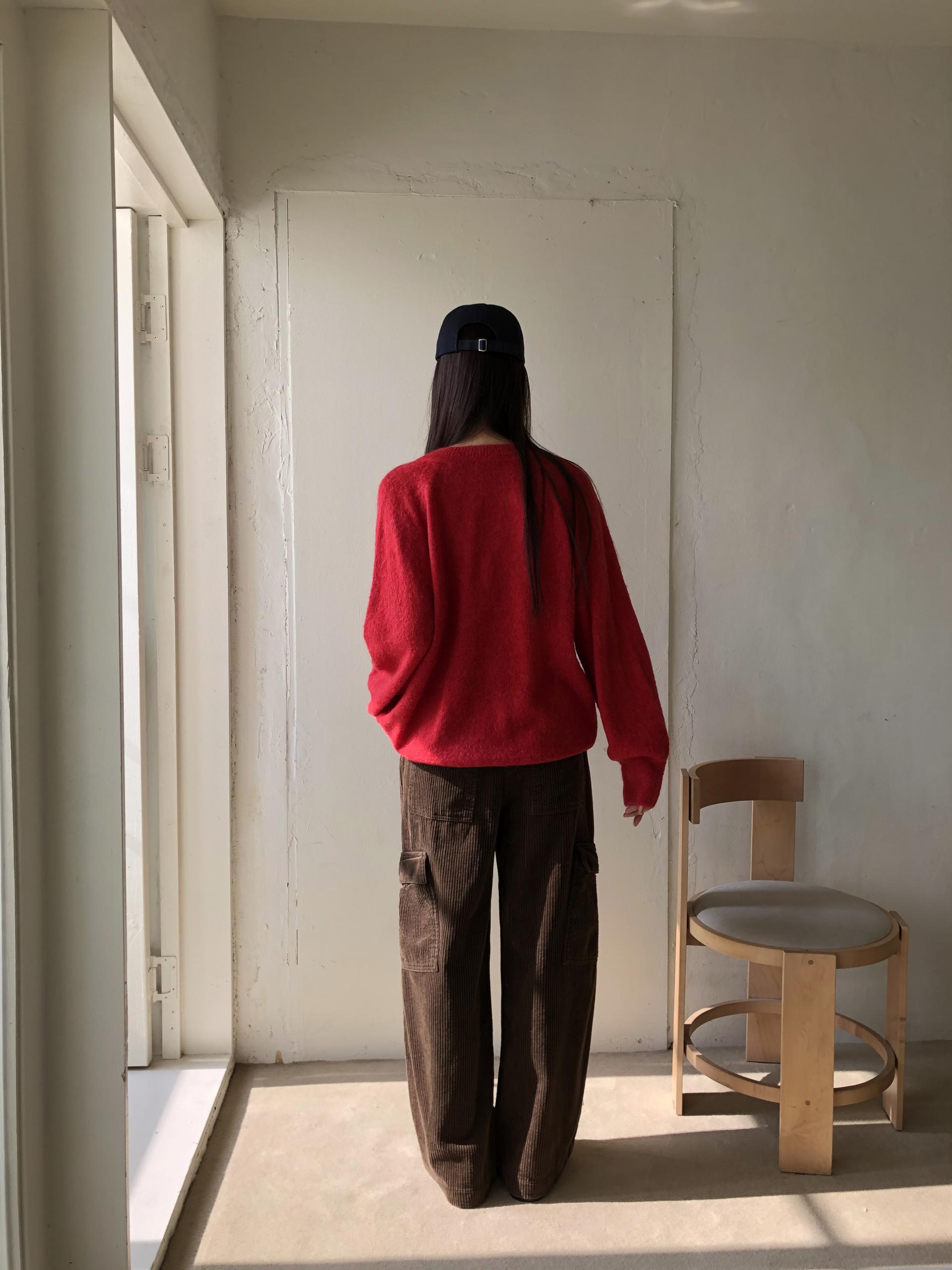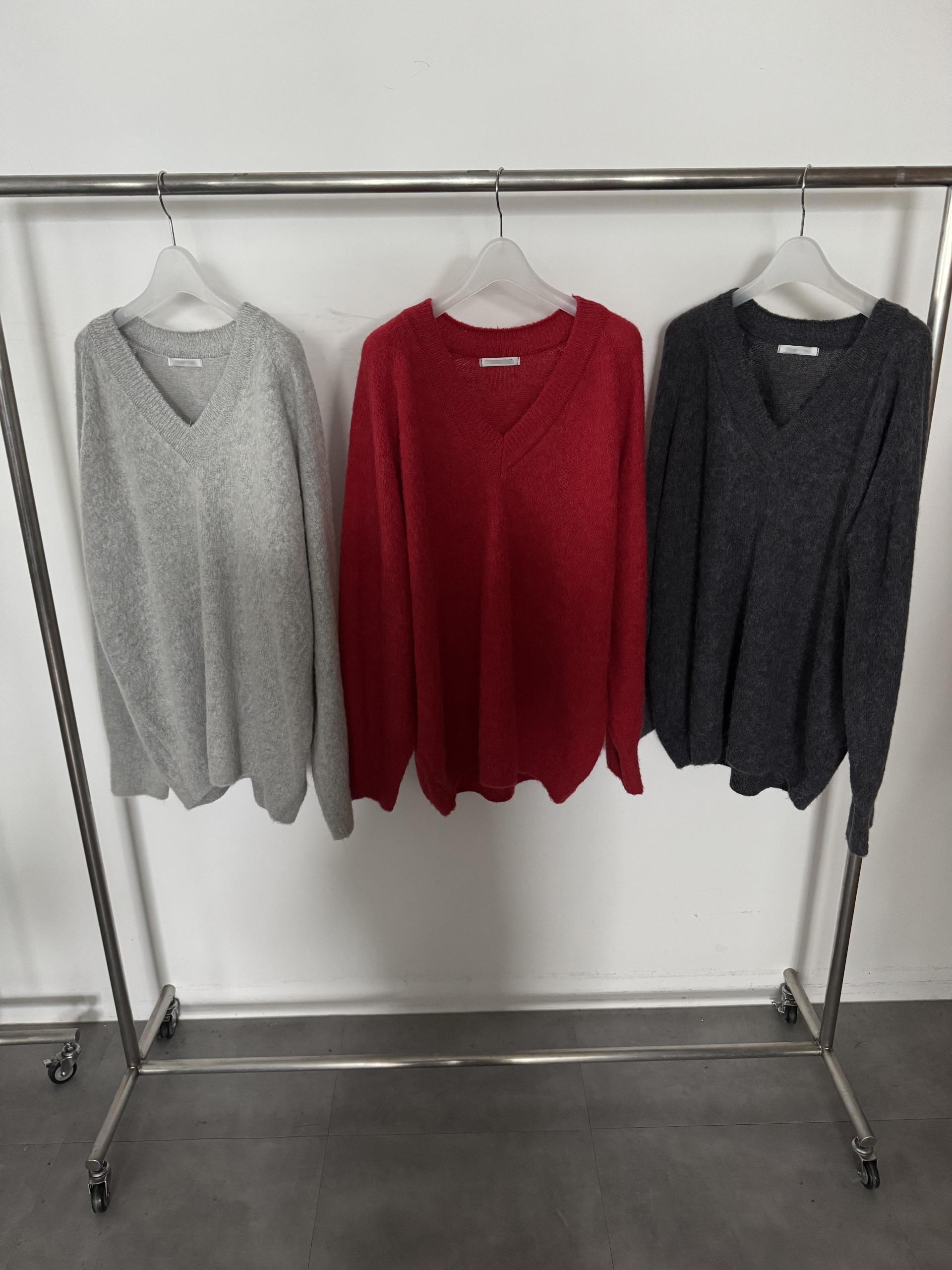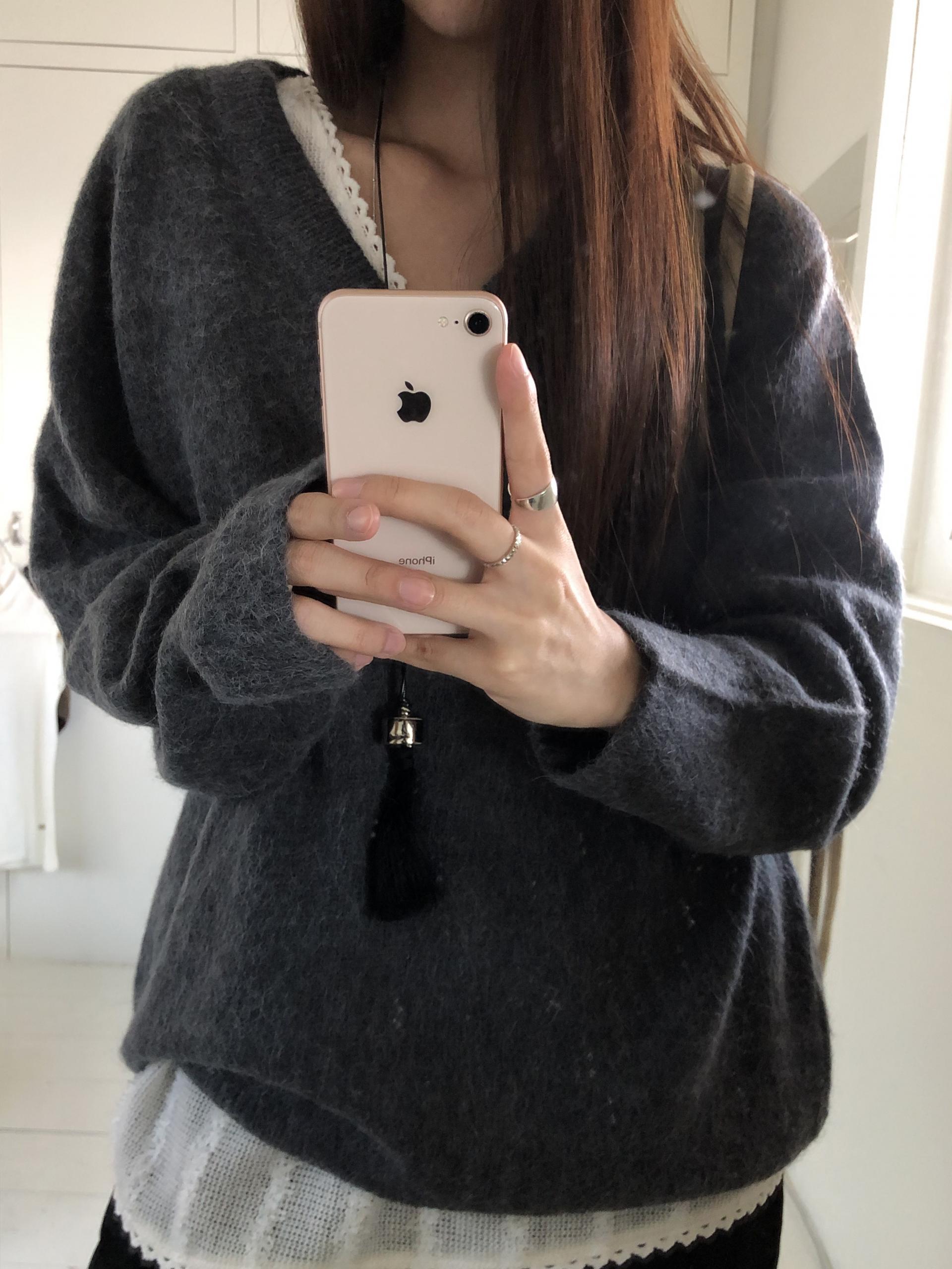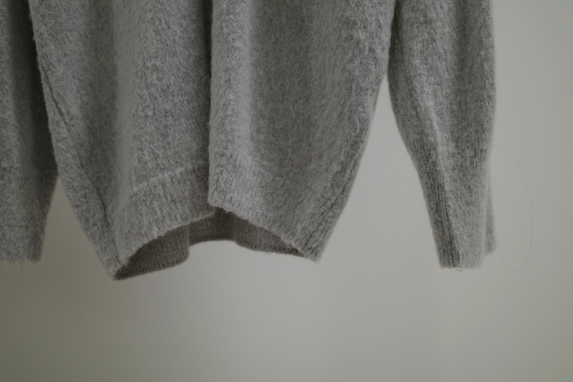 섬세한 헤어감이 살아있는 알파카 혼방의 브이넥 니트입니다. 자연스러운 결의 흐름이 고급스러운 질감을 연출합니다.