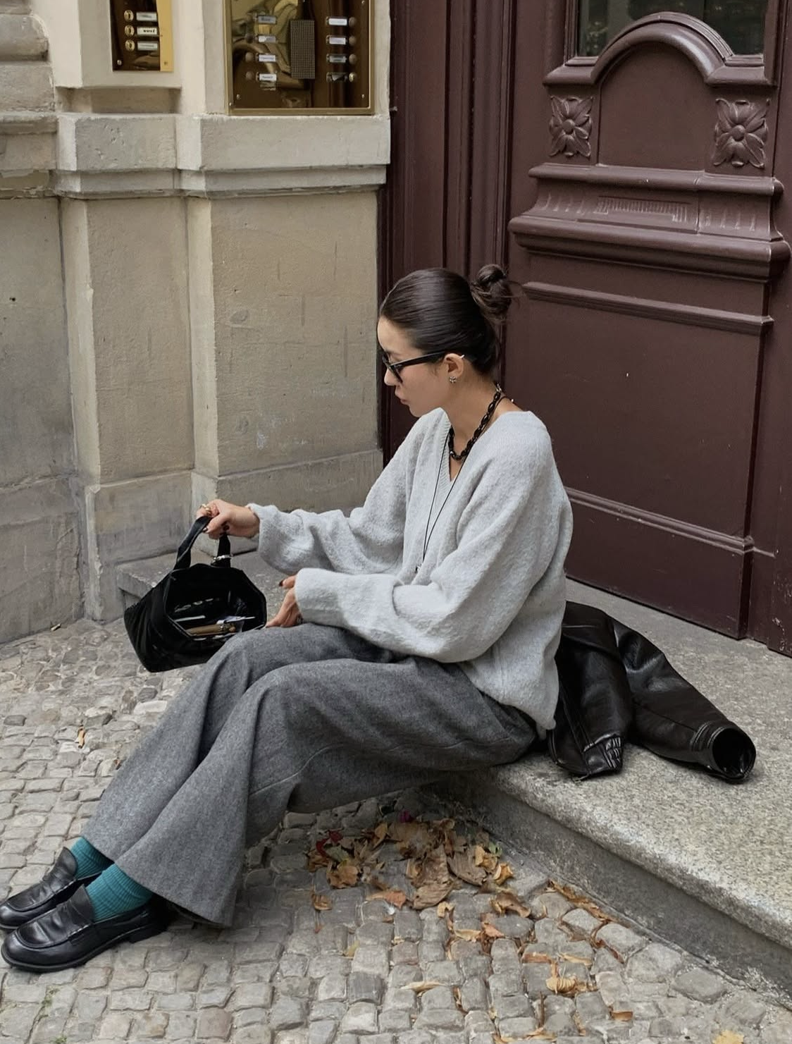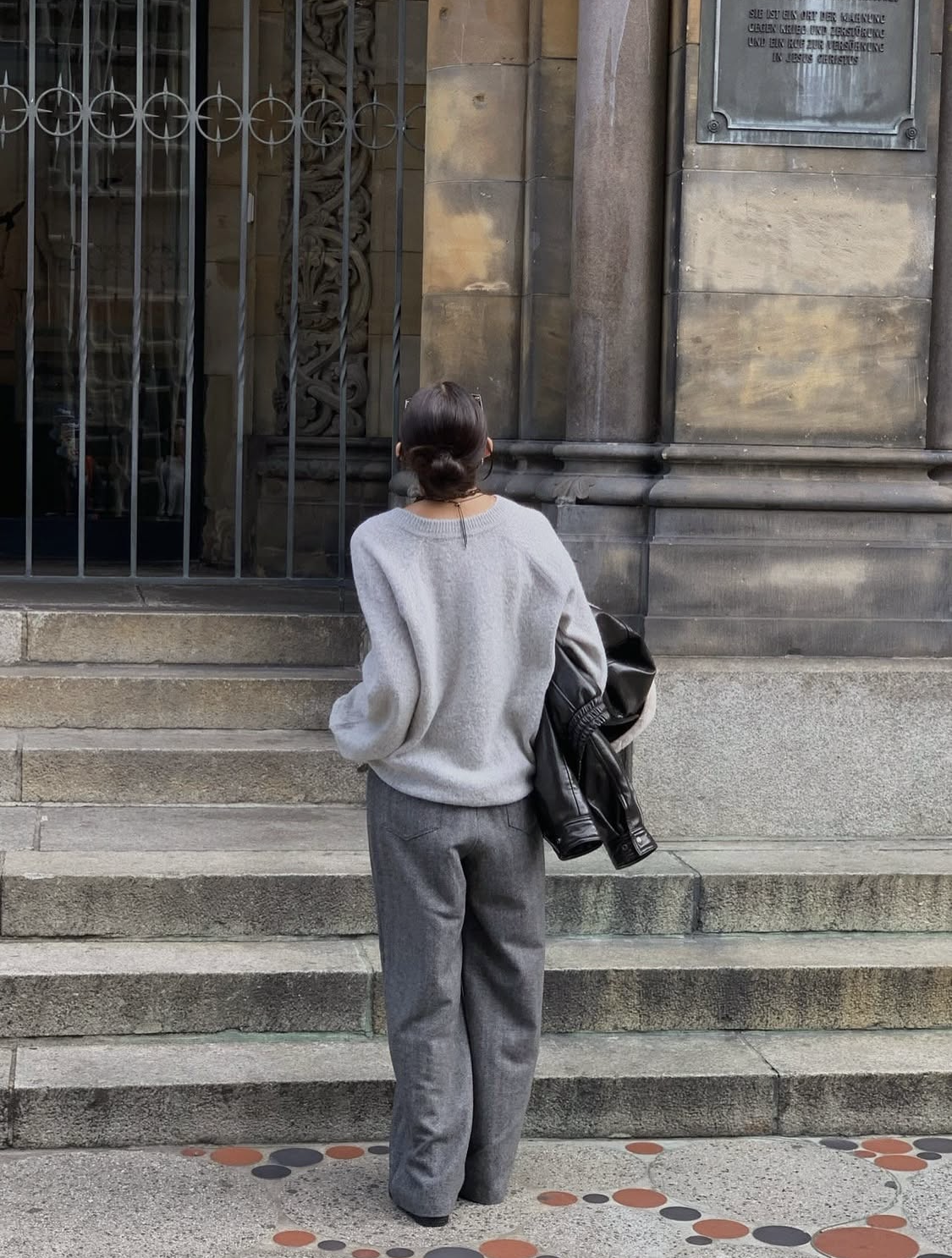 라이트 그레이는 특히 함께 매치한 버터 컬러의 셔츠와 잘 어울렸어요. 컬러감 있는 이너와 함께 매치해보시면 좋을 것 같아요.