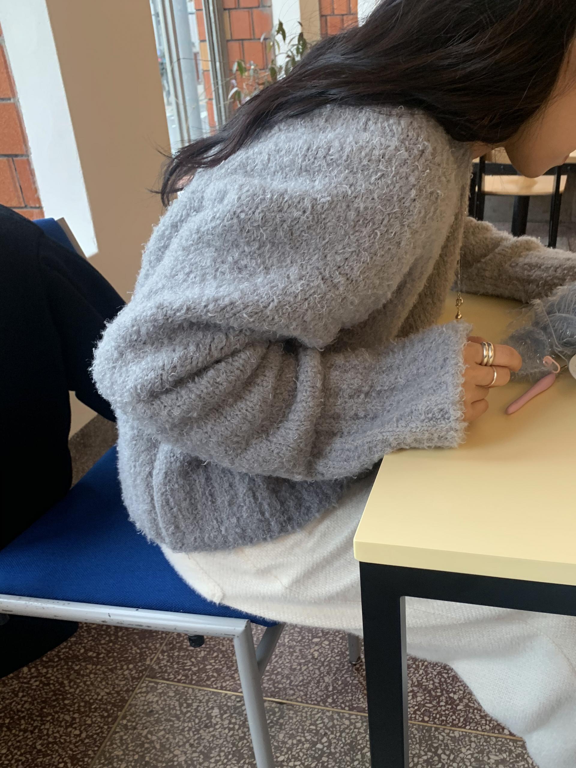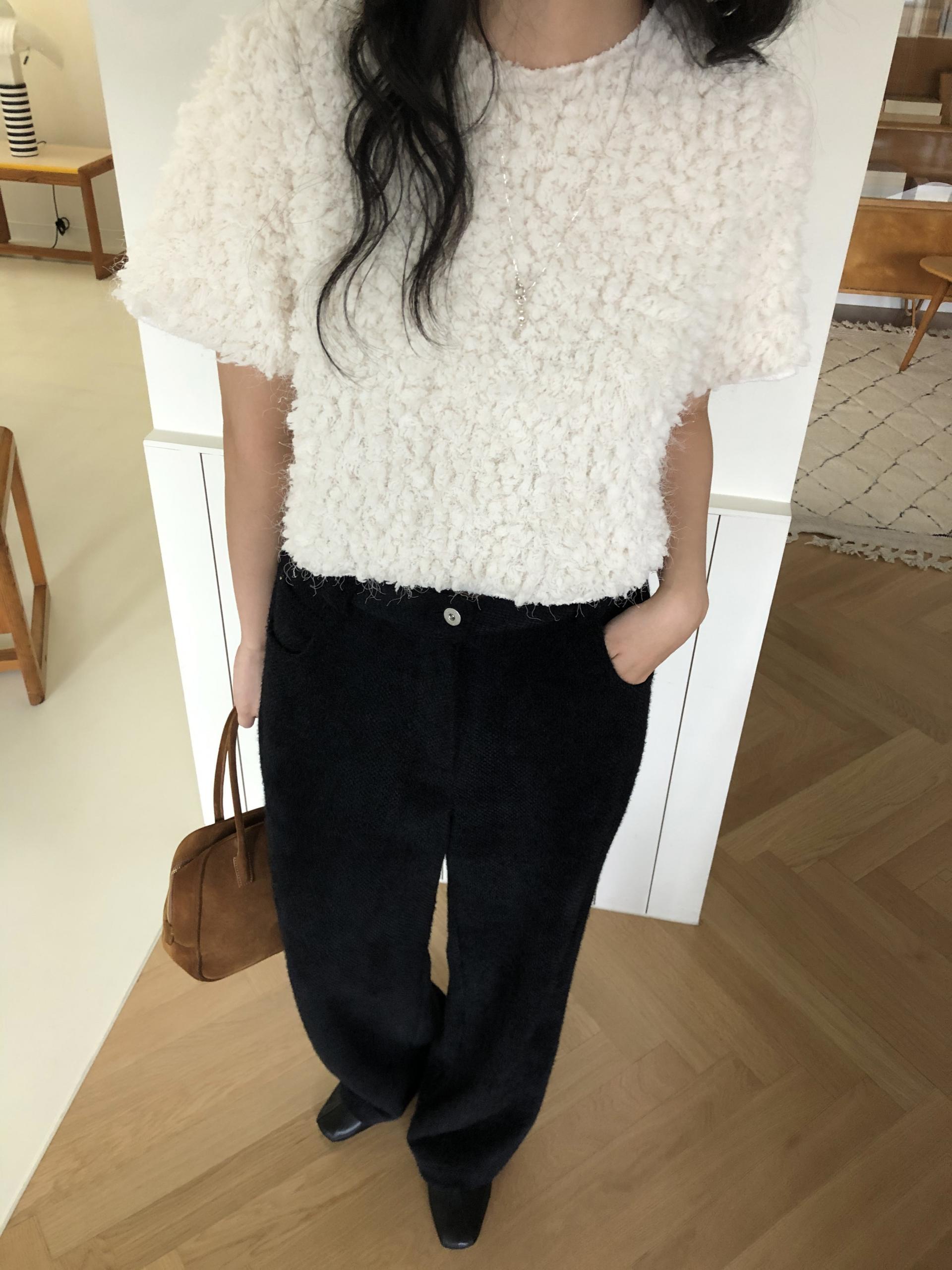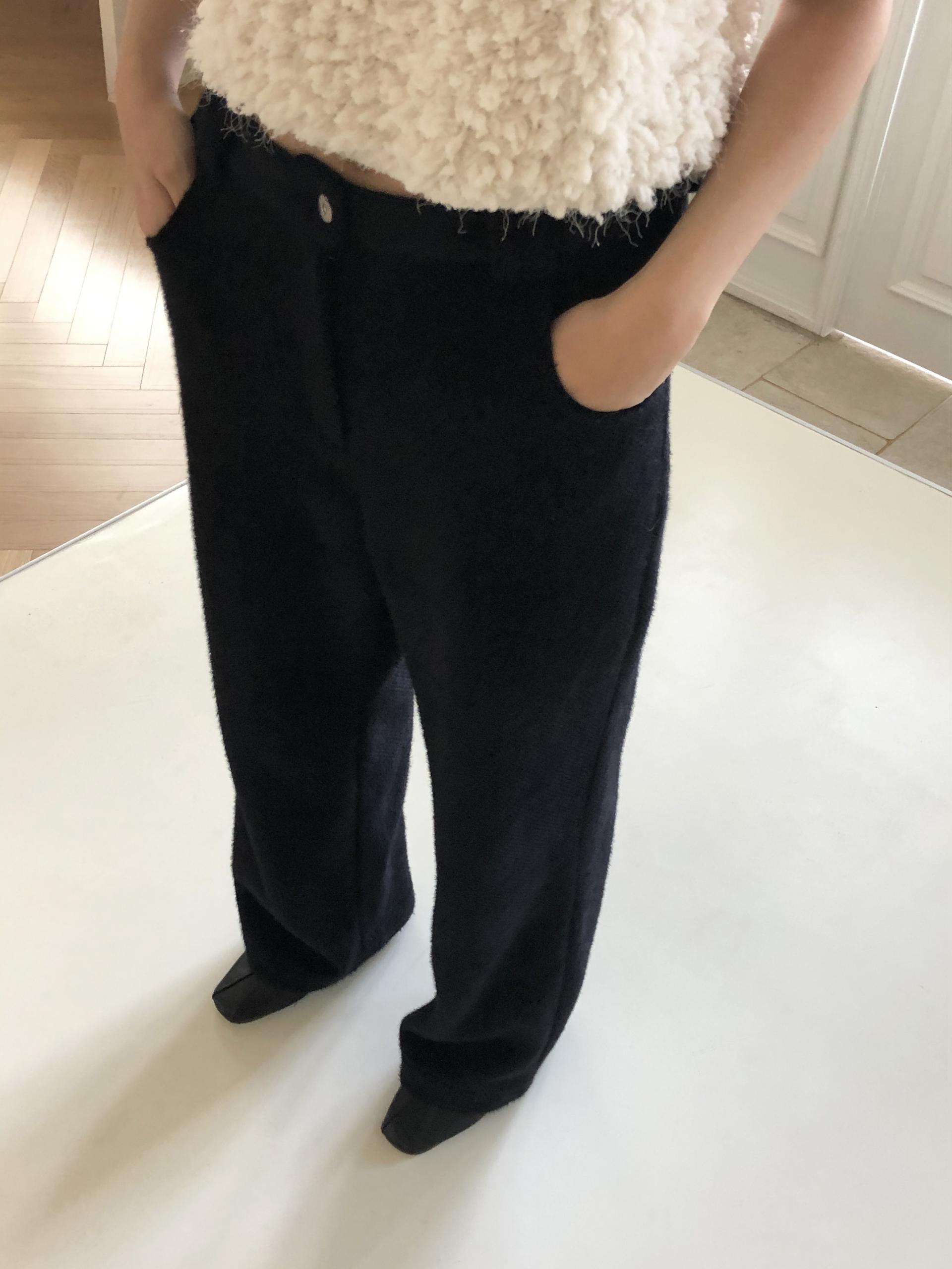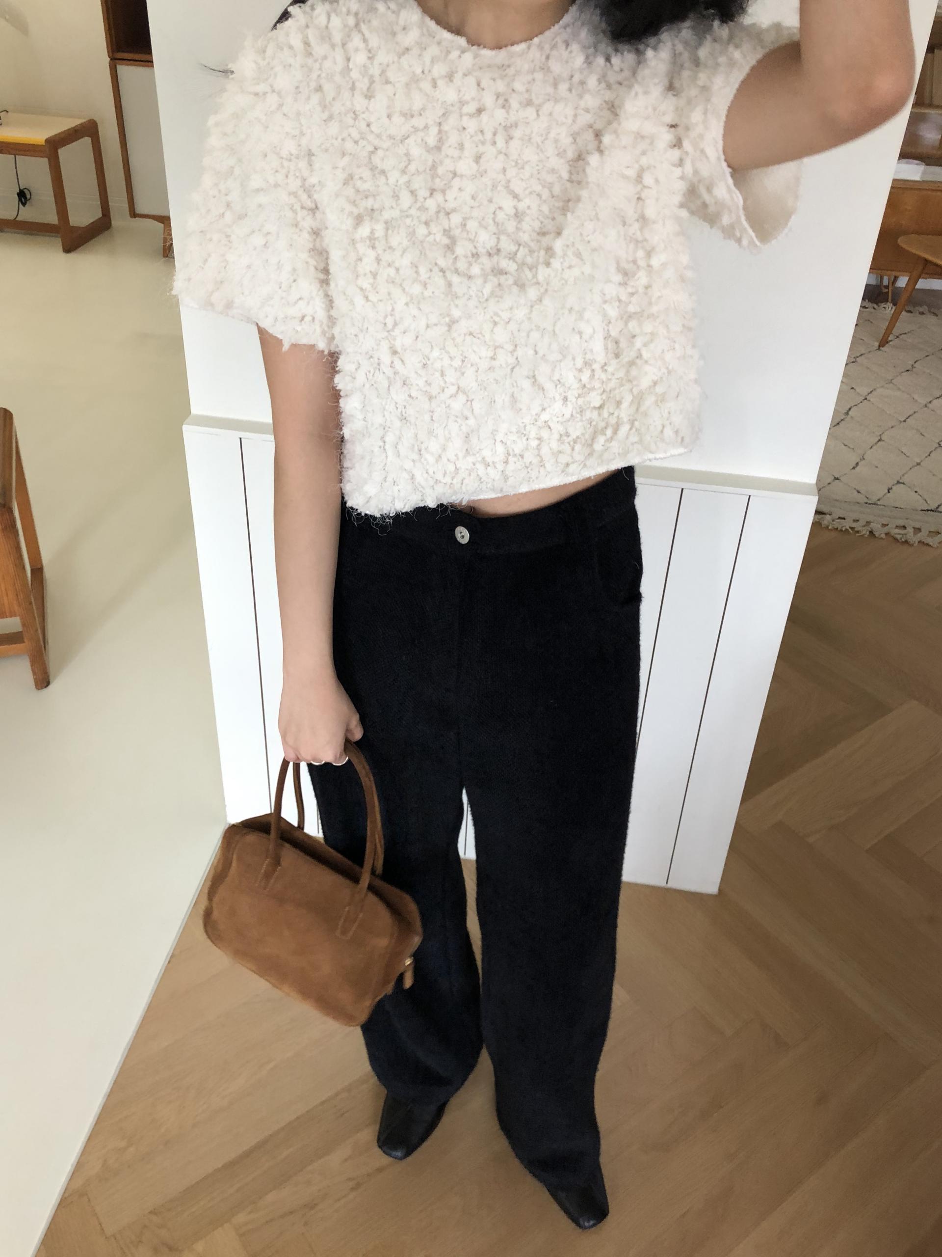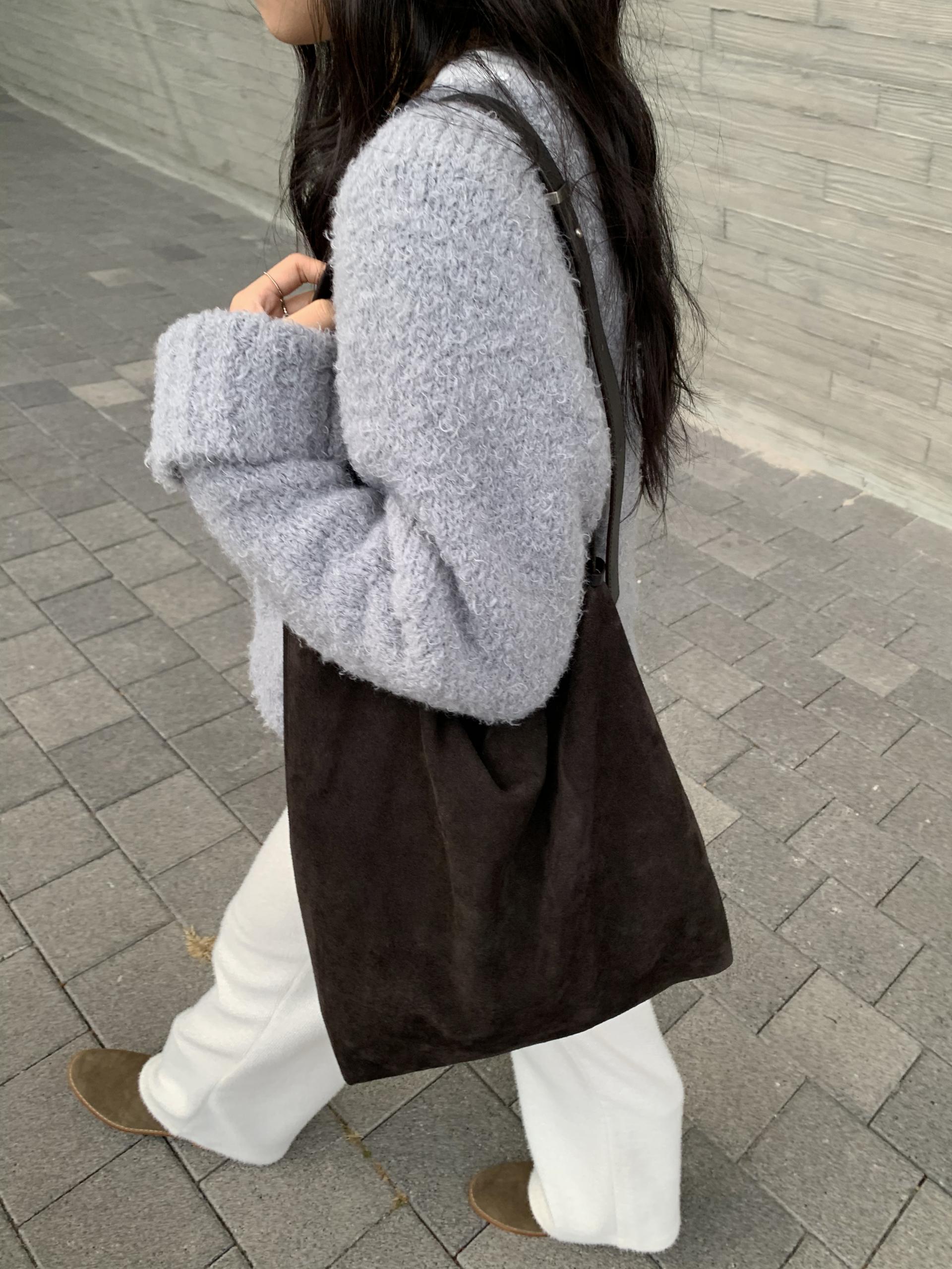 뽀송뽀송. 헤어가 느껴지는 소재입니다. 자세히 보시면 조직감이 돋보여 무겁고 어두운 겨울옷들 사이에 포인트 주기 좋은 제품이에요.