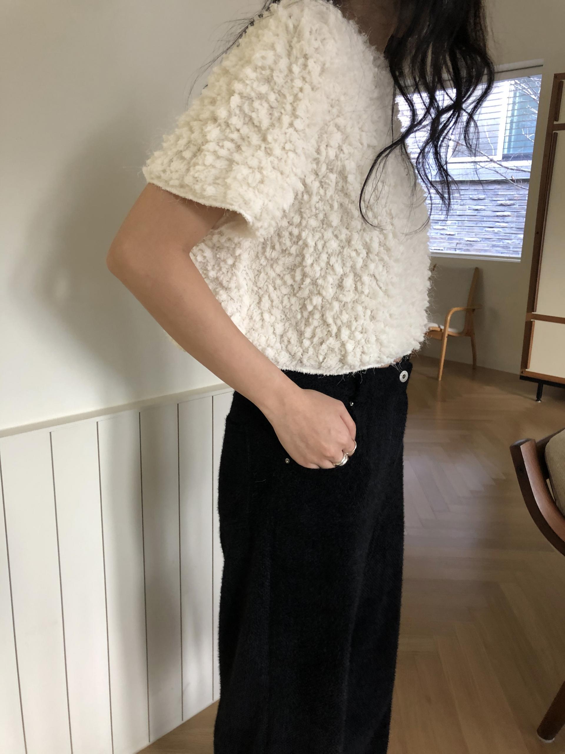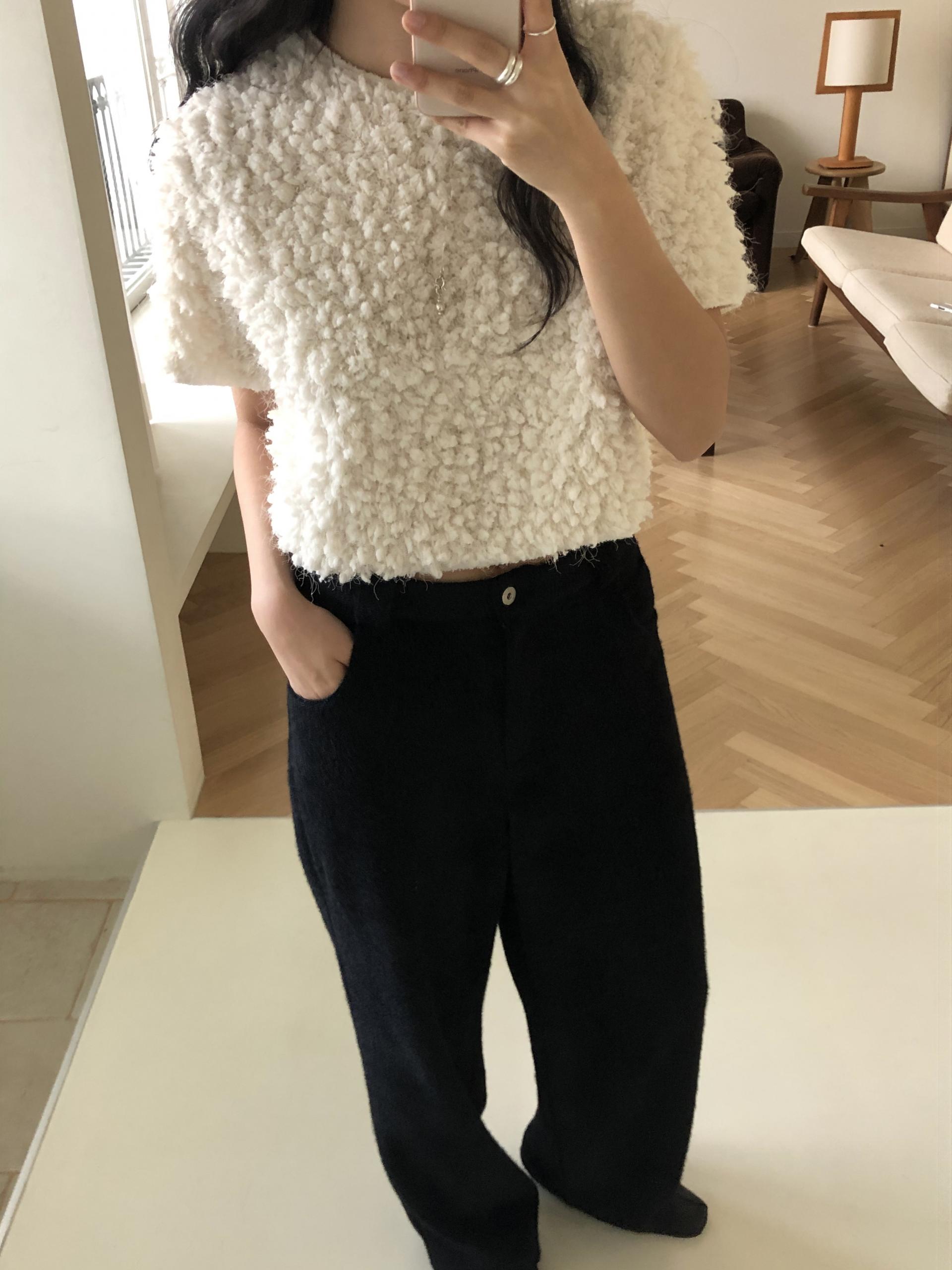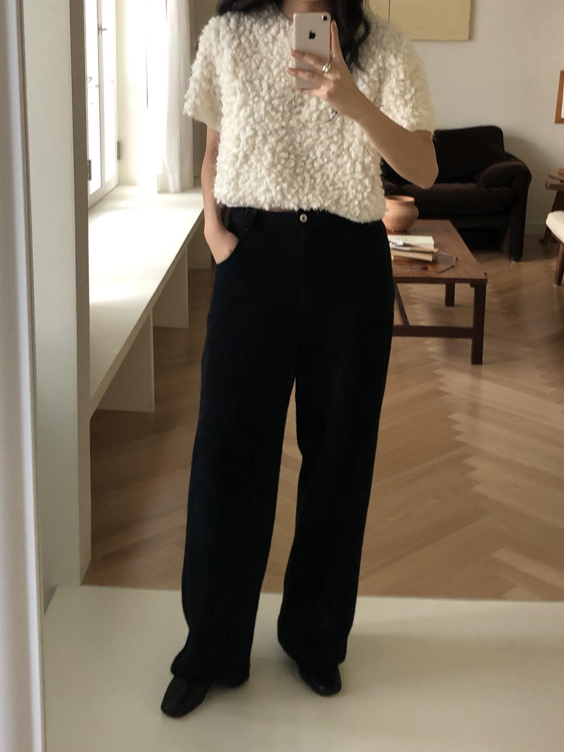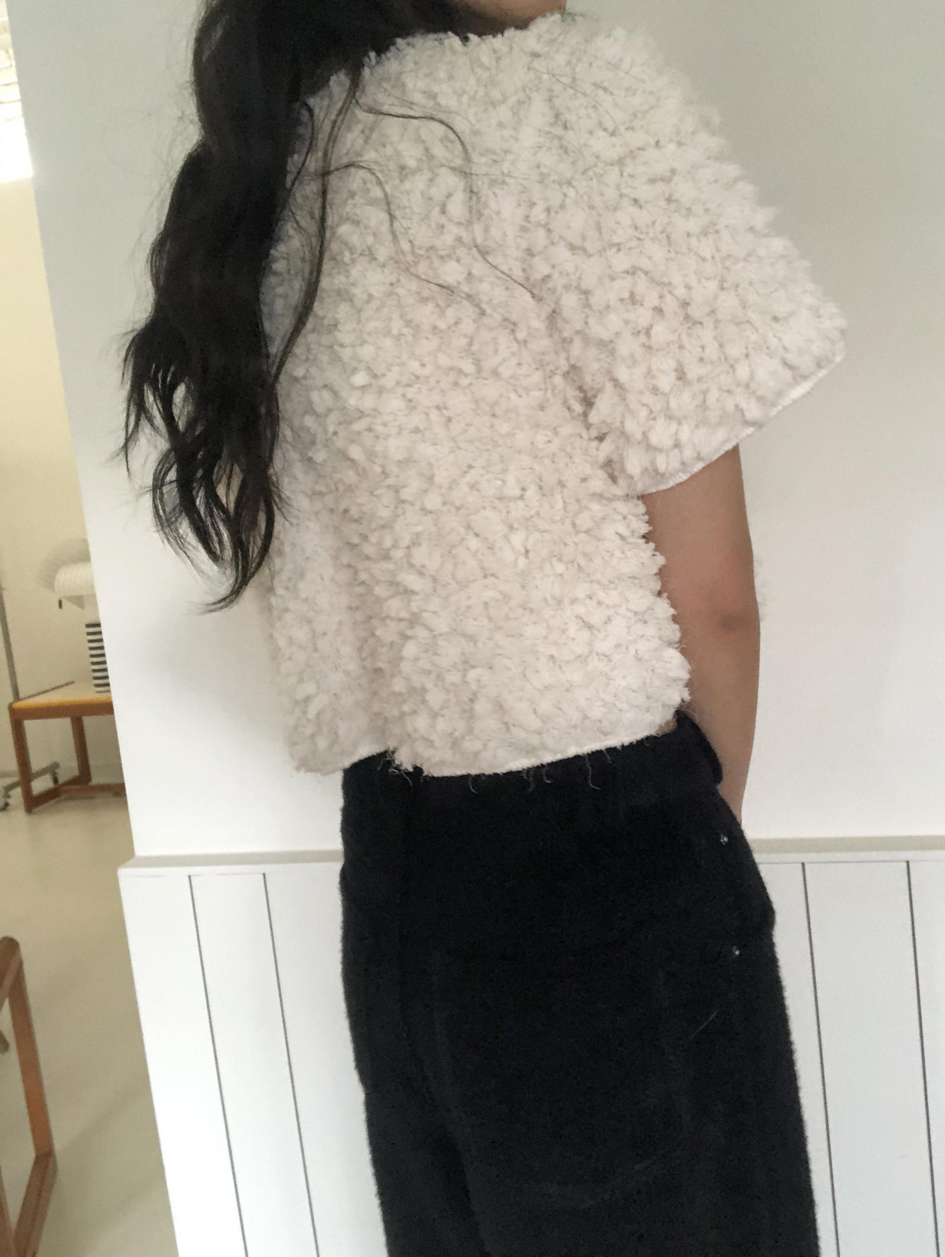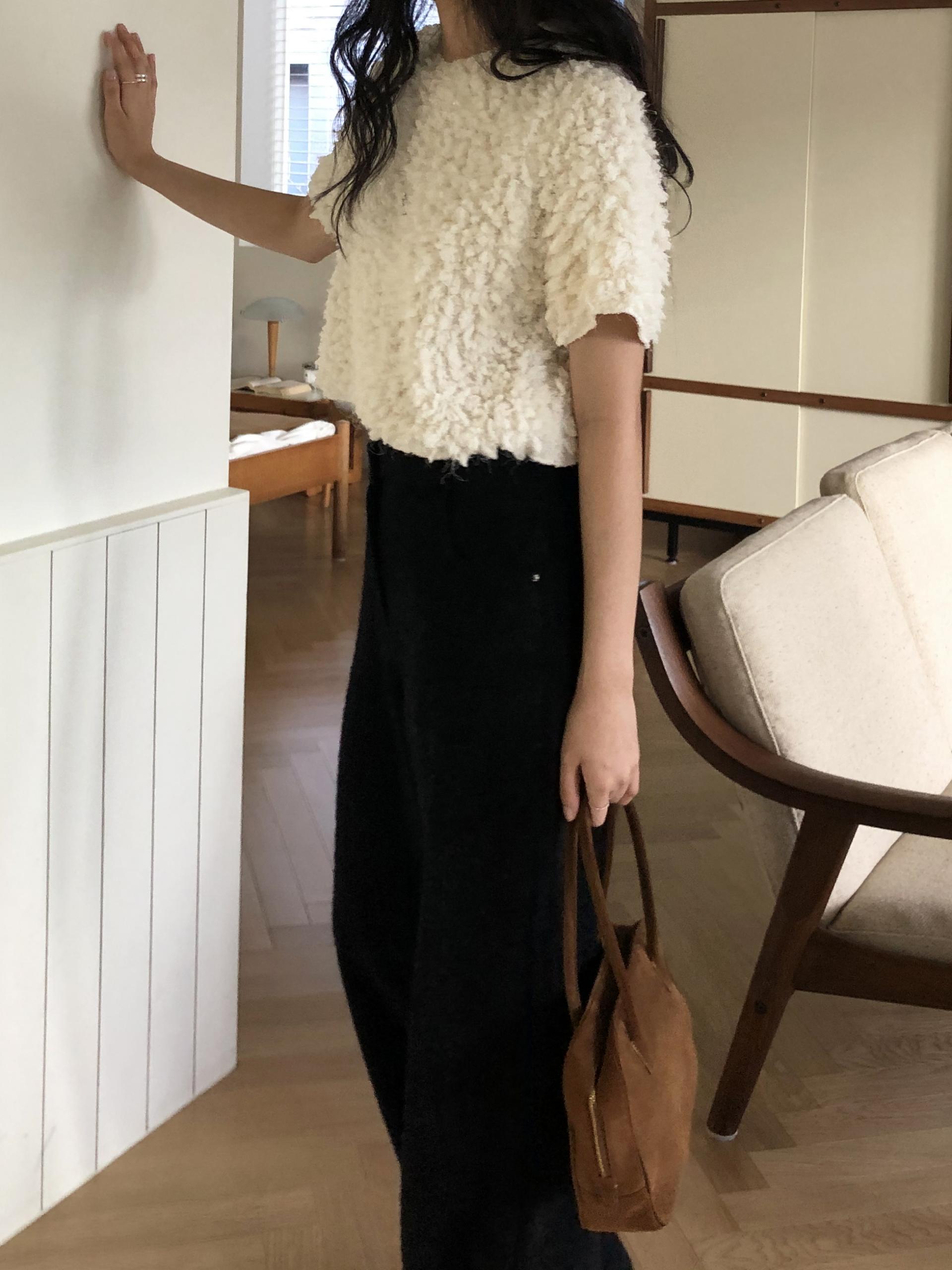 뽀송뽀송. 헤어가 느껴지는 소재입니다. 자세히 보시면 조직감이 돋보여 무겁고 어두운 겨울옷들 사이에 포인트 주기 좋은 제품이에요.