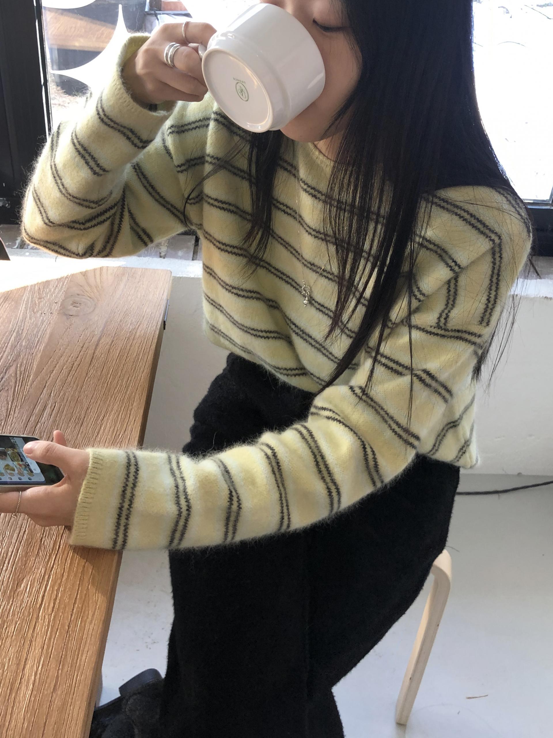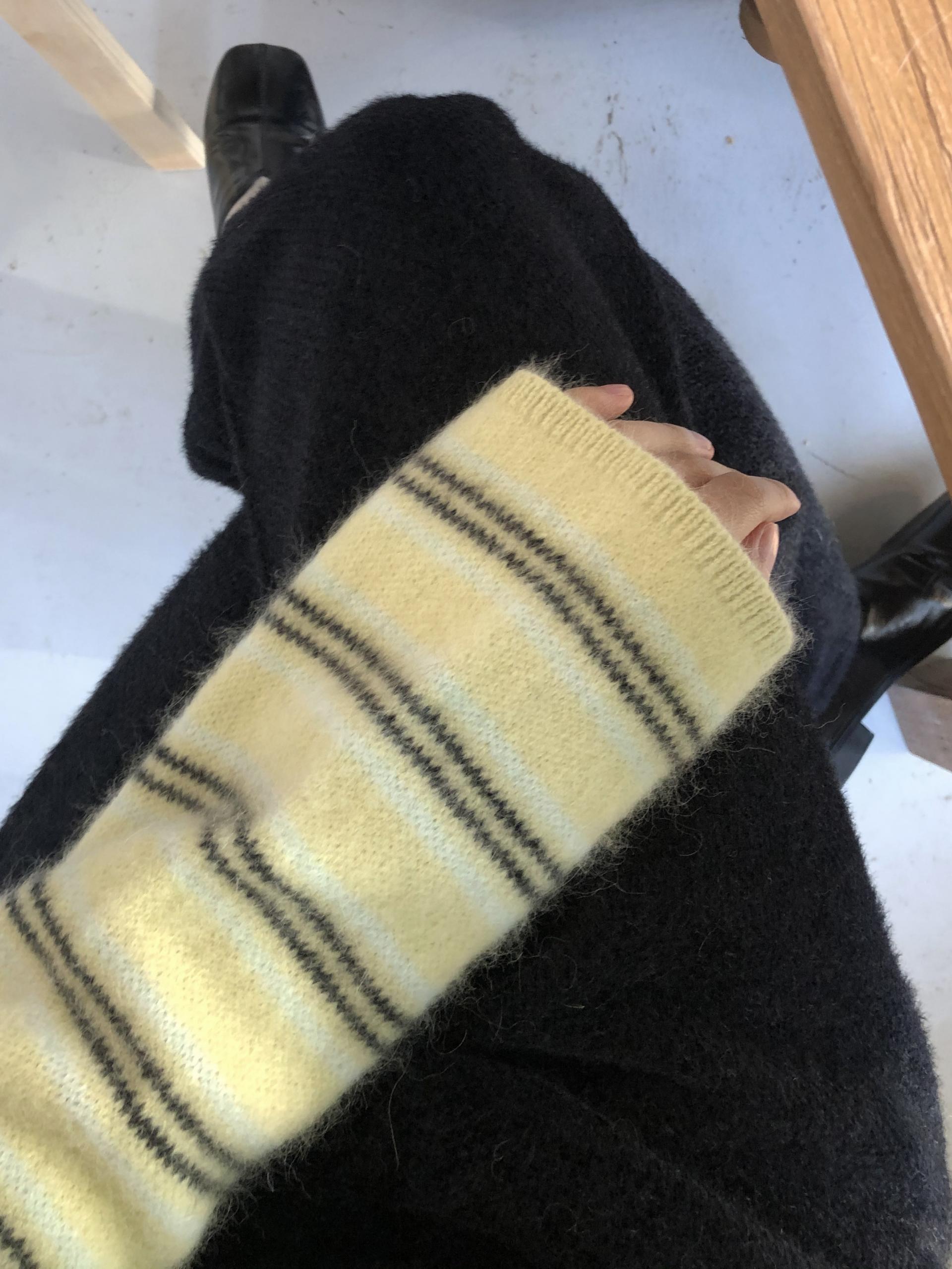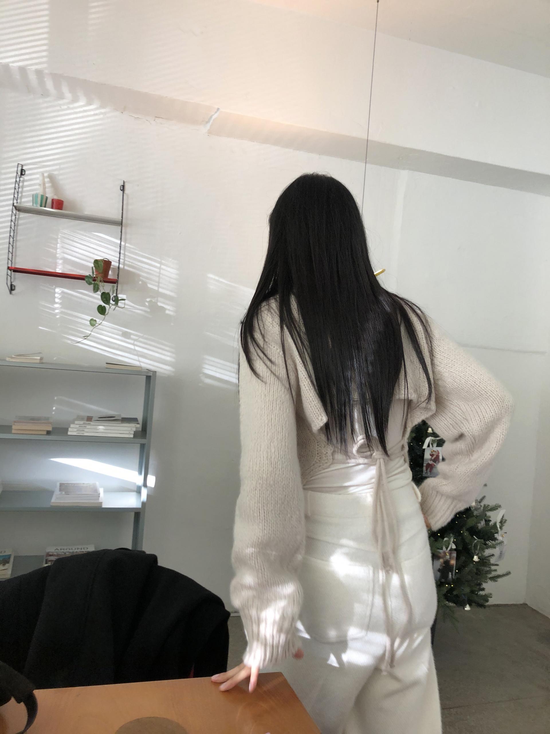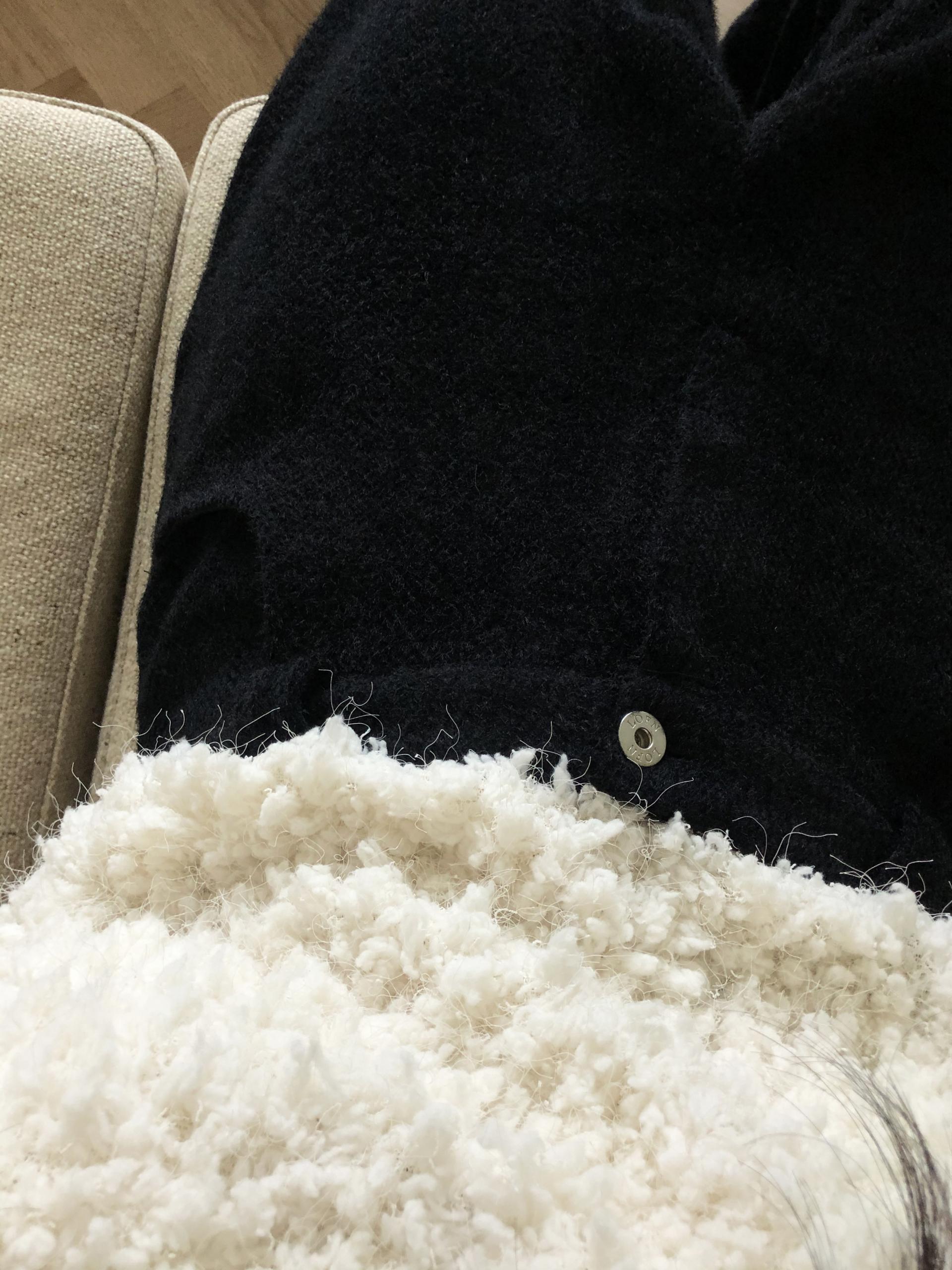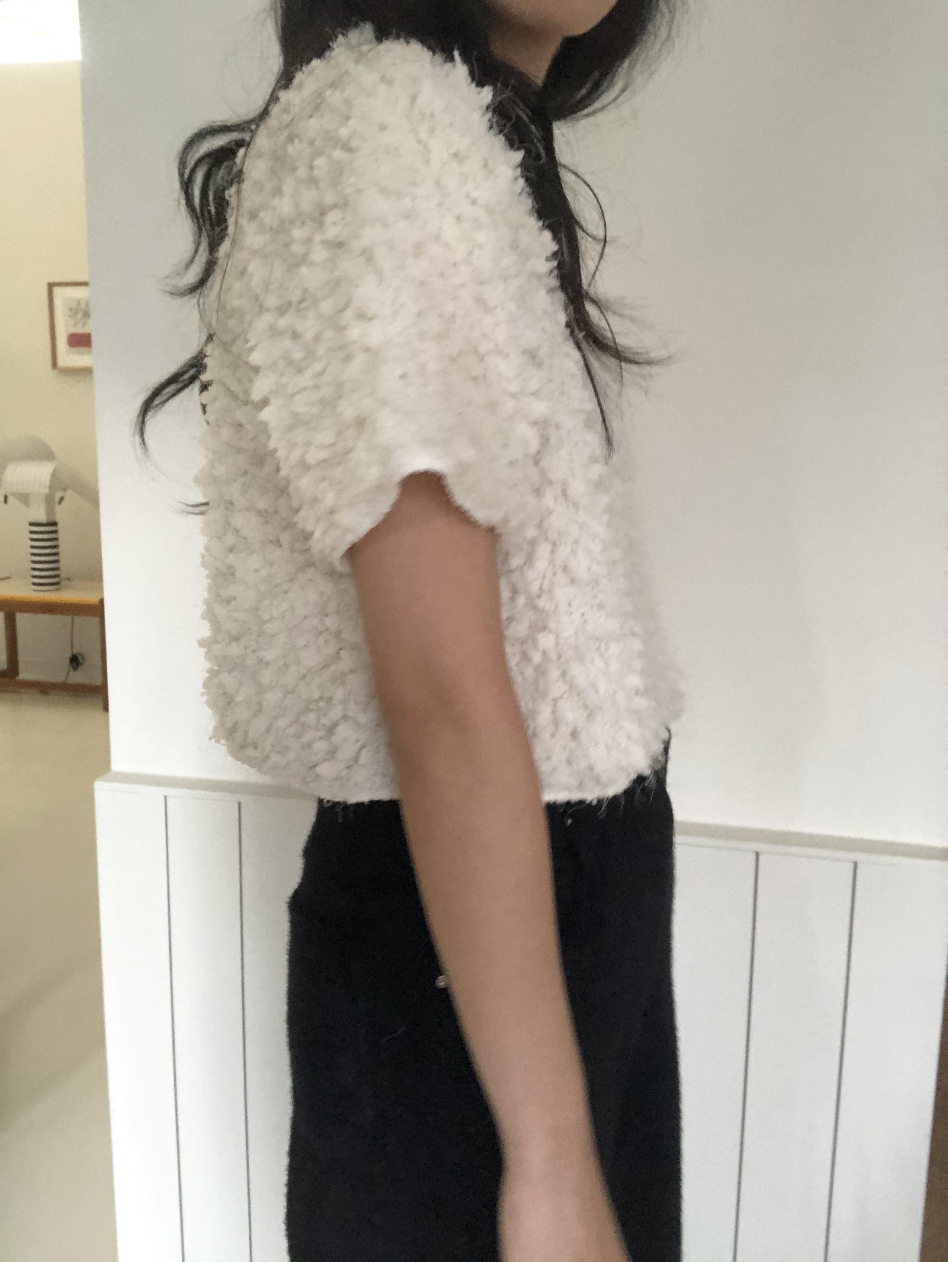 뽀송뽀송. 헤어가 느껴지는 소재입니다. 자세히 보시면 조직감이 돋보여 무겁고 어두운 겨울옷들 사이에 포인트 주기 좋은 제품이에요.