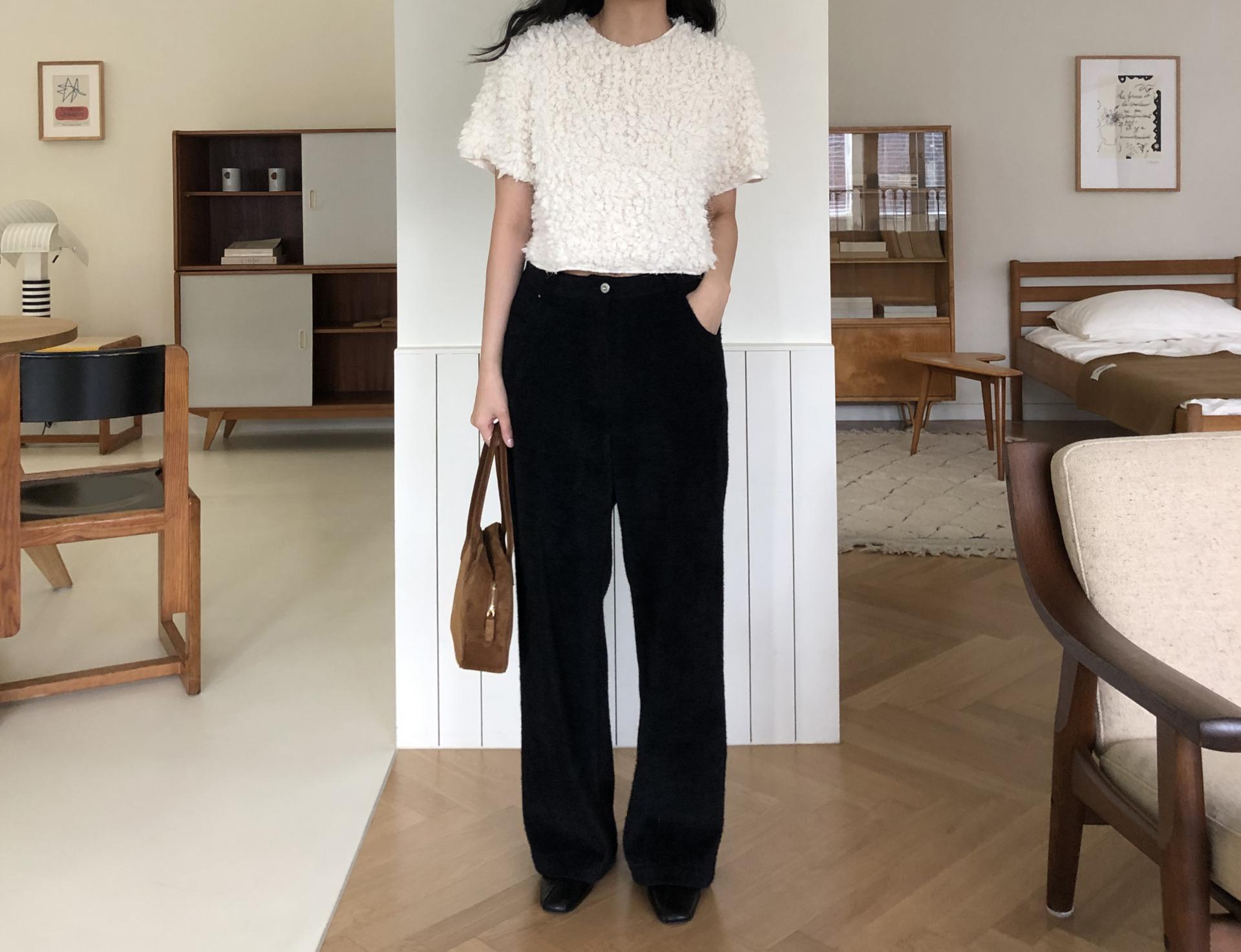 보통 이렇게 헤어감이 있는 소재는 조거팬츠 디자인이 대다수인데,