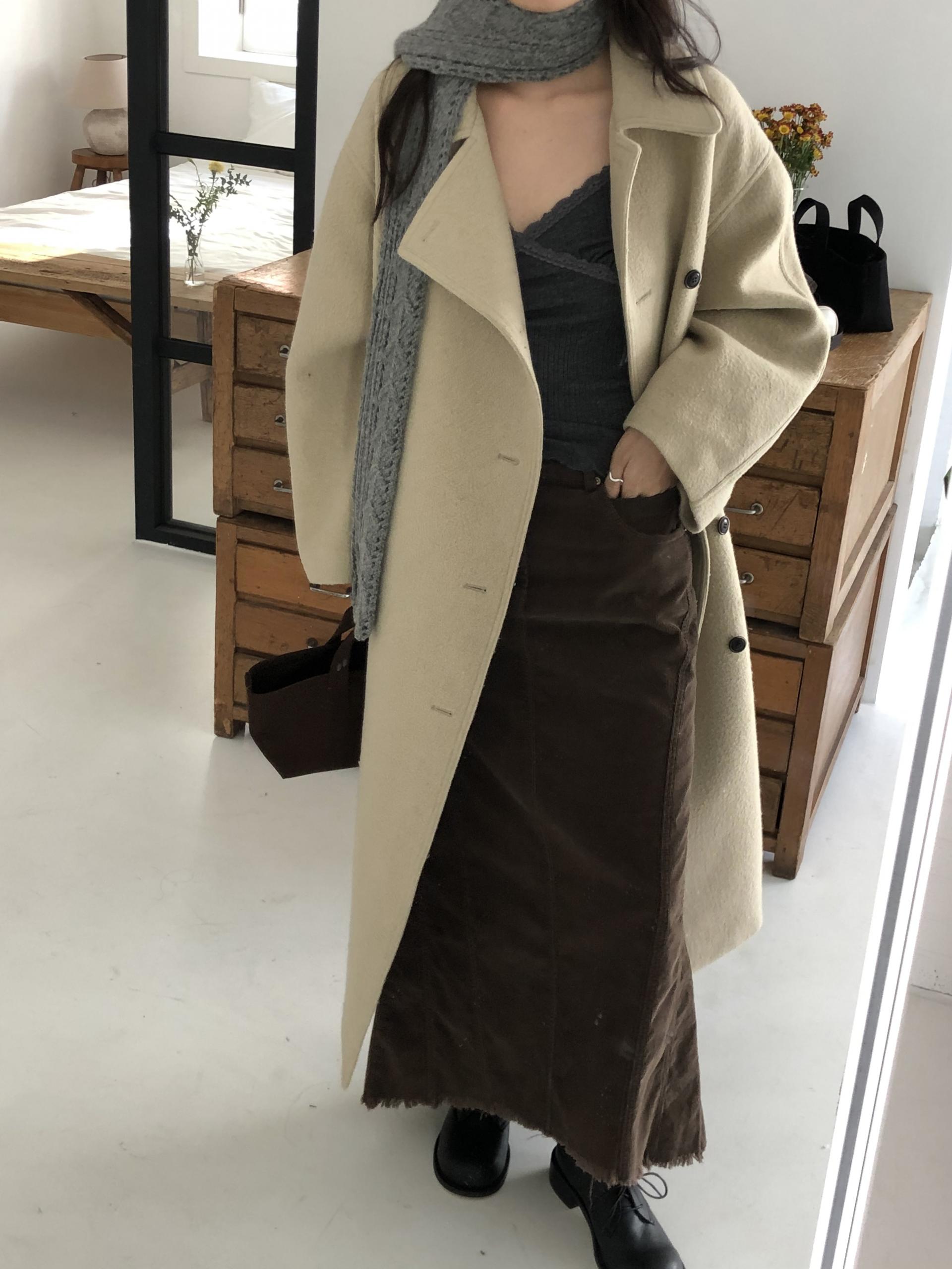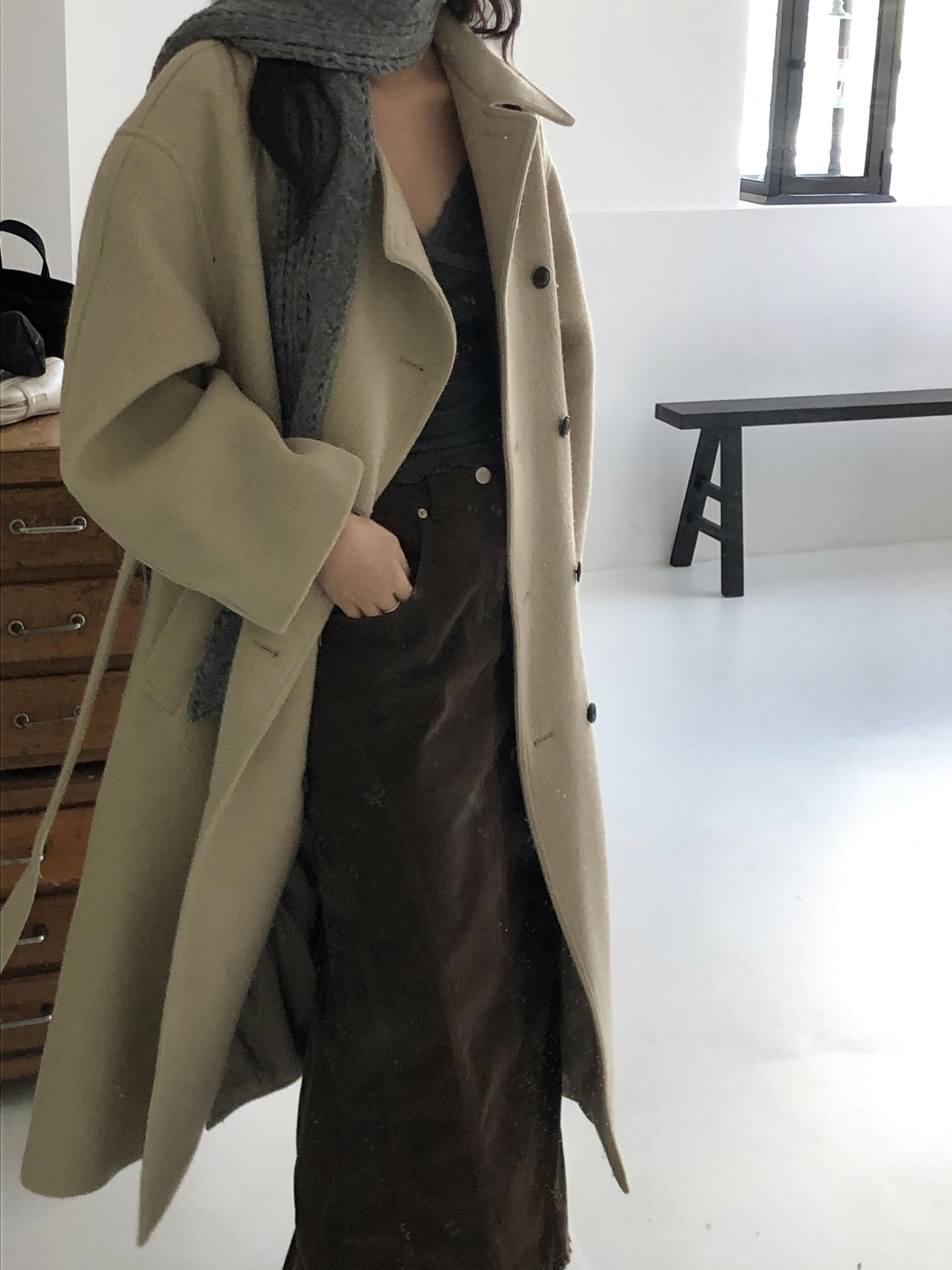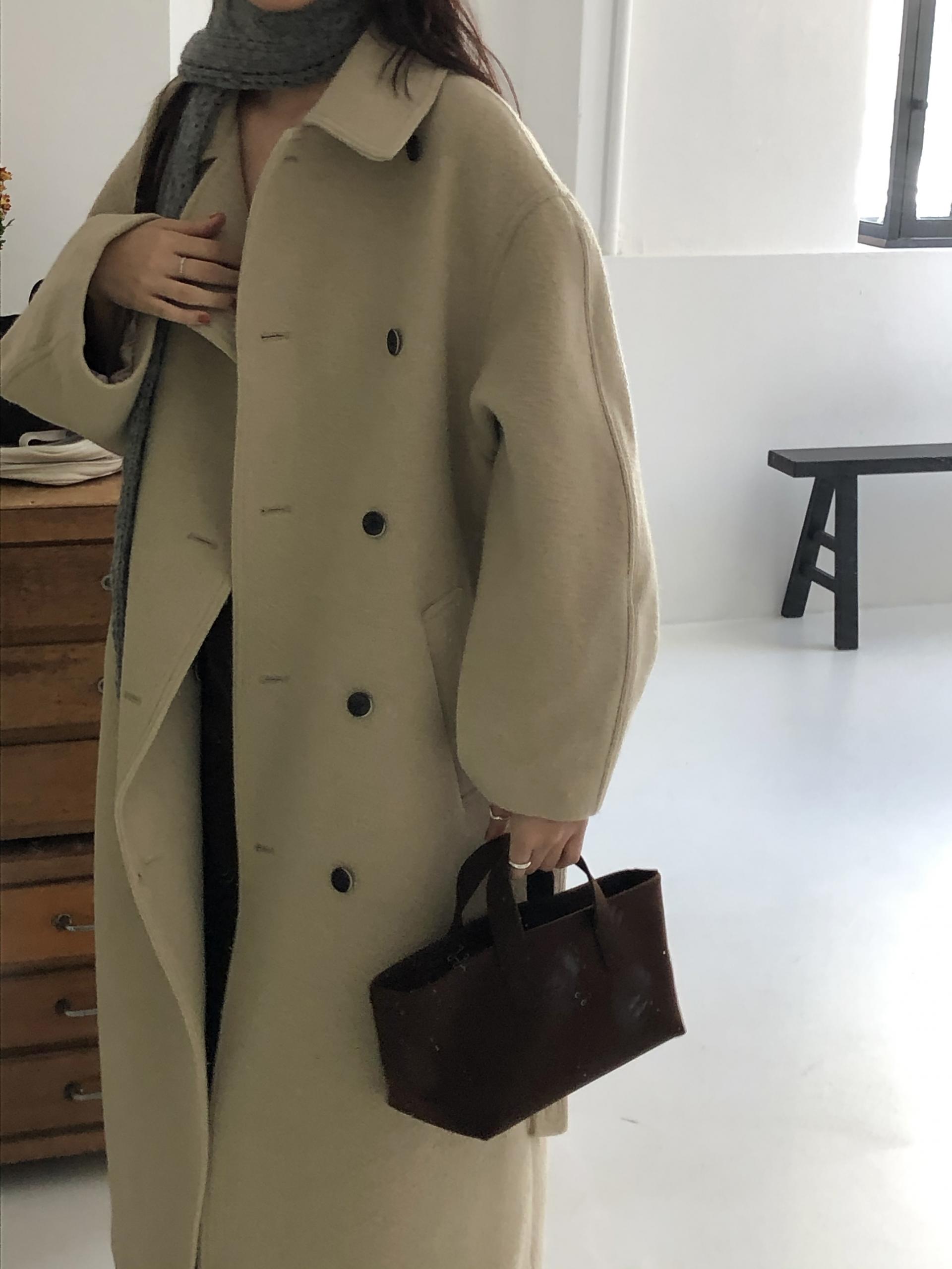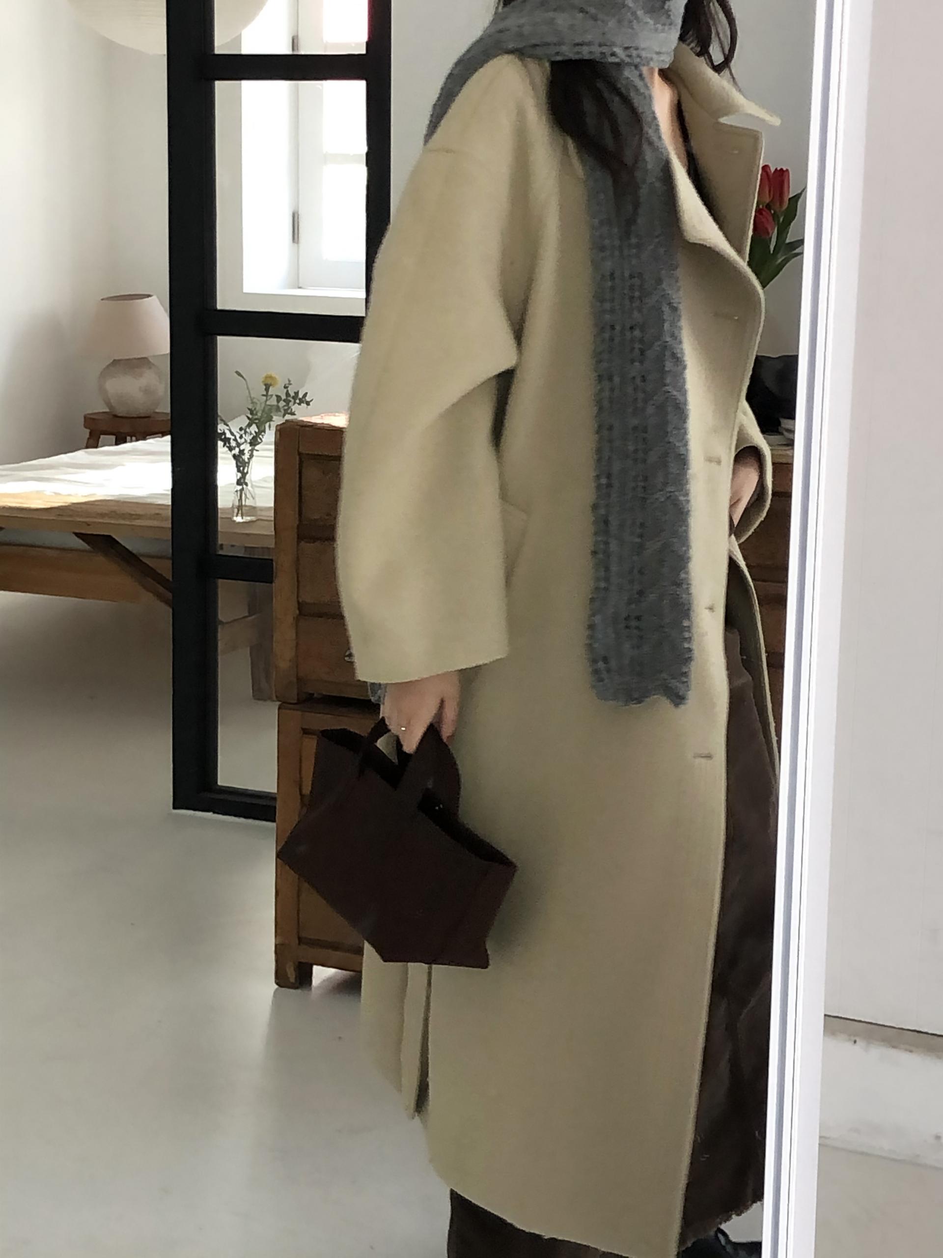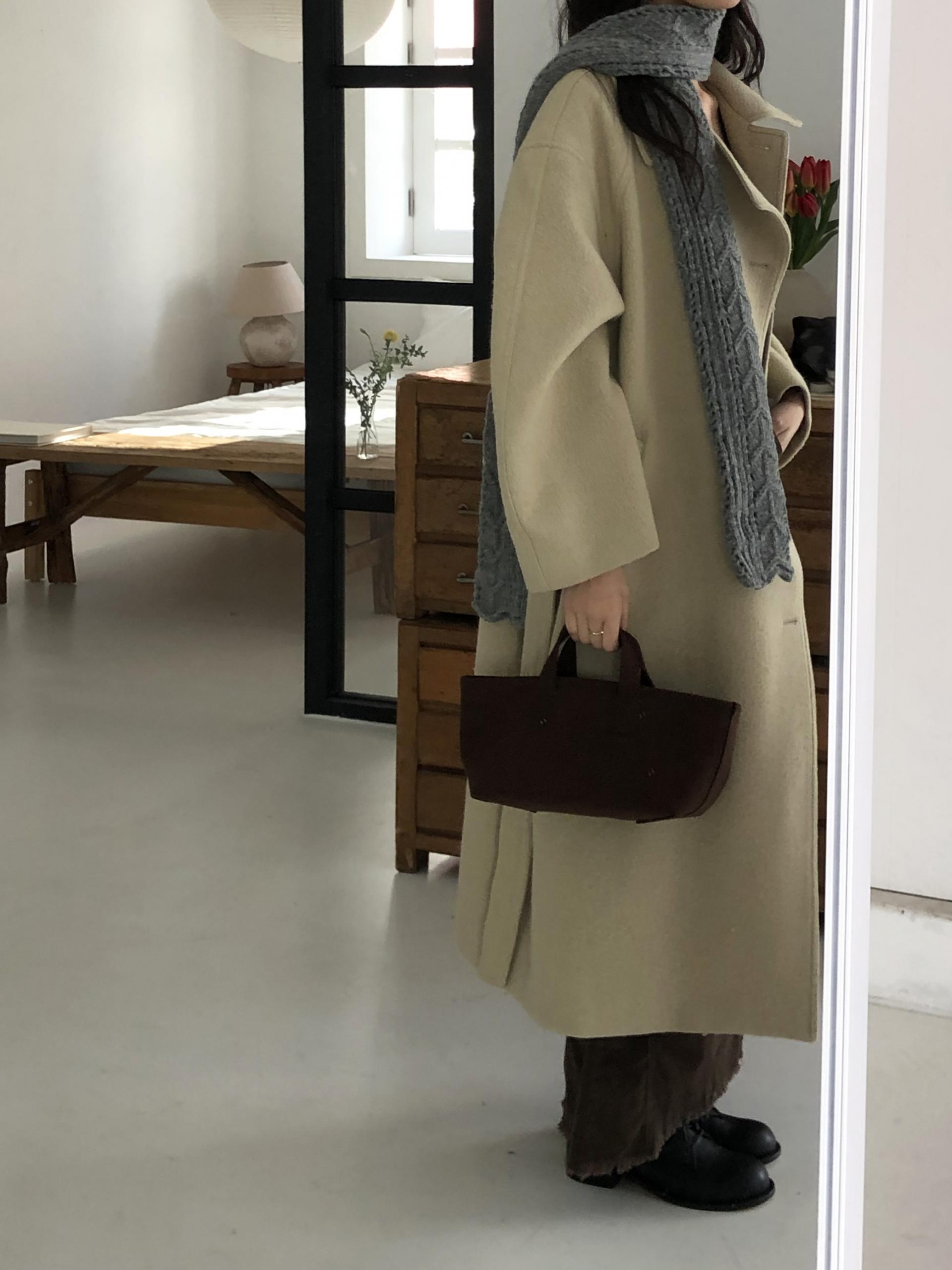 잔잔한 부클이 돋보이는 울 혼방 원단으로 제작되어 고급스러우면서도 부드러운 질감을 느낄 수 있어요.