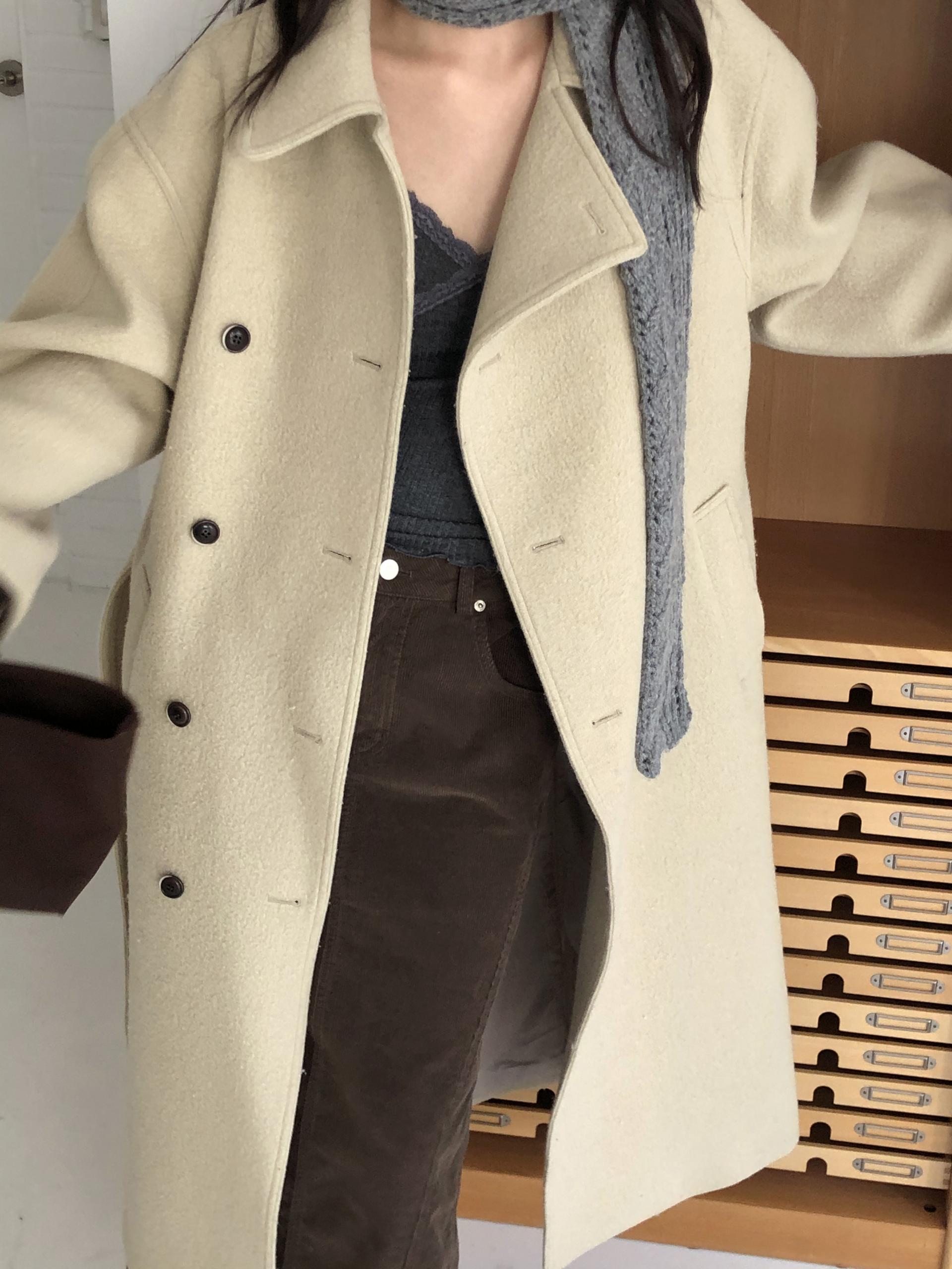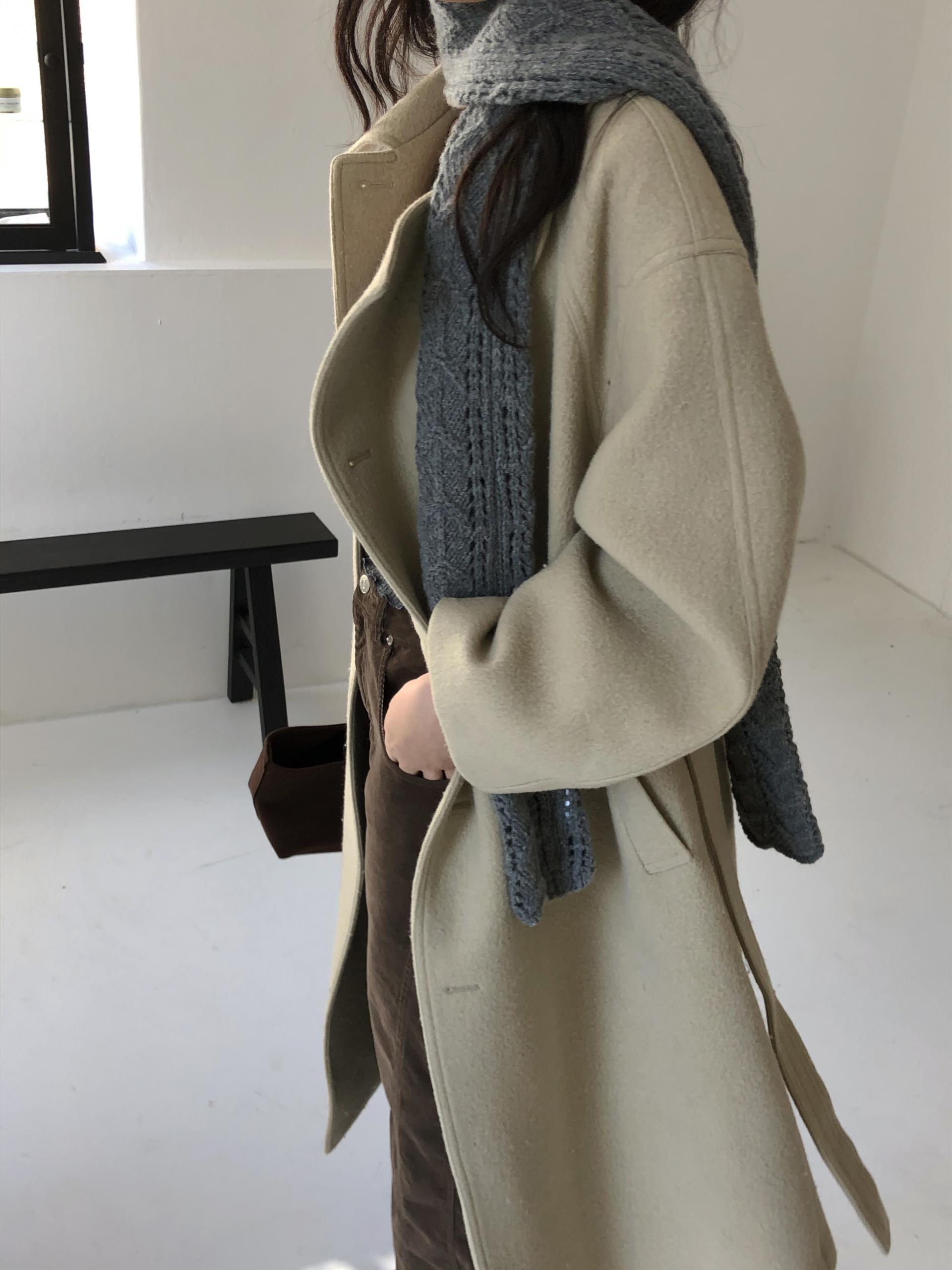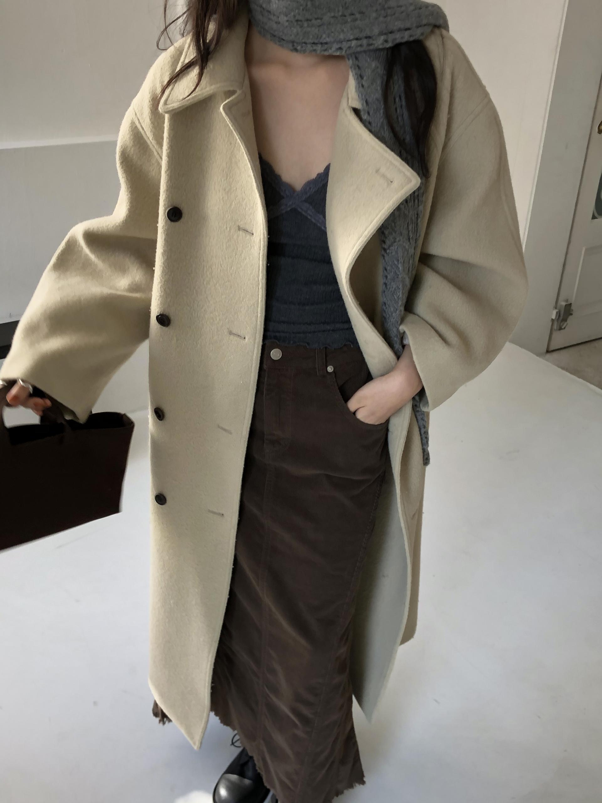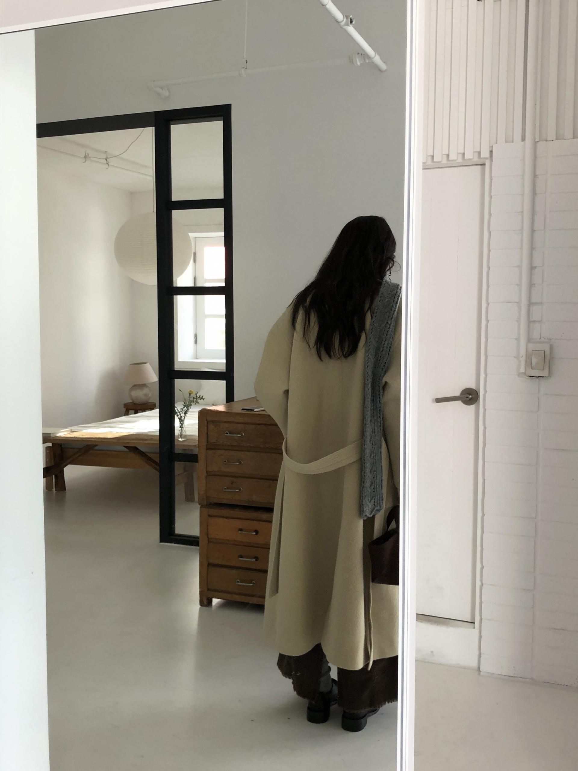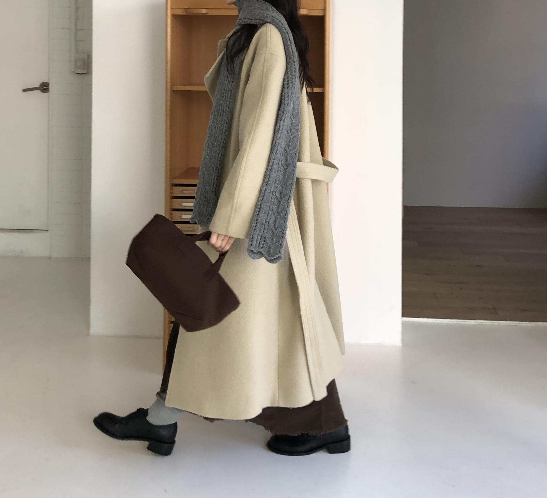 잔잔한 부클이 돋보이는 울 혼방 원단으로 제작되어 고급스러우면서도 부드러운 질감을 느낄 수 있어요.