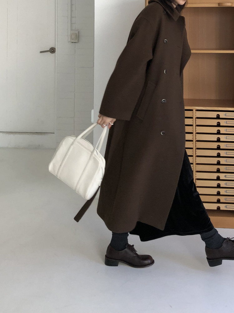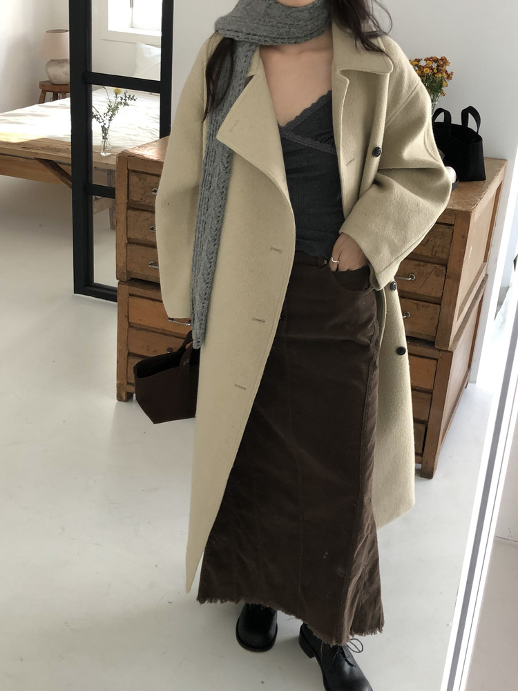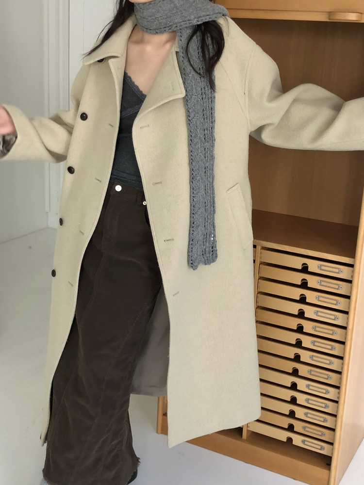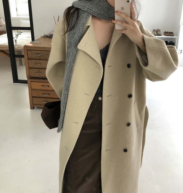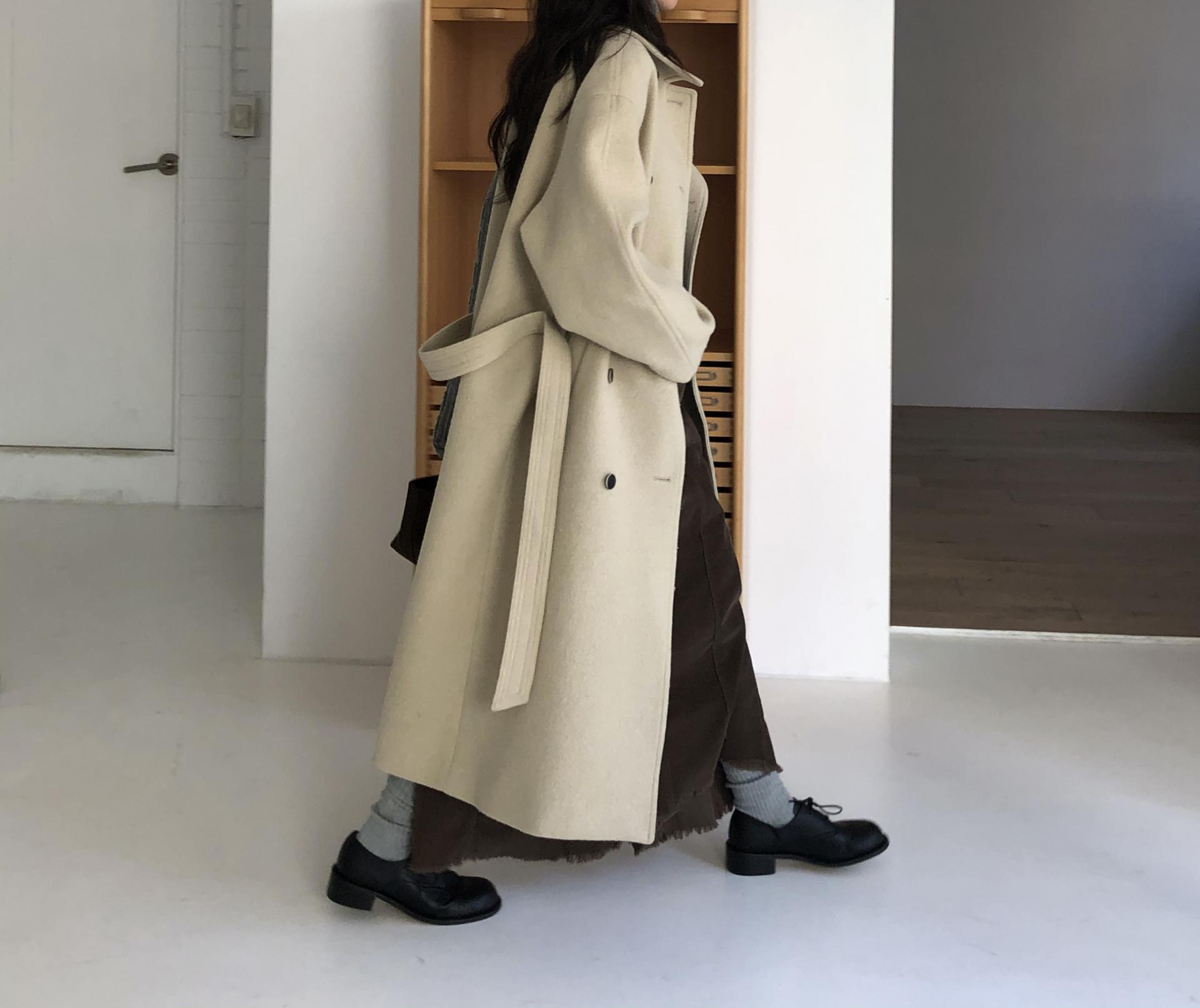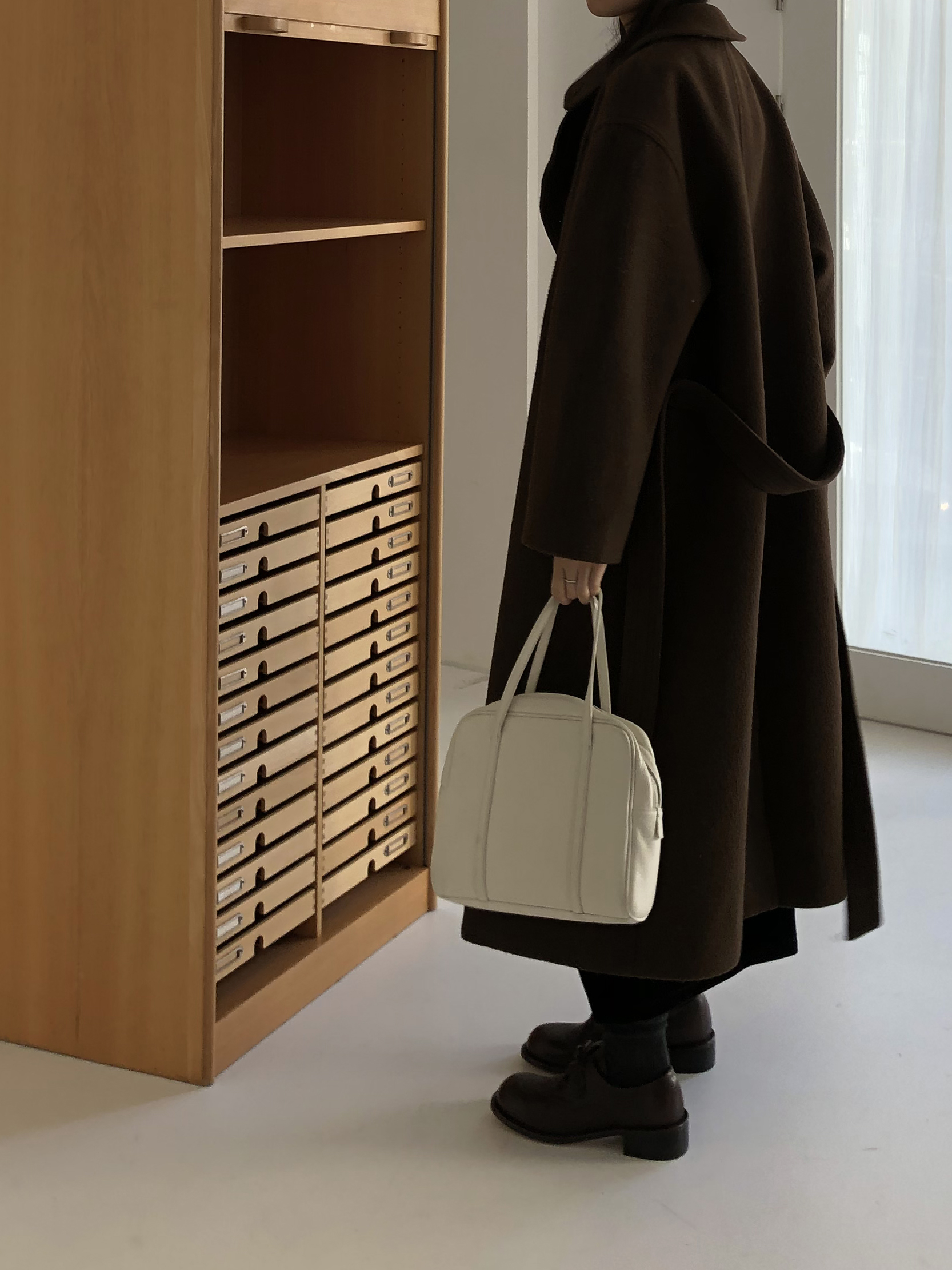 잔잔한 부클이 돋보이는 울 혼방 원단으로 제작되어 고급스러우면서도 부드러운 질감을 느낄 수 있어요.