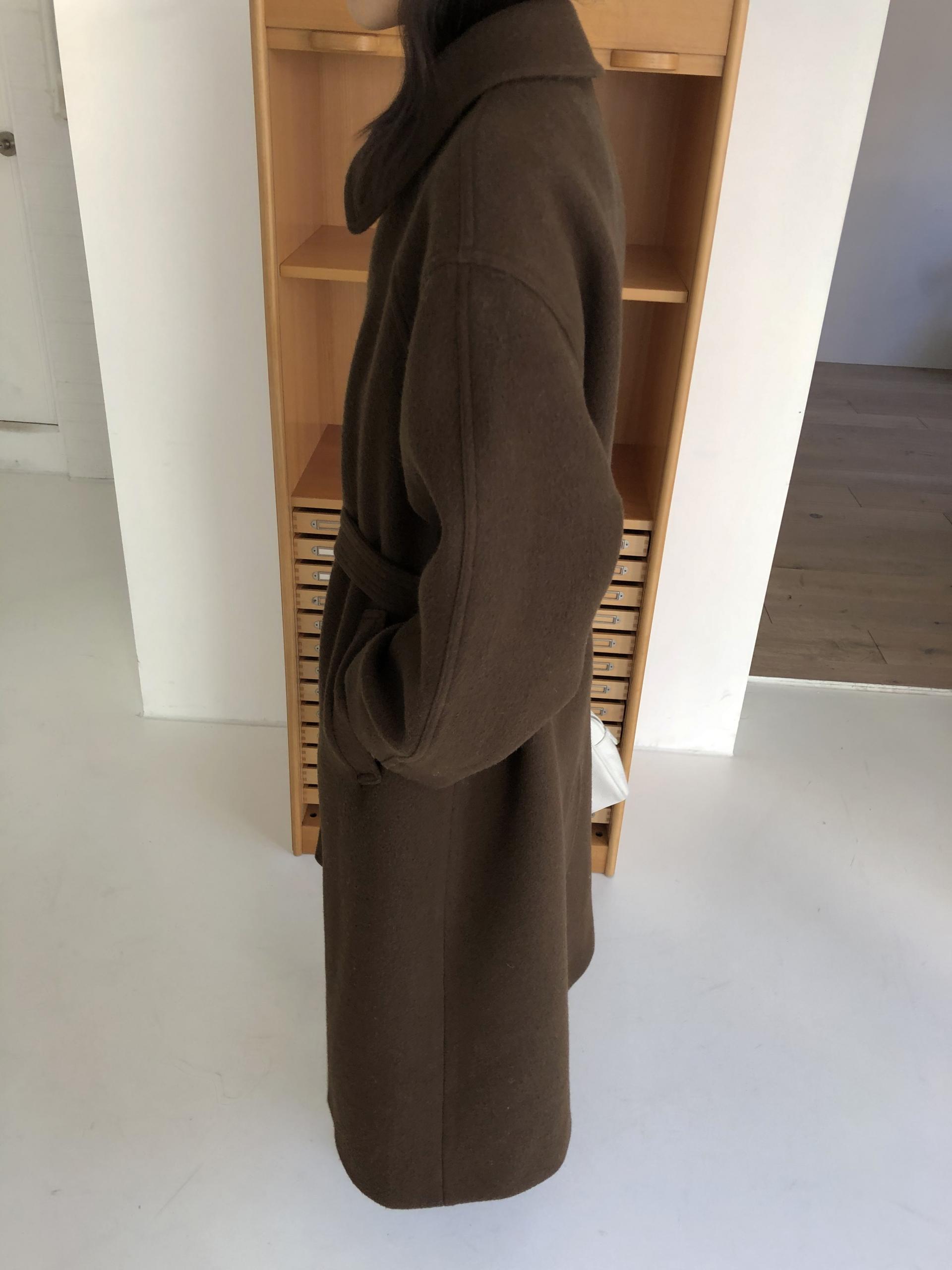 어깨 54 가슴 59 암홀 34 소매기장 53.8 소매단면 19 밑단 74 총장(카라 제외) 119 벨트 폭 5 벨트 길이 185