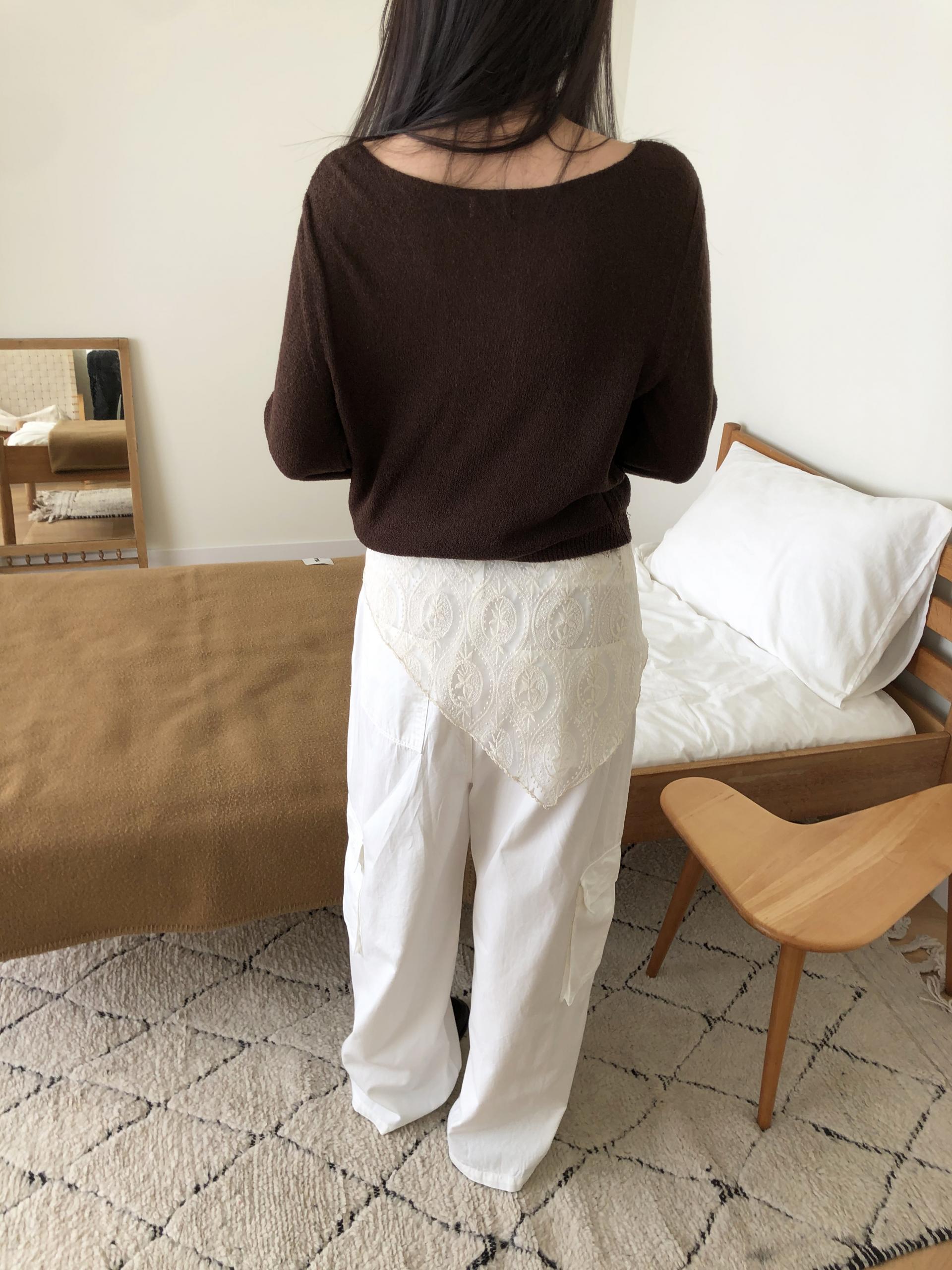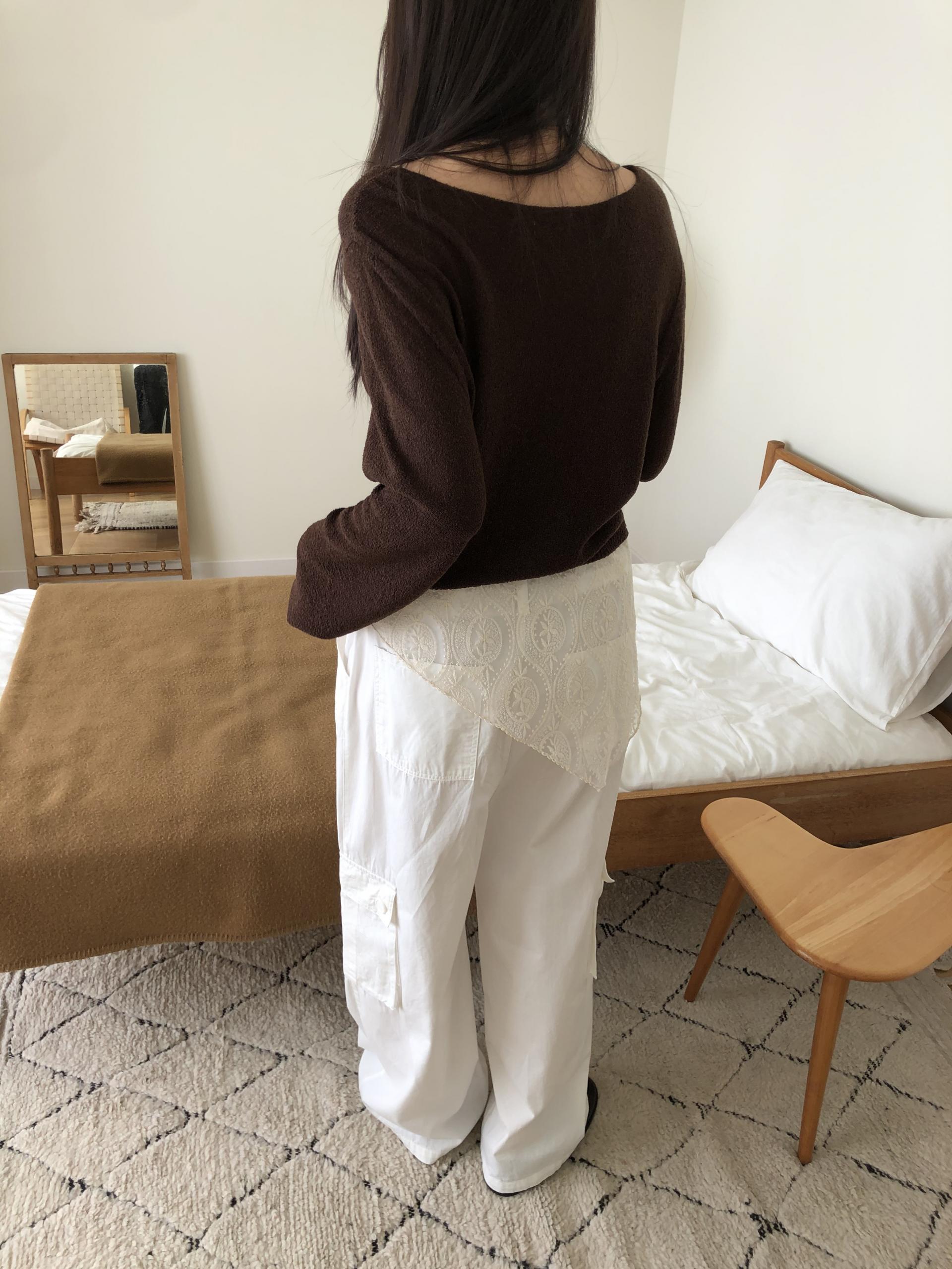 - 레깅스, 니트, 얇은 원단의 티 등 한번의 착용으로도 늘어남이 생기는 의류는 교환 및 반품이 불가합니다.