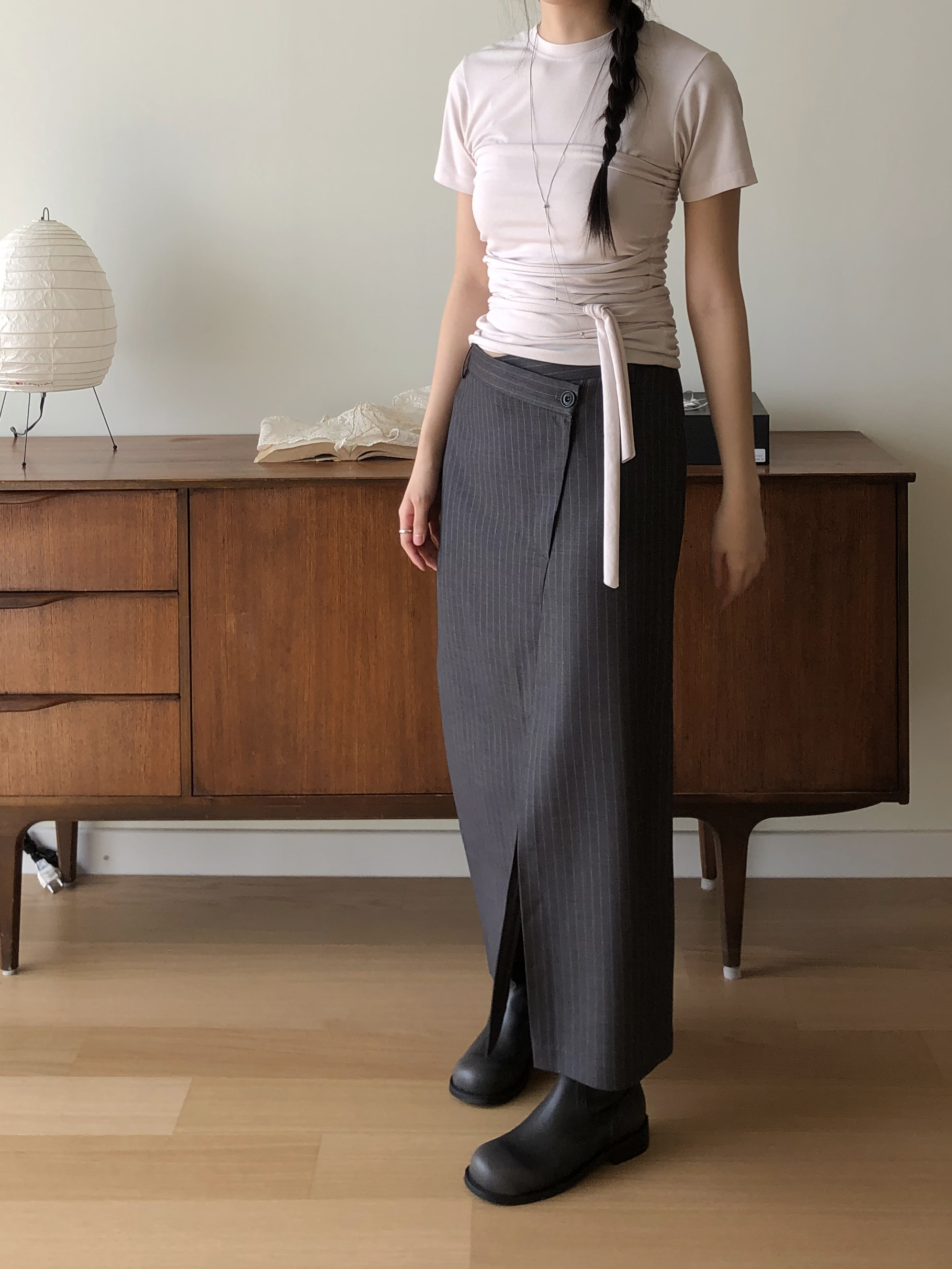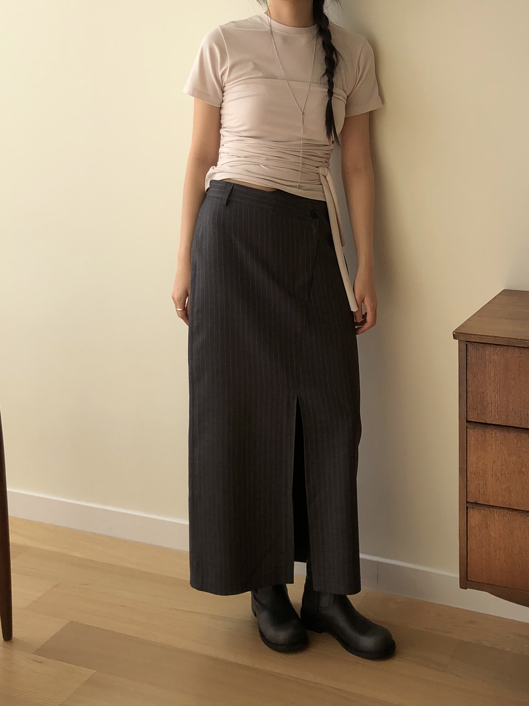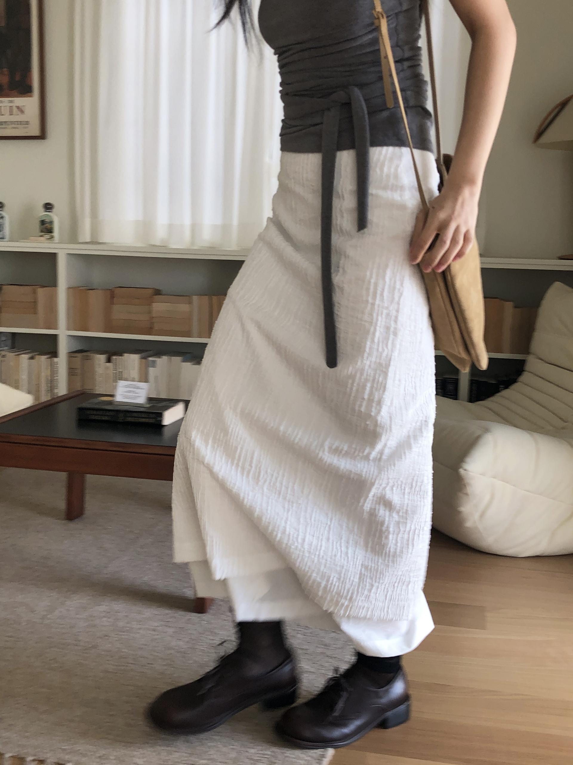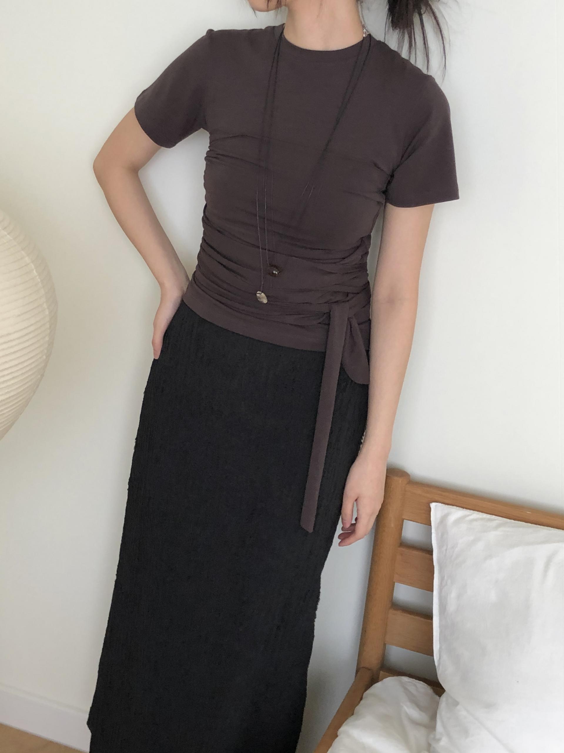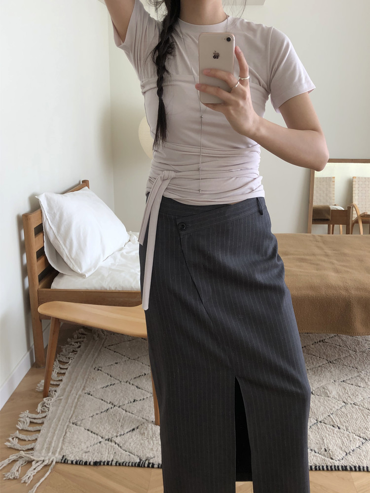 전체적으로 슬림한 핏이지만 신축이 좋아 체형에 크게 구애없이 착용 가능합니다. 튜브탑에 긴 스트랩이 달려있어 취향에 따라 다양하게 연출할 수 있어요. 스트랩을 길게 늘어뜨려 놓을수도 있고, 여러번 감아 짧게 매듭을 지을 수도 있습니다.