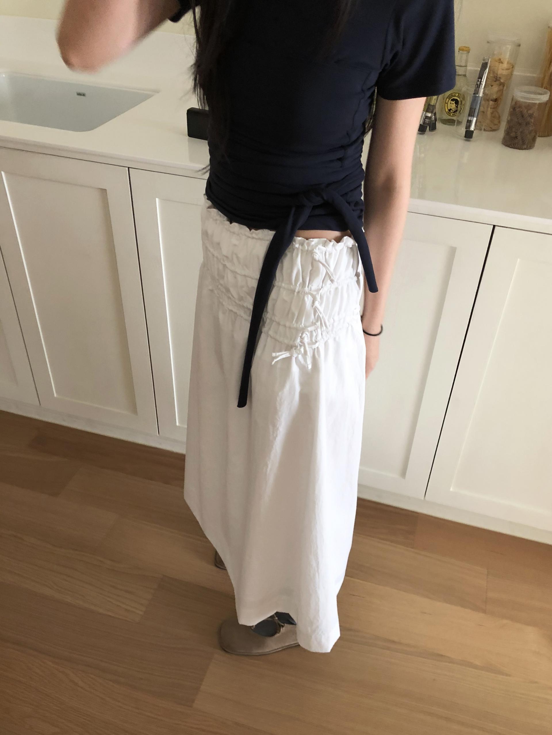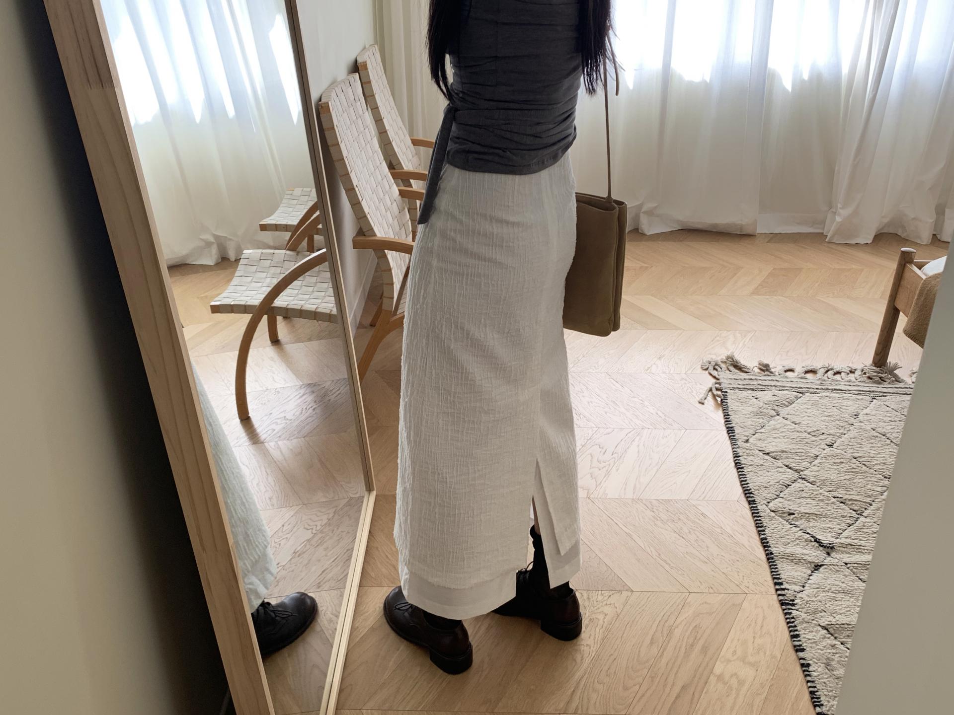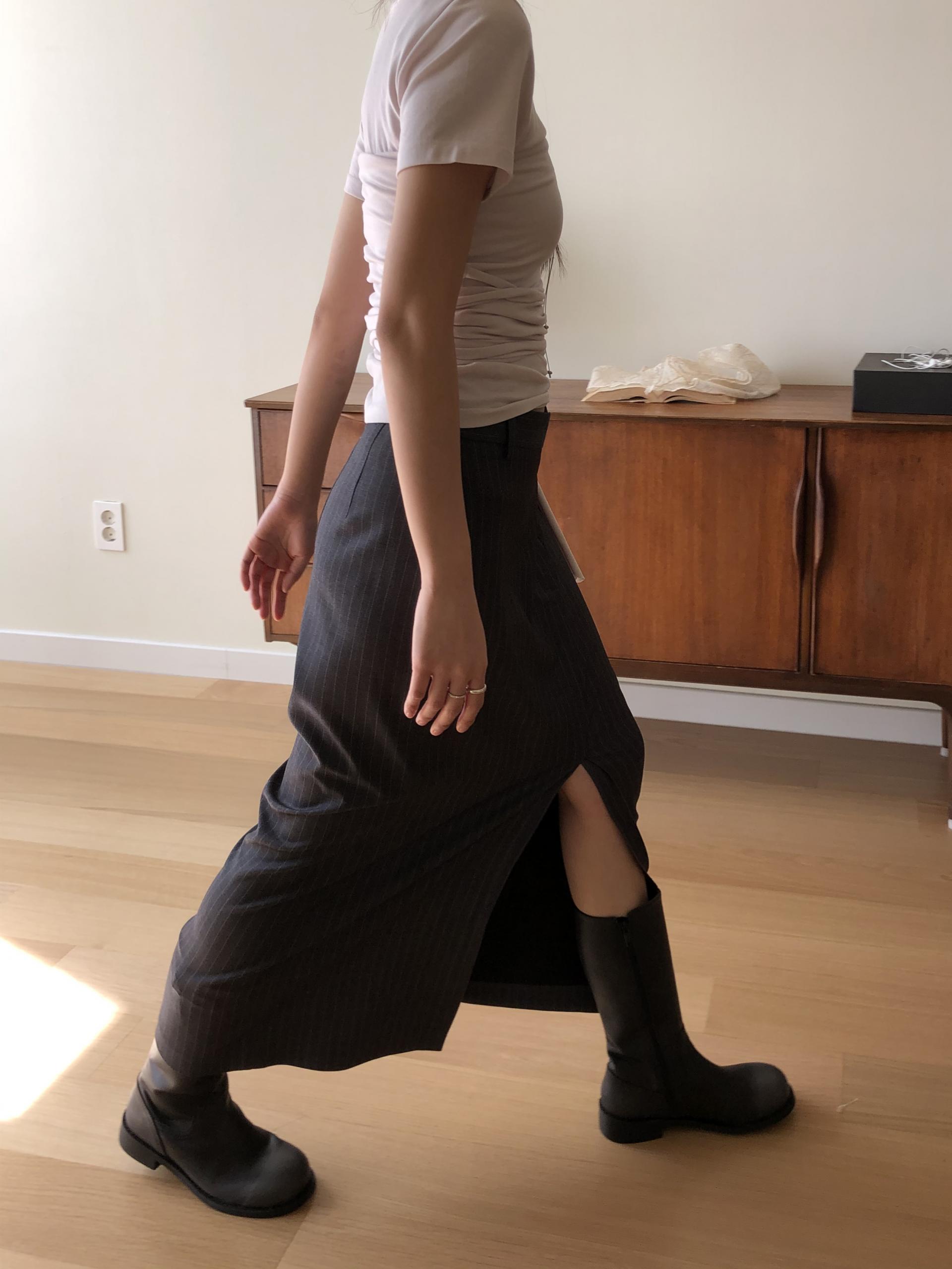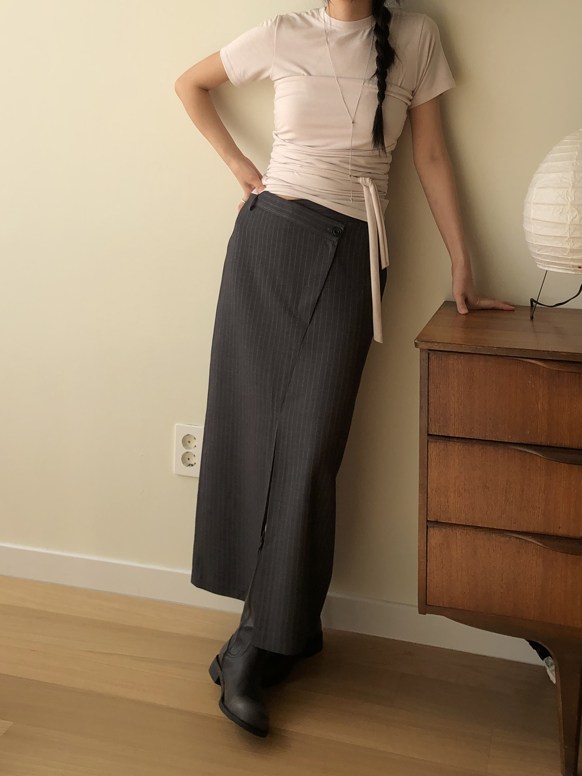 전체적으로 슬림한 핏이지만 신축이 좋아 체형에 크게 구애없이 착용 가능합니다. 튜브탑에 긴 스트랩이 달려있어 취향에 따라 다양하게 연출할 수 있어요. 스트랩을 길게 늘어뜨려 놓을수도 있고, 여러번 감아 짧게 매듭을 지을 수도 있습니다.