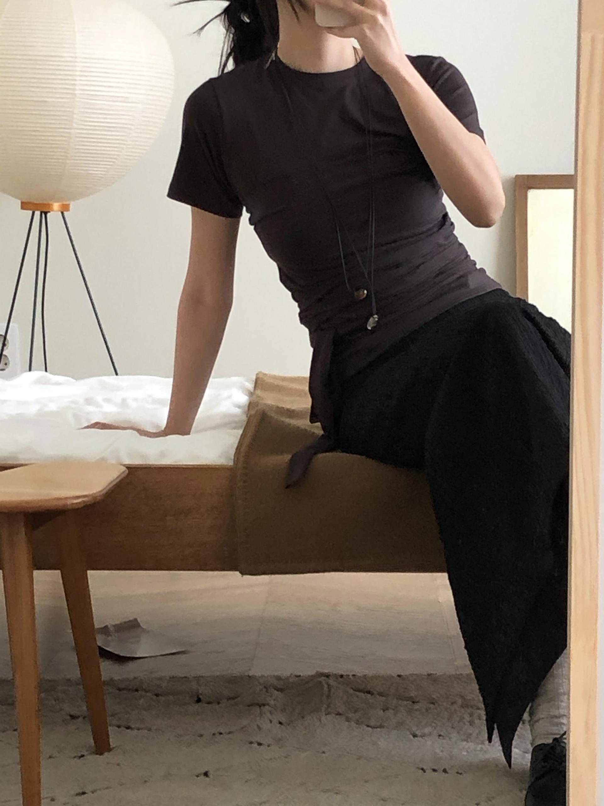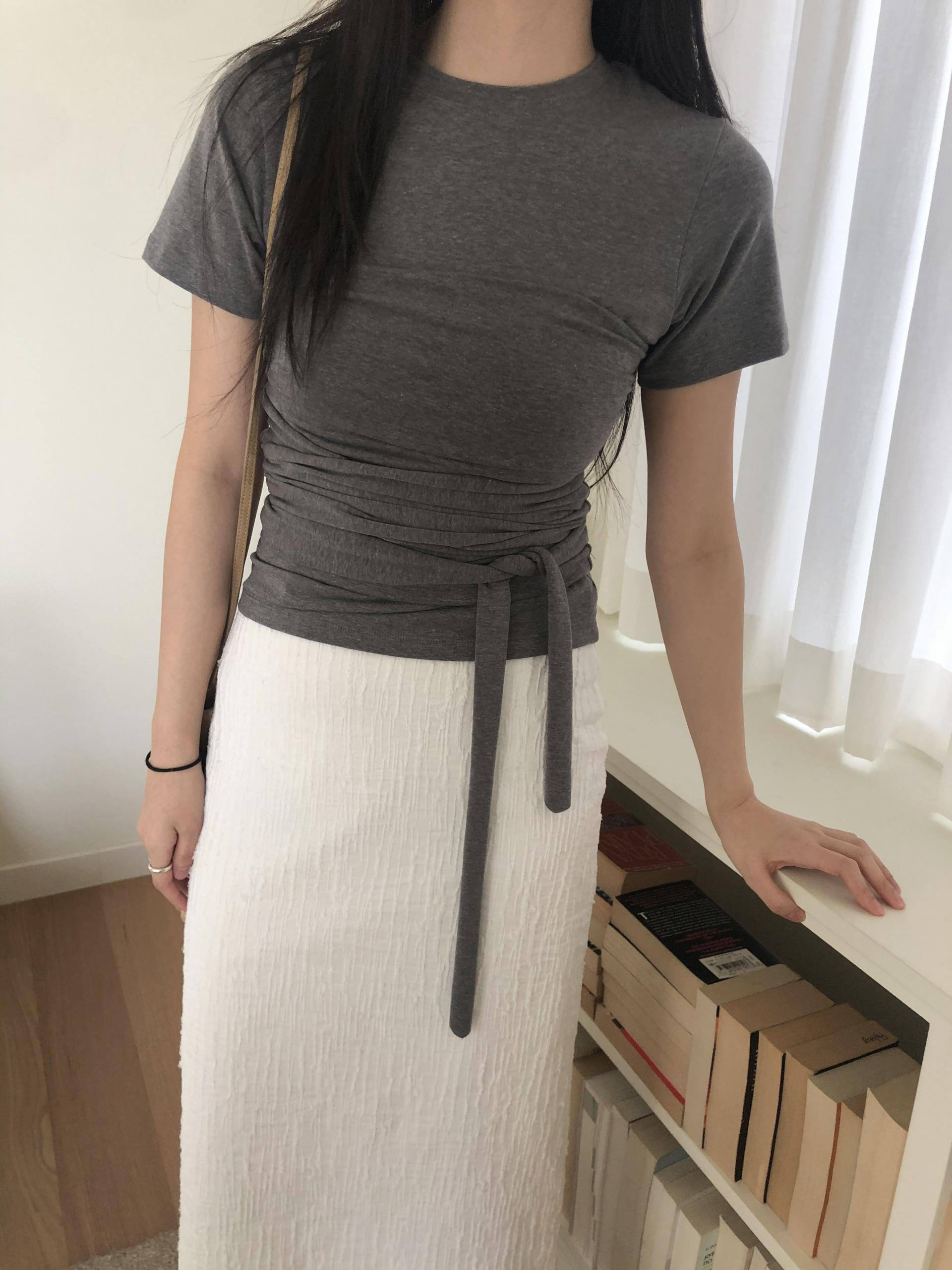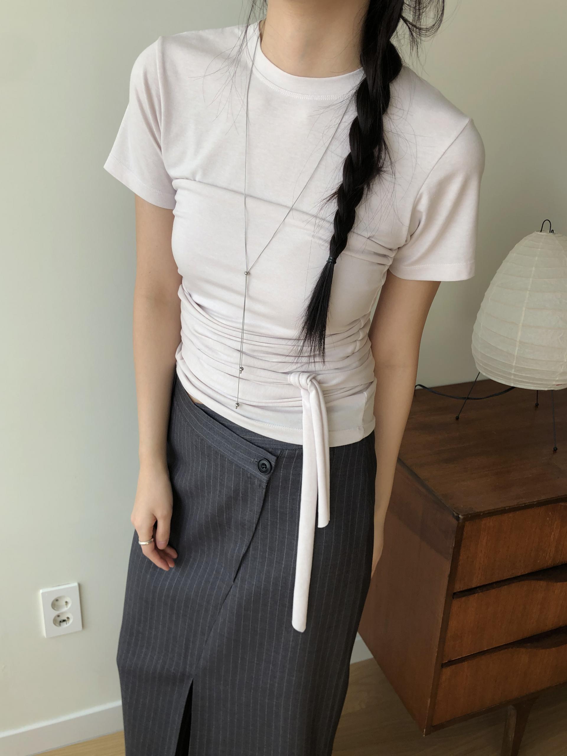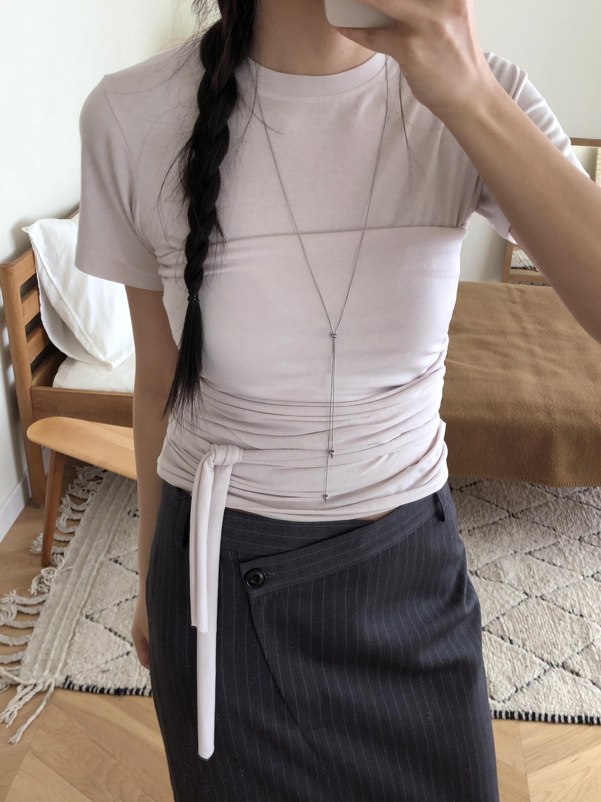 쫀쫀하고 부드러운 powder layered set. 이름처럼 보송보송, 파우더리하면서도 쫀쫀.탄탄한 소재로 제작되었어요. 신축성이 매우 좋은 코튼,폴리 혼방 소재로 만들어진 티셔츠&튜브탑 세트입니다.
