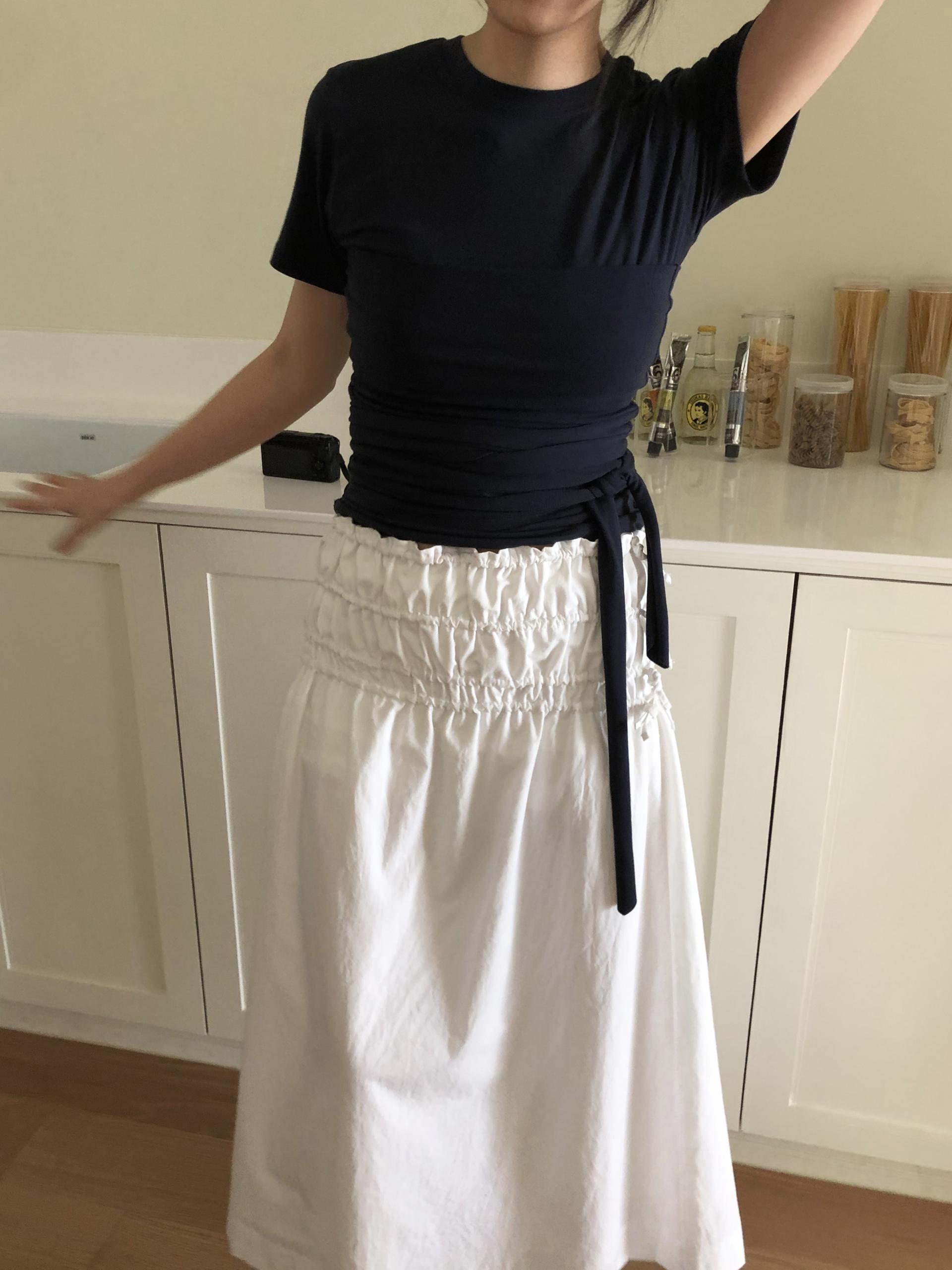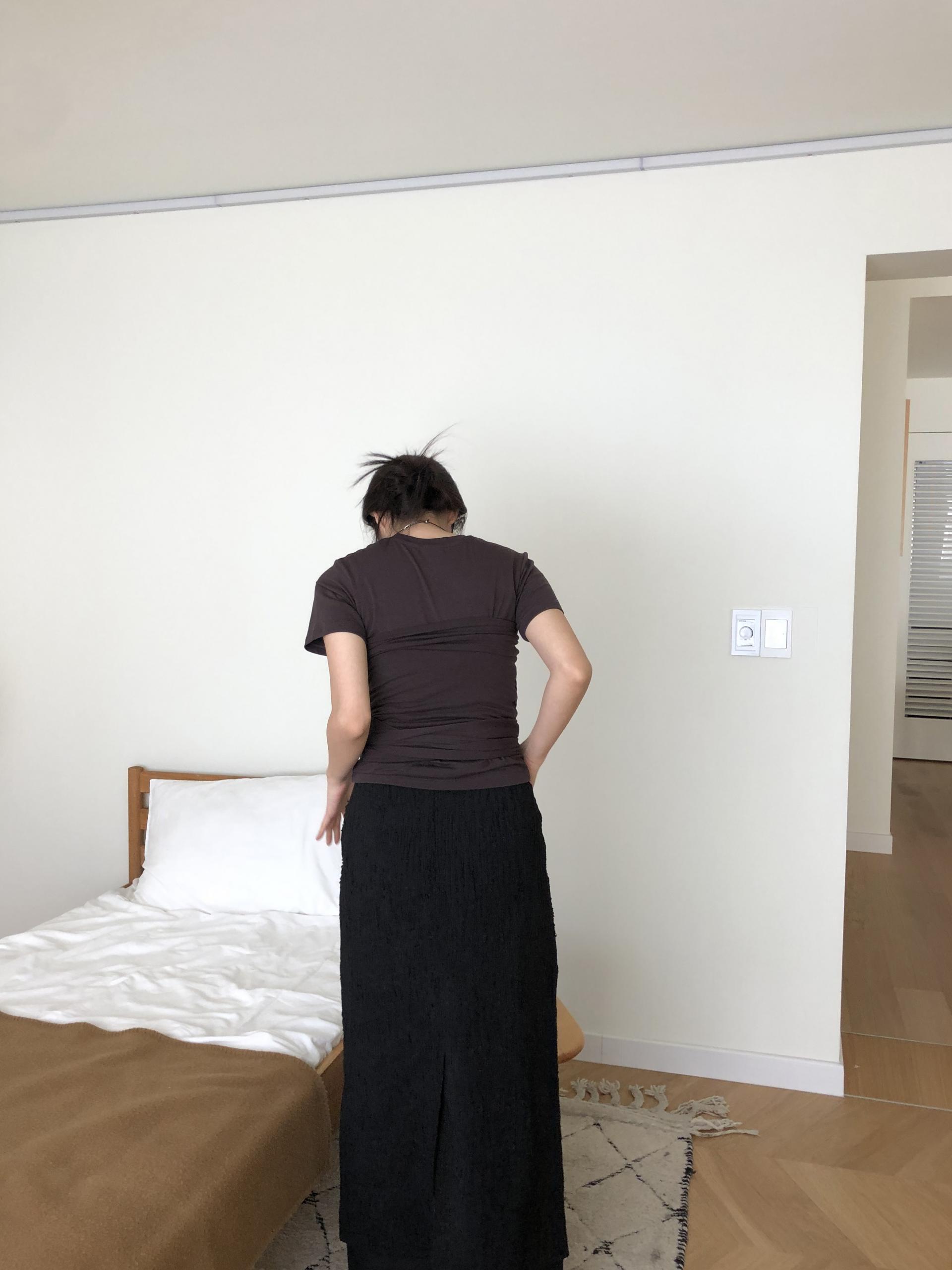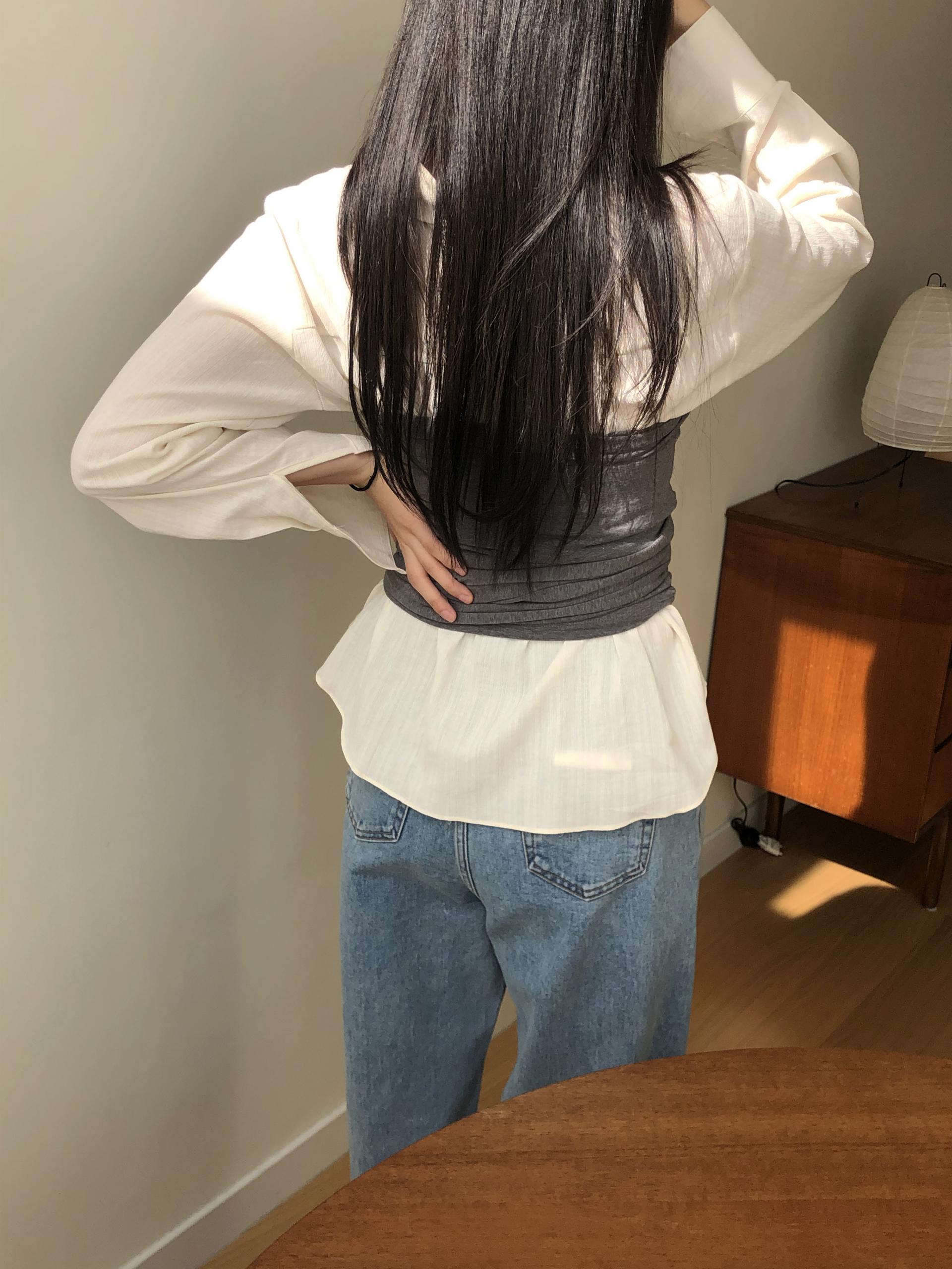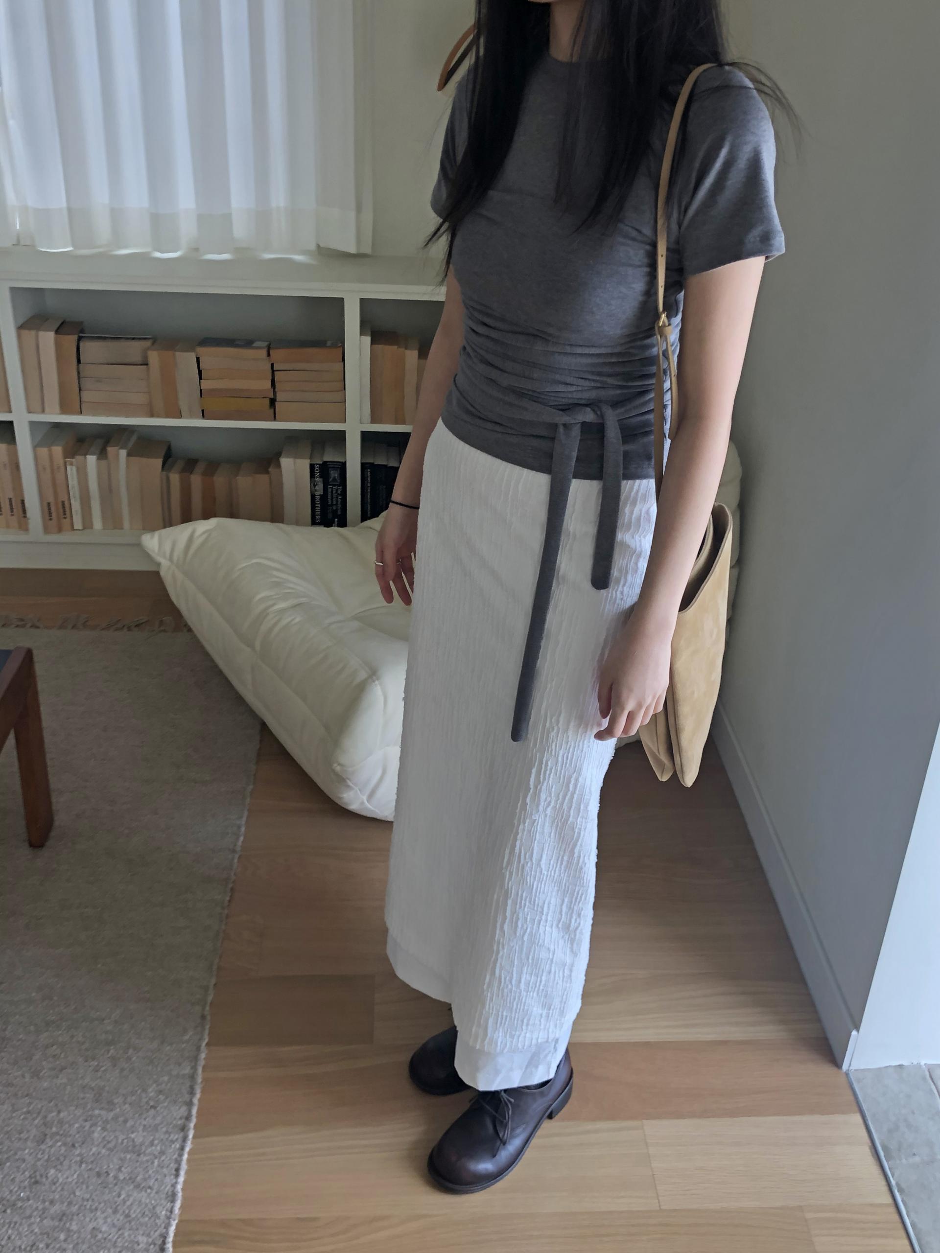 쫀쫀하고 부드러운 powder layered set. 이름처럼 보송보송, 파우더리하면서도 쫀쫀.탄탄한 소재로 제작되었어요. 신축성이 매우 좋은 코튼,폴리 혼방 소재로 만들어진 티셔츠&튜브탑 세트입니다.