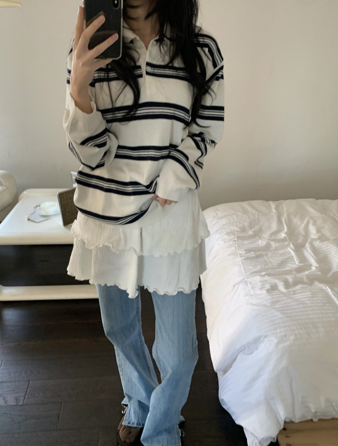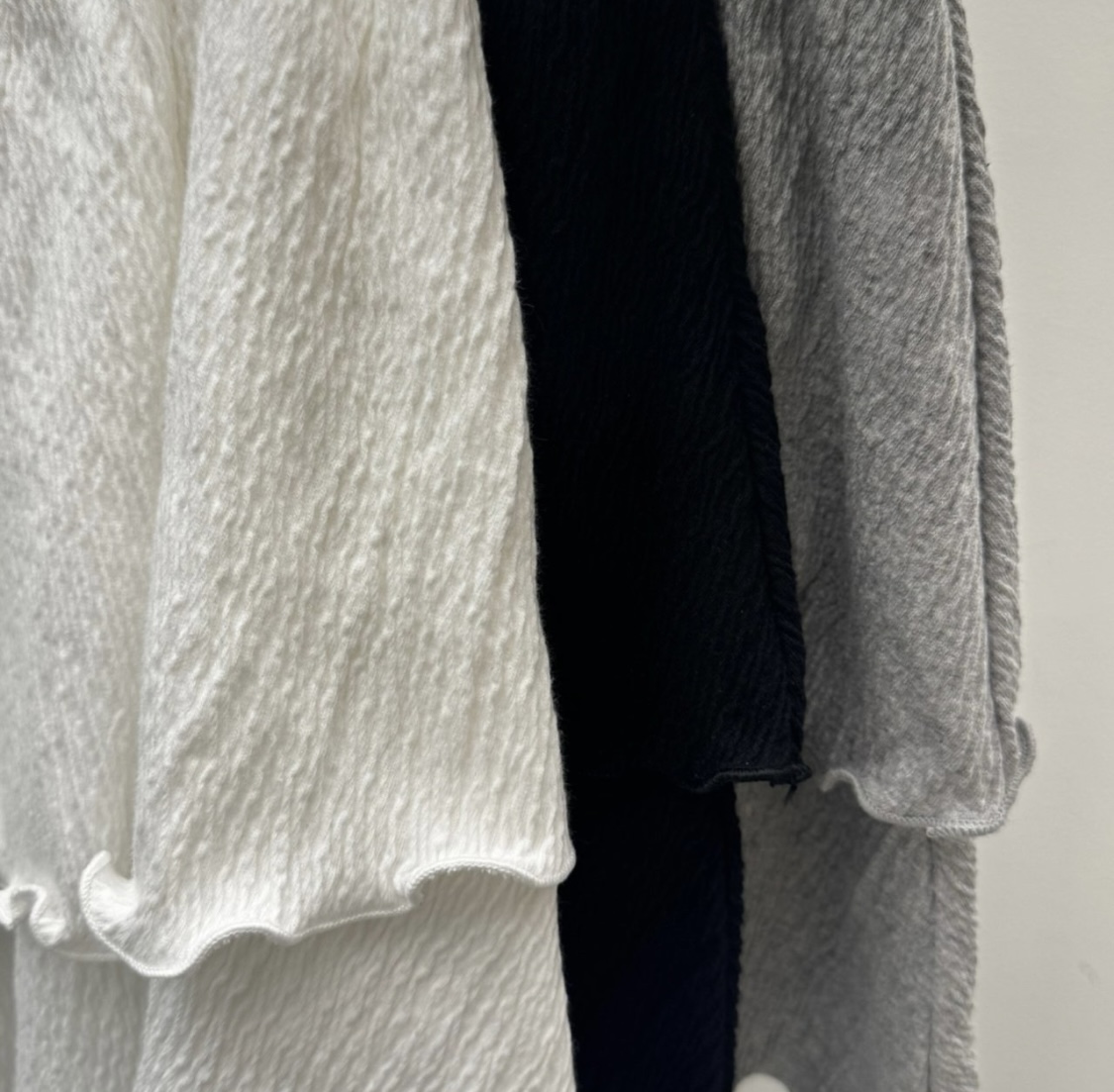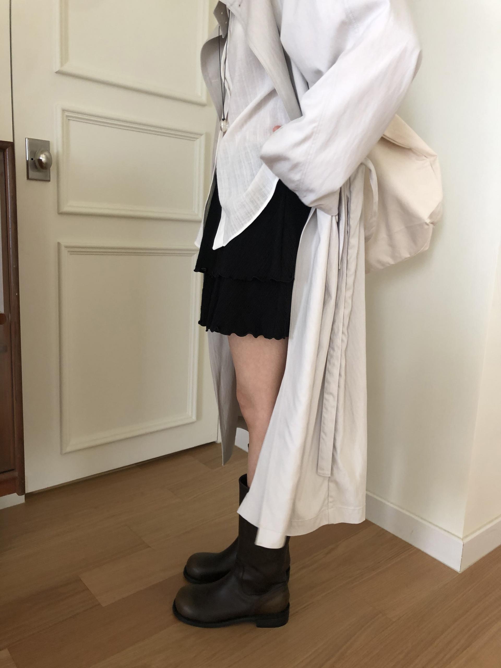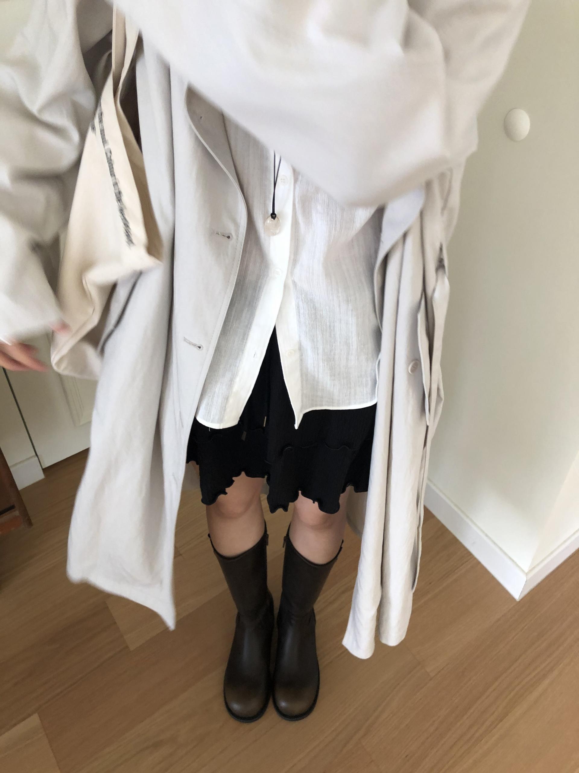 단독착용과 레이어링 모두 가능해 사계절 내내 활용하기 좋은 아이템입니다. 허리 전체 밴딩 디자인이라 바지 위에 레이어드 해도 불편하지 않고, 원단 자체가 텐셤감이 좋아 편하게 착용되었어요.