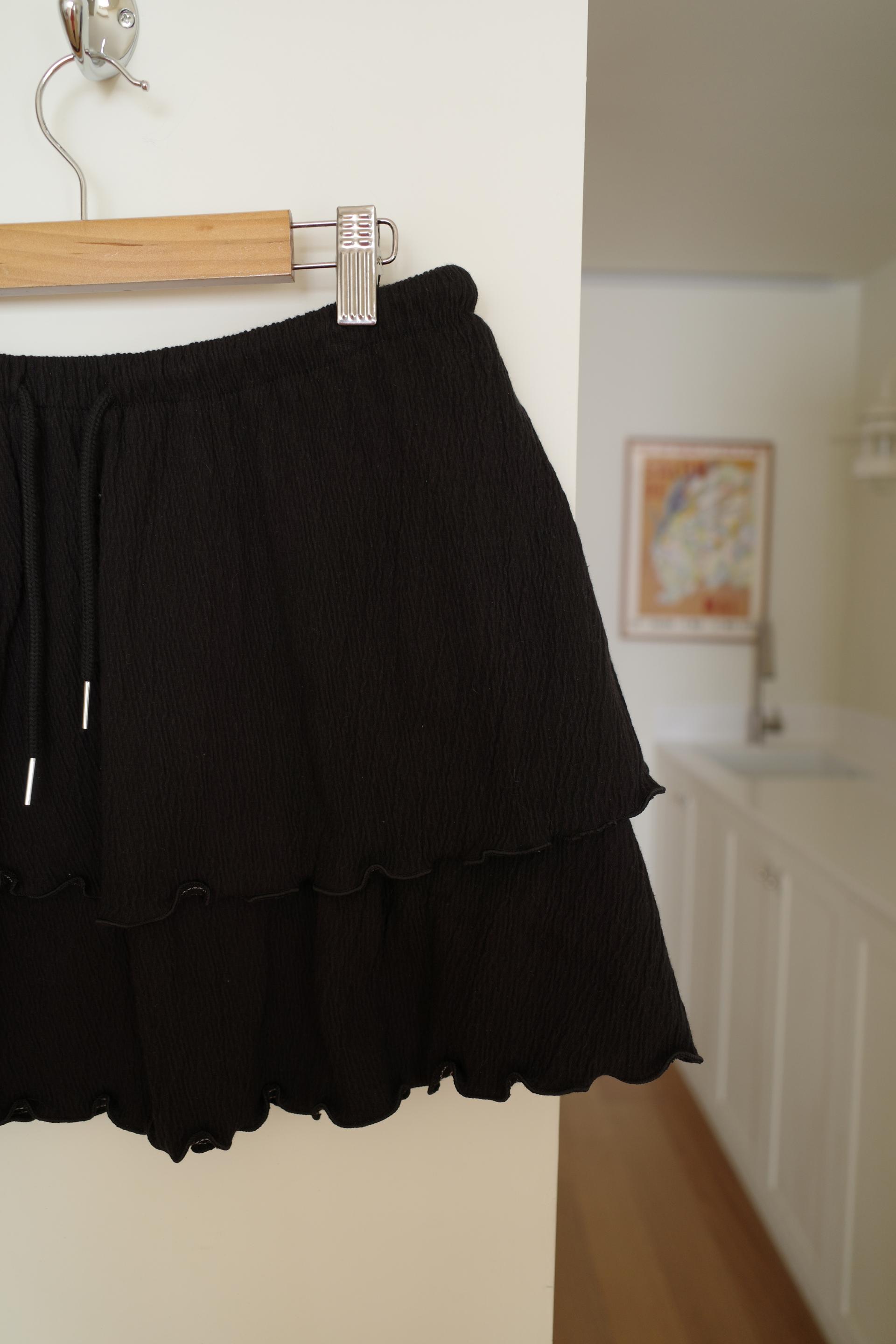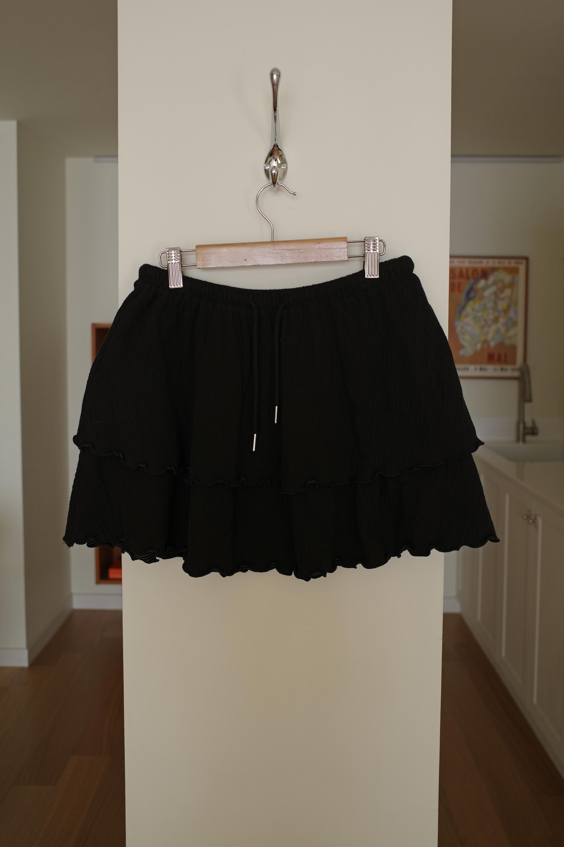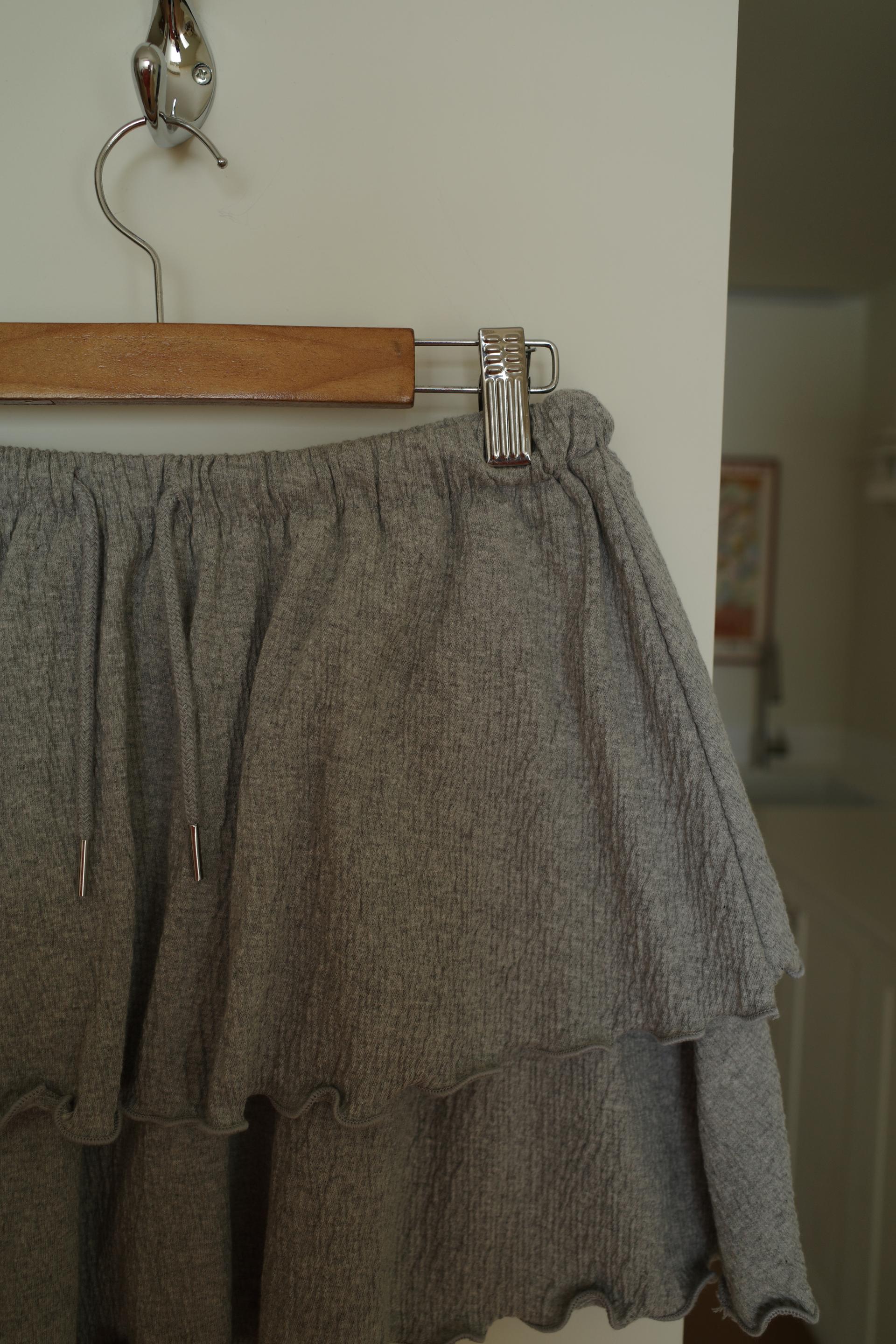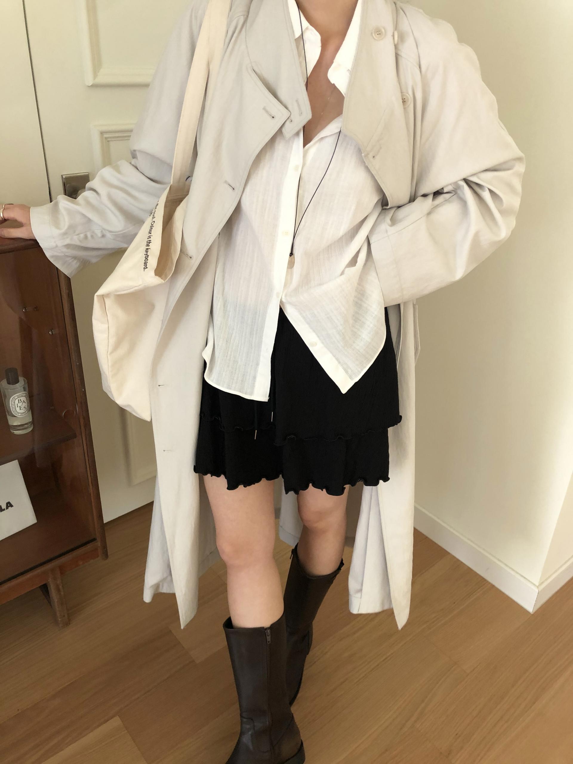 캉캉 디자인의 미니 기장 스커트로 발랄하고 경쾌한 분위기가 두드러집니다. 과하지 않은 2단의 물결 디자인이라 러블리한 무드나 스타일링이 어려운 분들께도 추천드리는 제품입니다.
