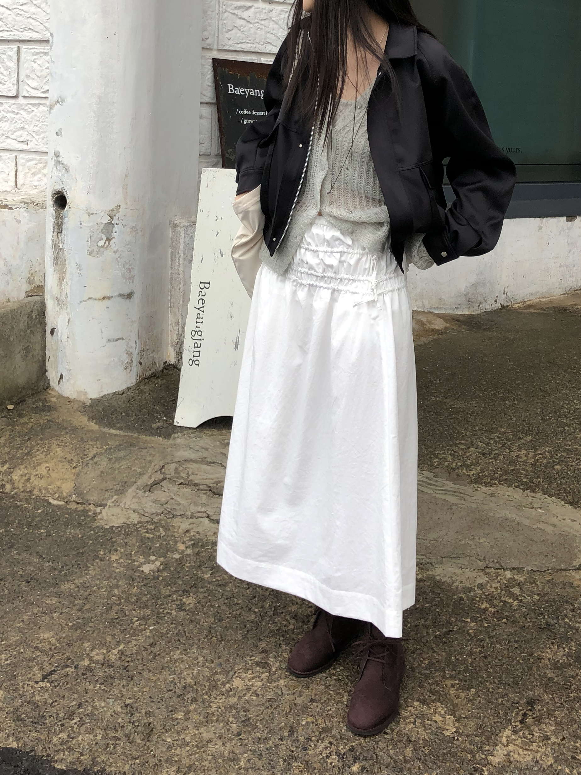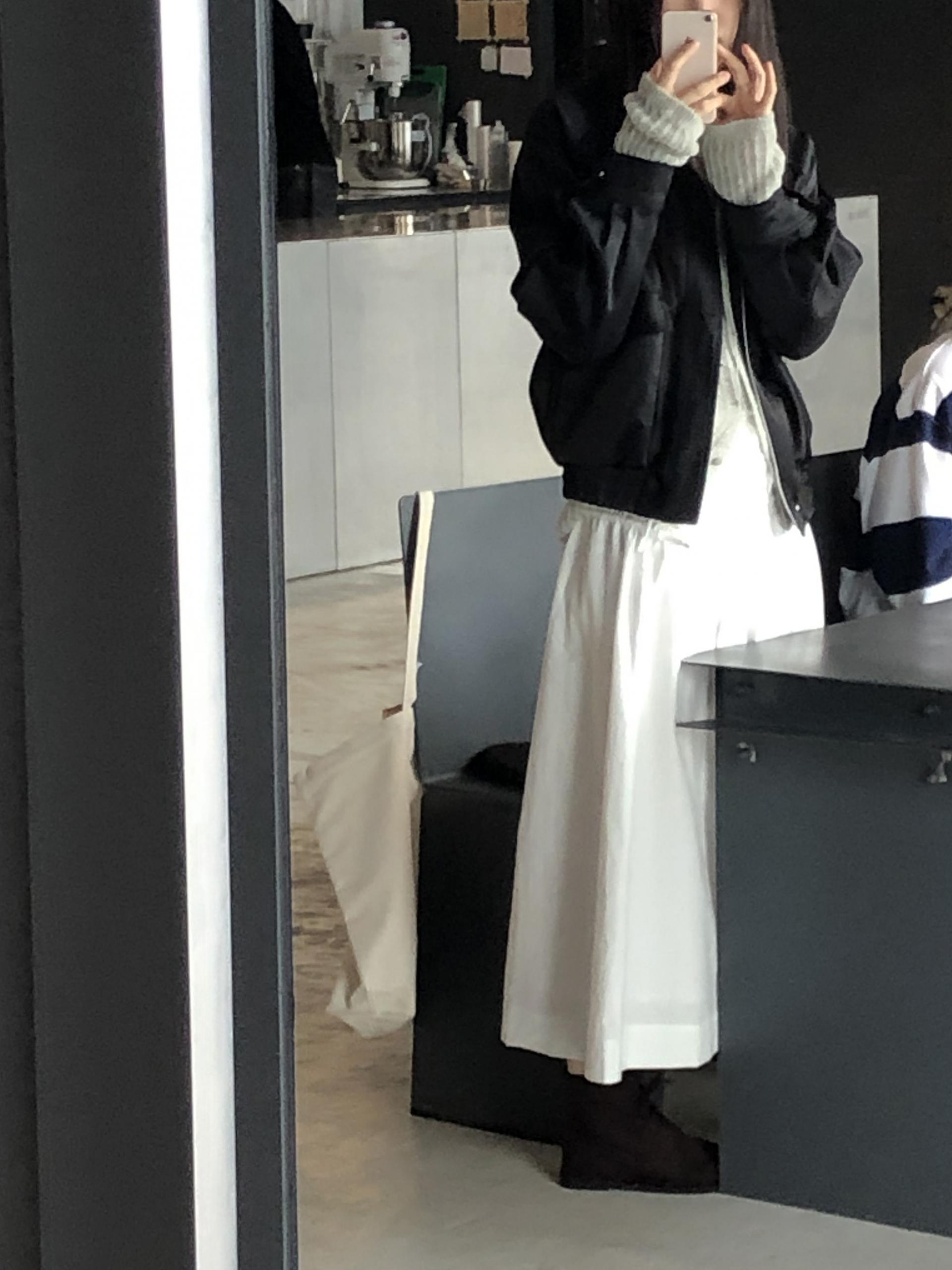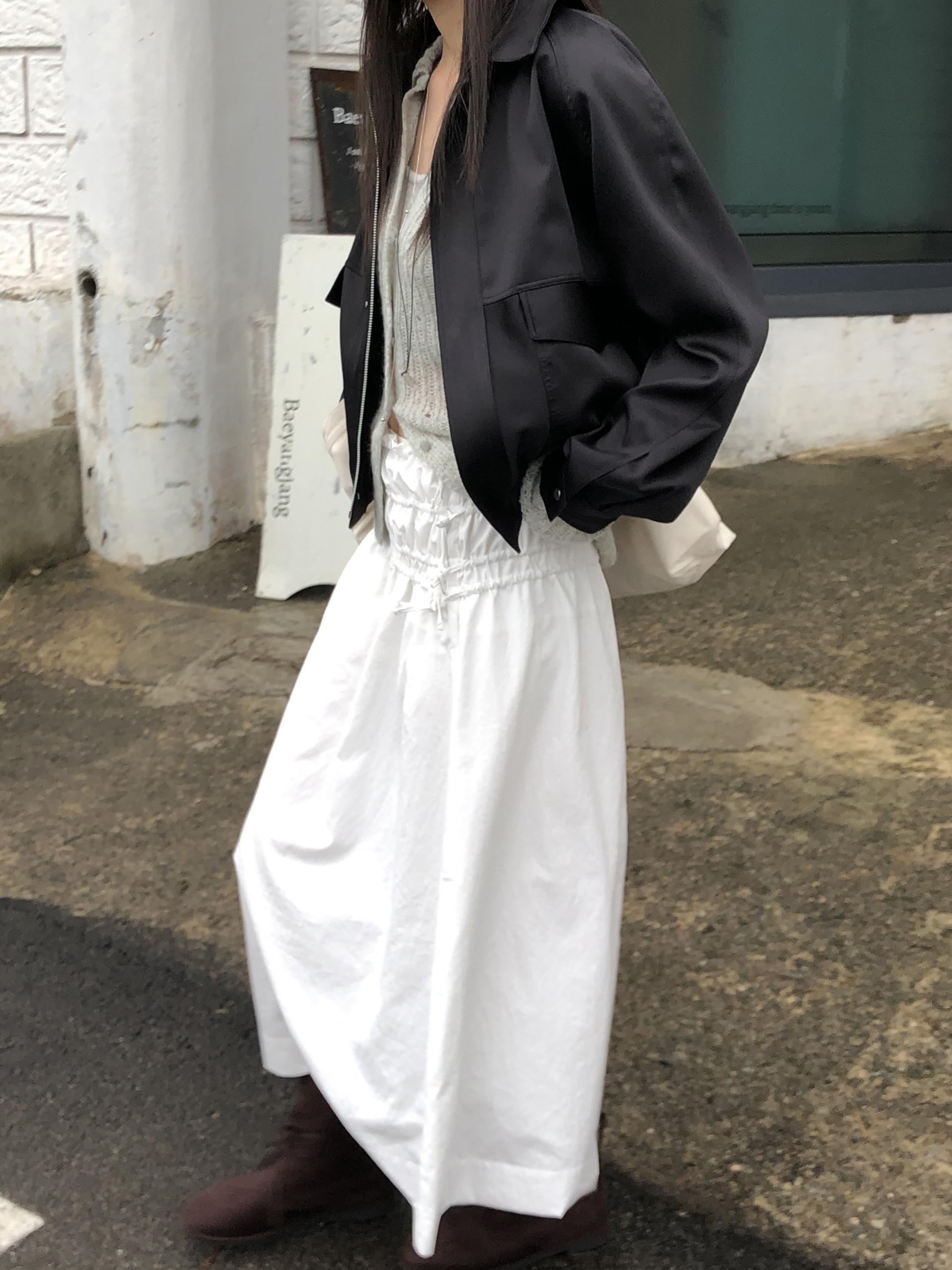 부드러운 분위기의 니트웨어나 스커트에도 가볍게 걸쳐주세요.